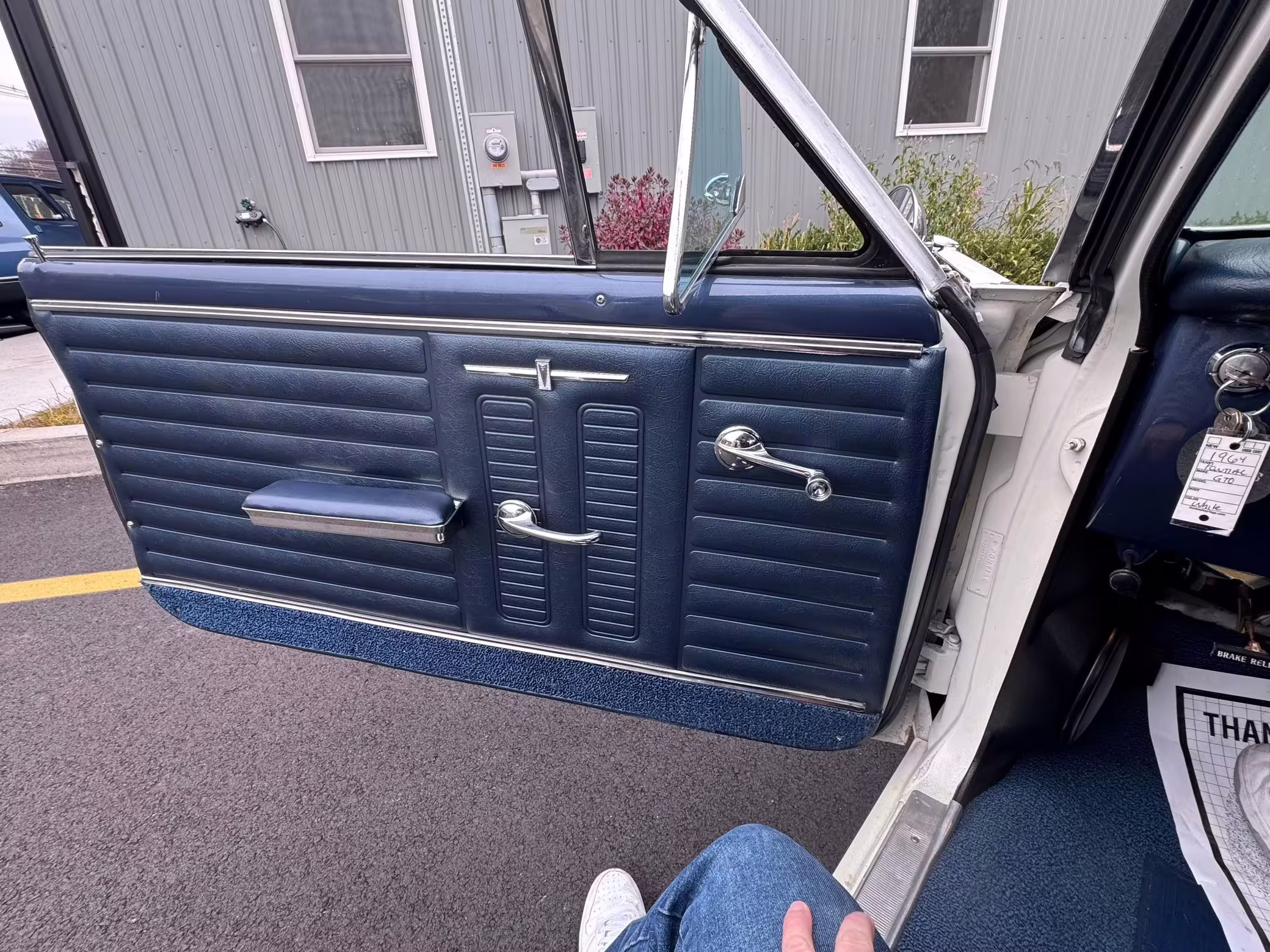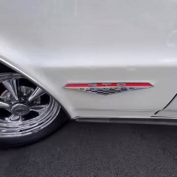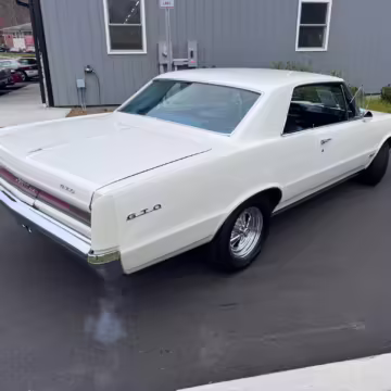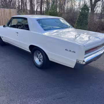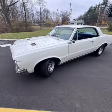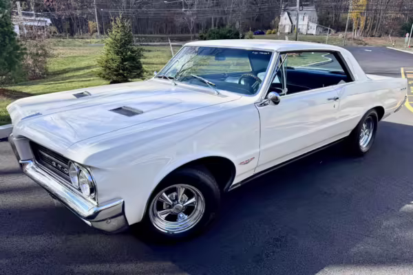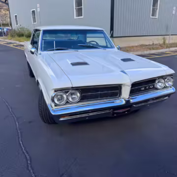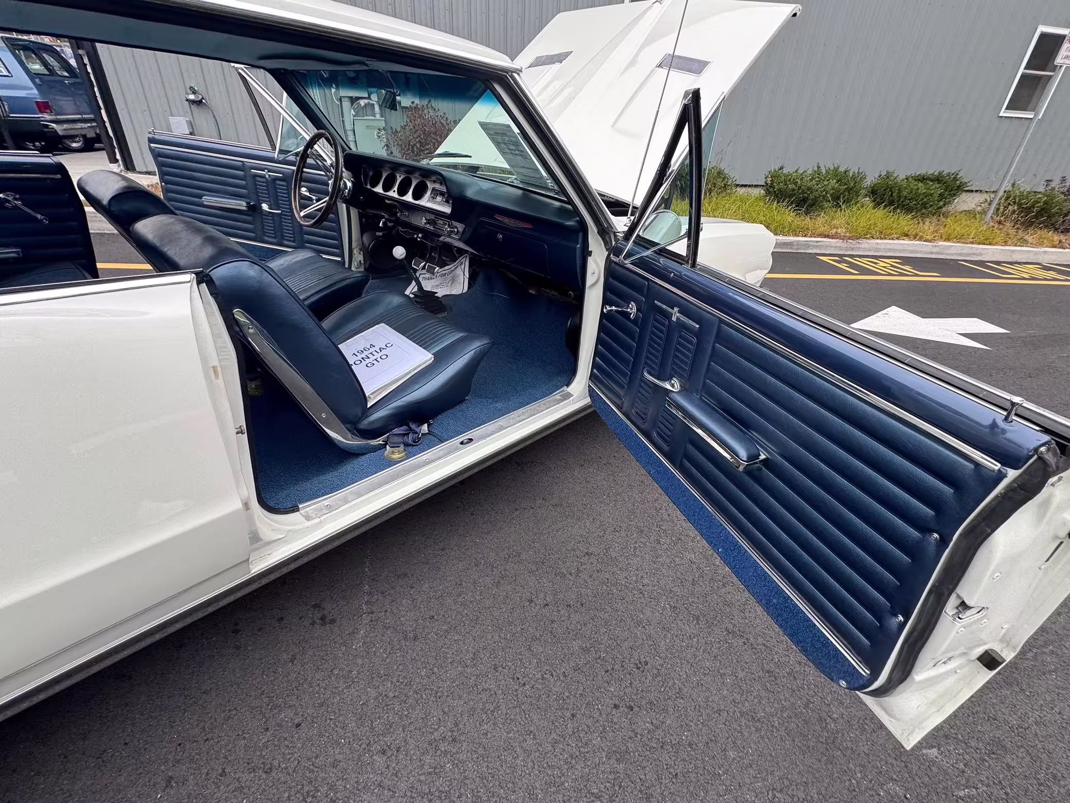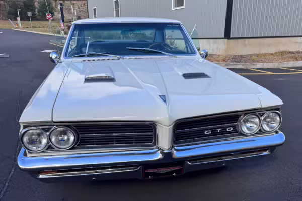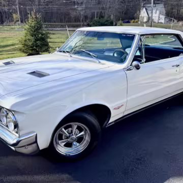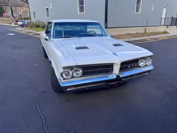 1964 Pontiac GTO Coupe, finished in white with a blue interior.