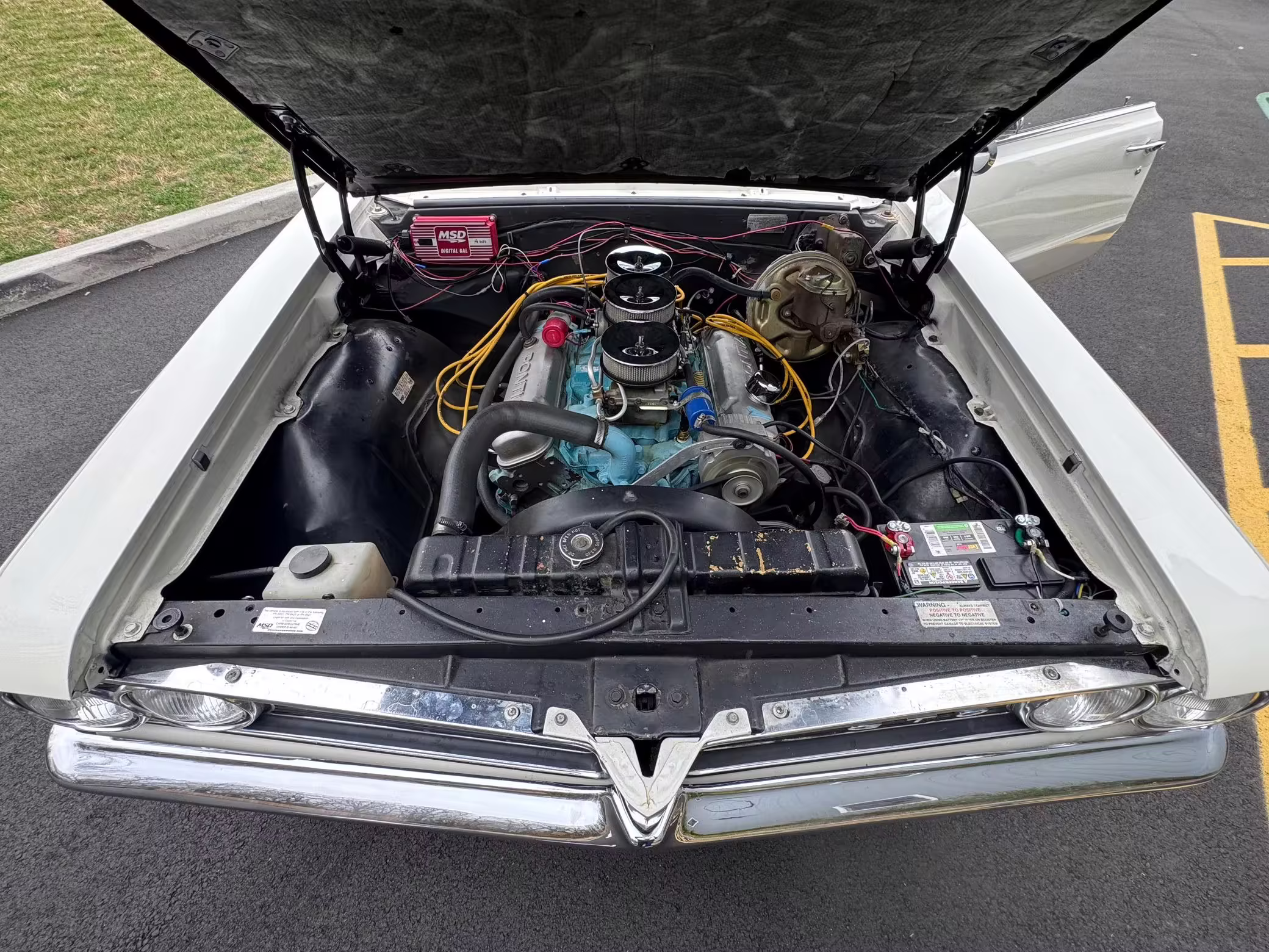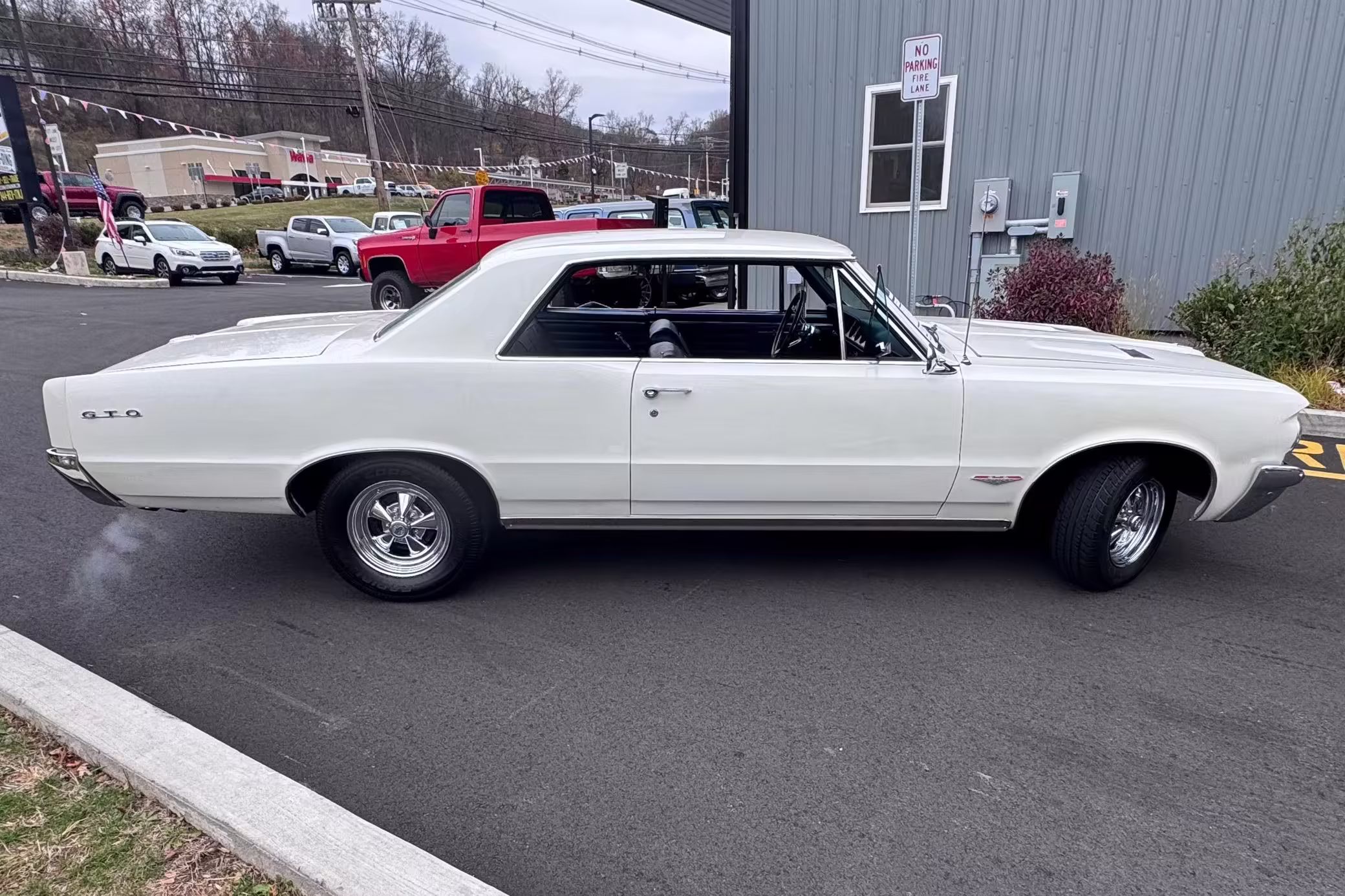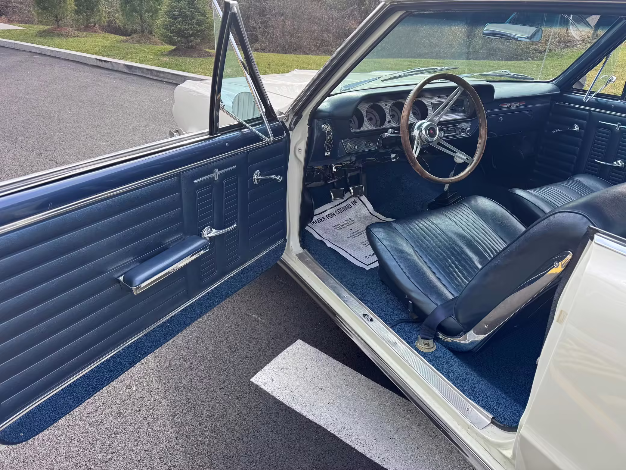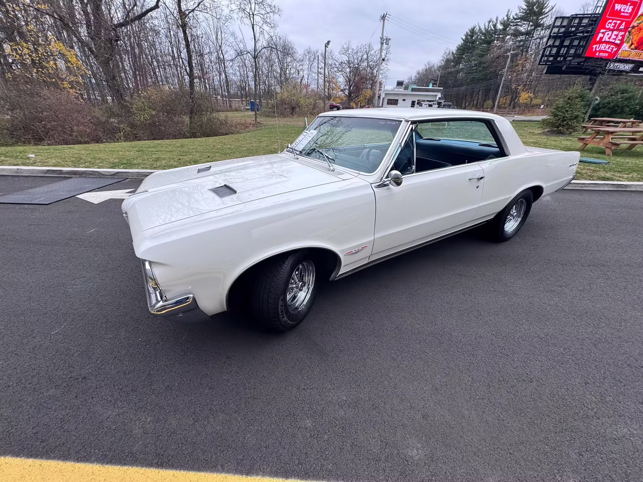 1964 Pontiac GTO Coupe, finished in white with a blue interior.