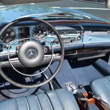 If you’re considering a classic car that you can easily drive daily even today, then the “Pagoda” Mercedes-Benz SL should be near the top of your list – it boasts impressive build quality, a smooth and potent 6-cylinder engine, and handsome styling that has aged well. This particular 280SL is finished in a gorgeous Horizon Blue over blue color combination, and it comes with a body-colored factory hardtop. It also benefits from a recent transmission rebuild, which should provide some peace of mind for the next owner.