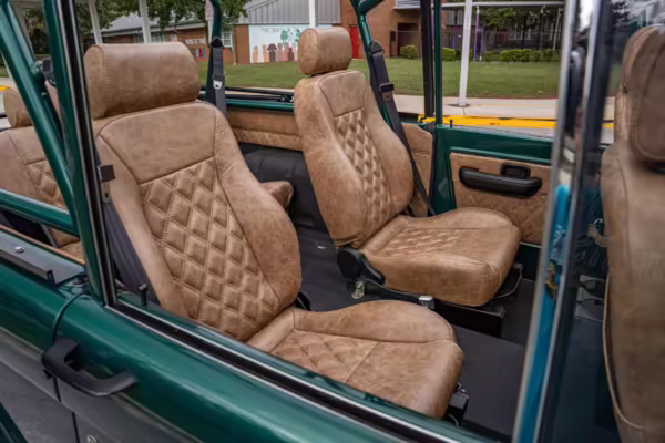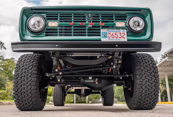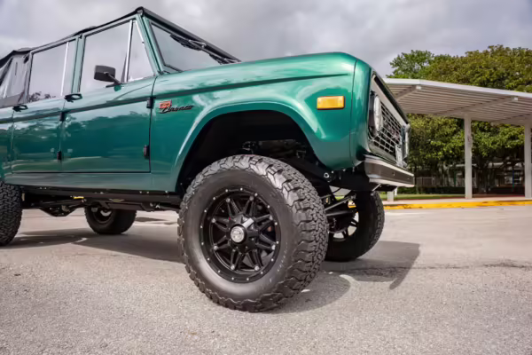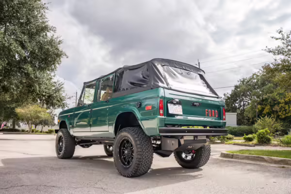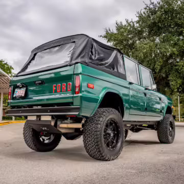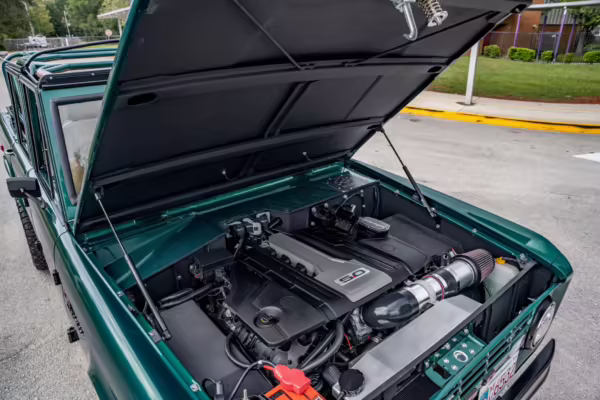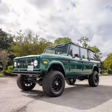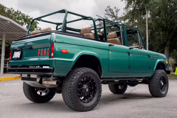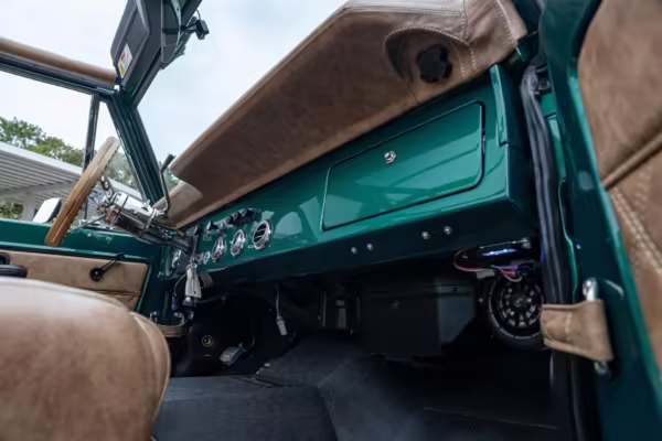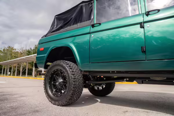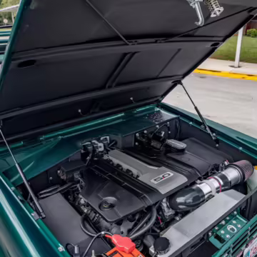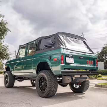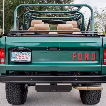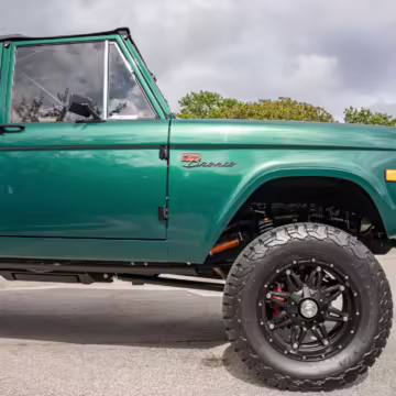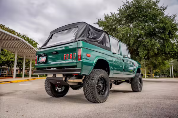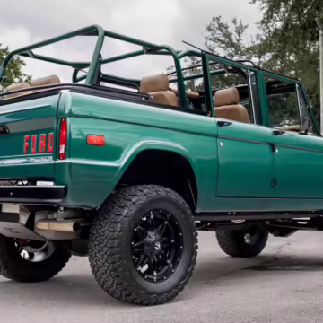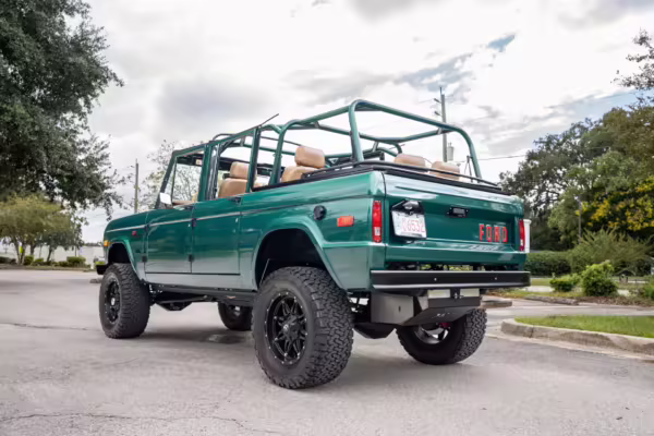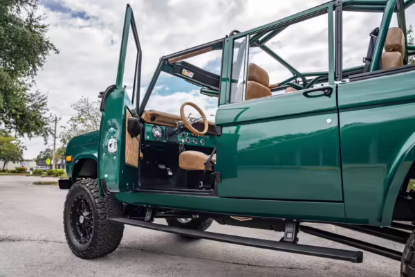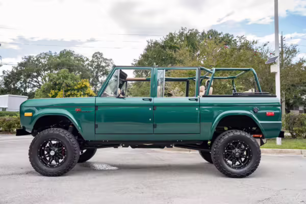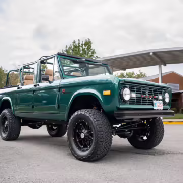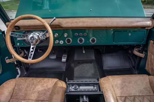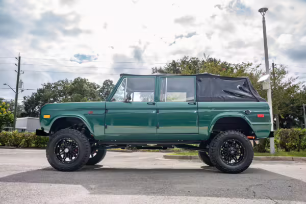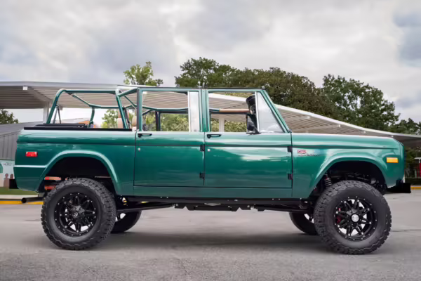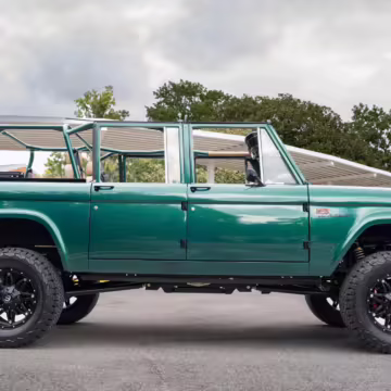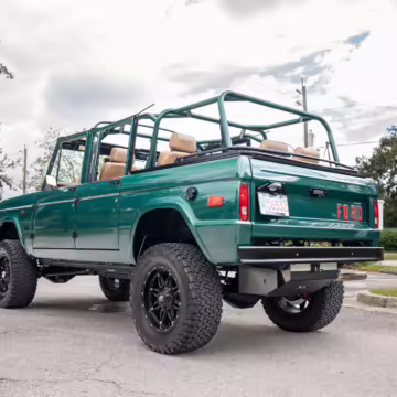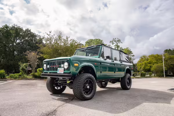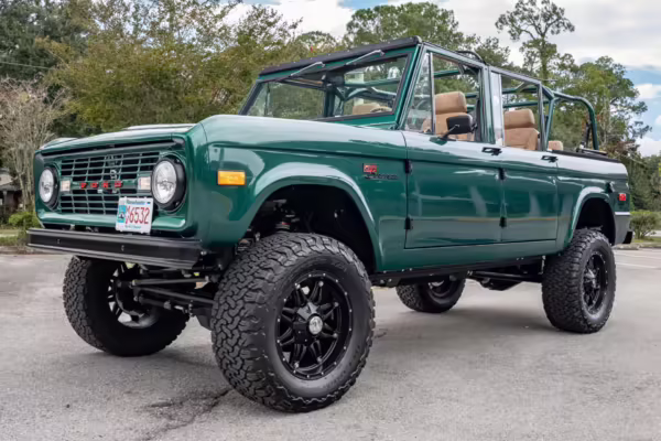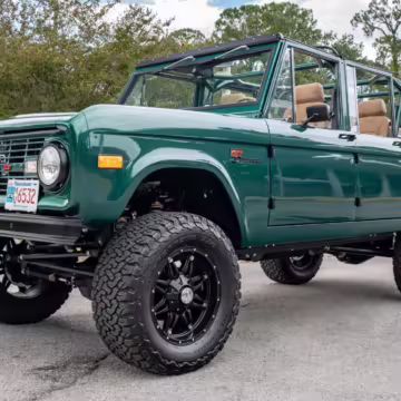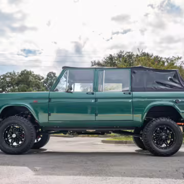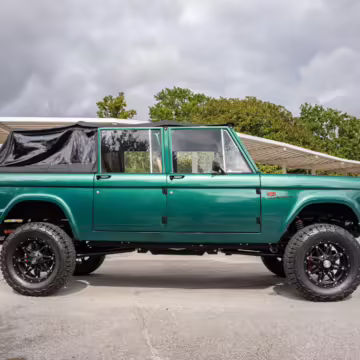Ford never built the original Bronco with four doors – but, thanks to restomodder Vintage Broncos, a vintage 4-door Bronco is exactly what we have here! This particular Bronco is an impressive truck, boasting a longer Kincer chassis, semi-active suspension, Wilwood brakes, third-row seating, and much more – and it’s powered by a potent Coyote V8 paired with a 10-speed automatic transmission and 4-wheel drive! It’s also finished in the lovely color combination of Dark Jade Metallic over a brown leather interior. If you’ve always wanted an original Bronco enhanced with modern tech and space for the whole family, this is the one!
