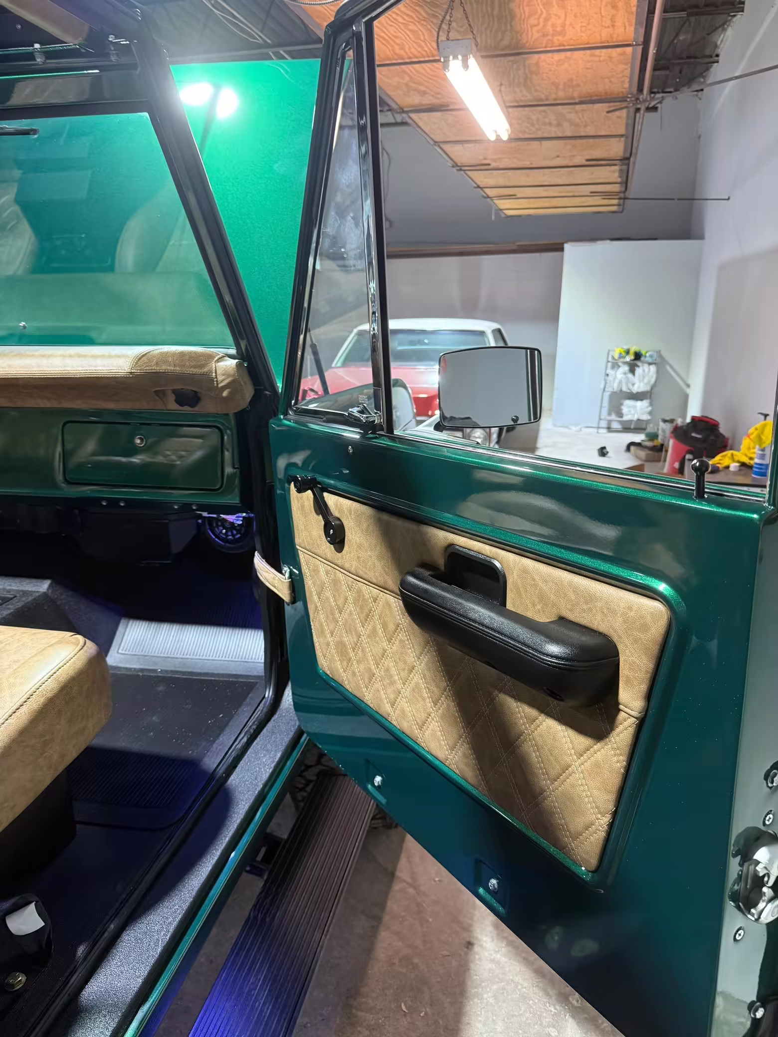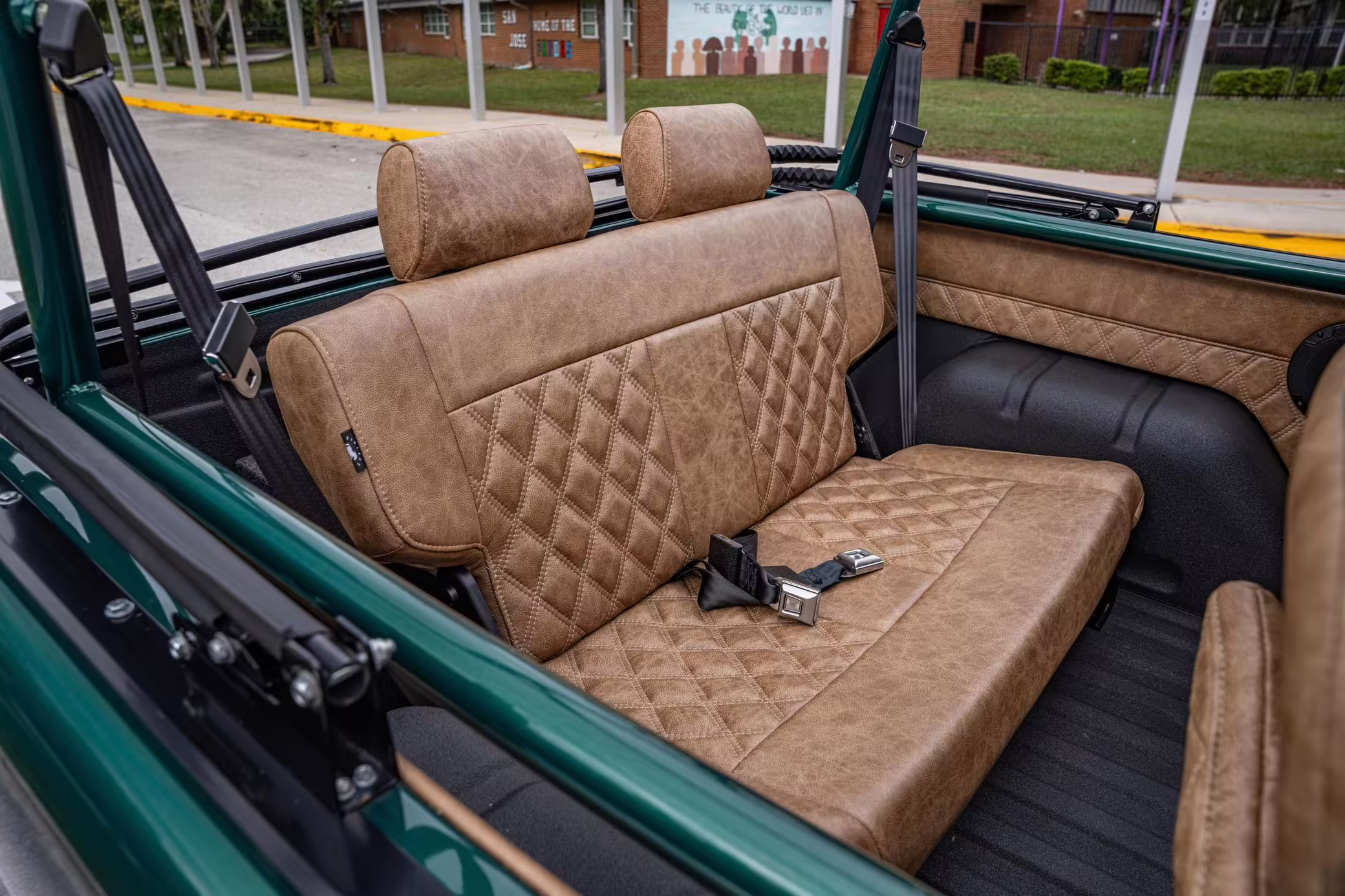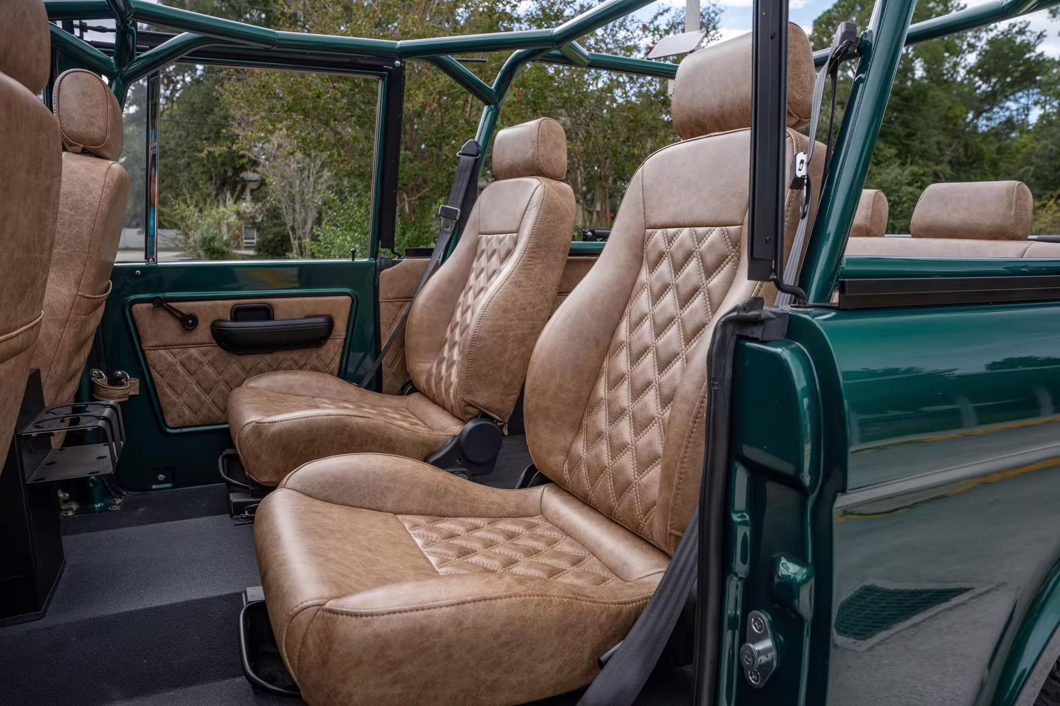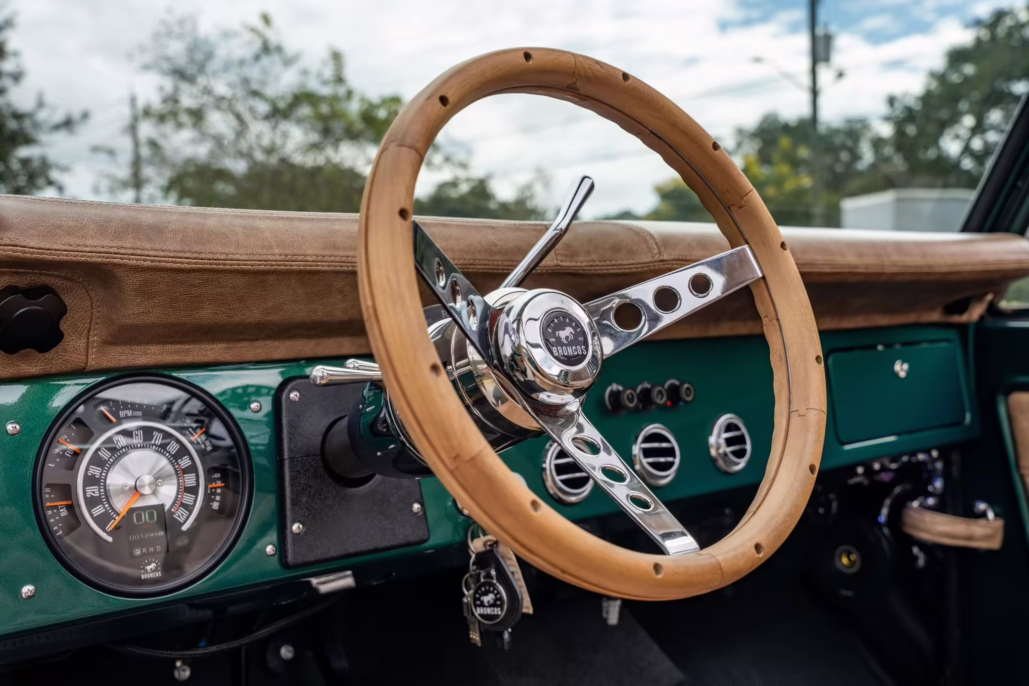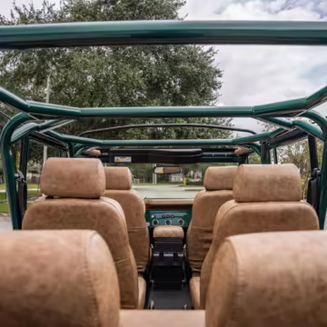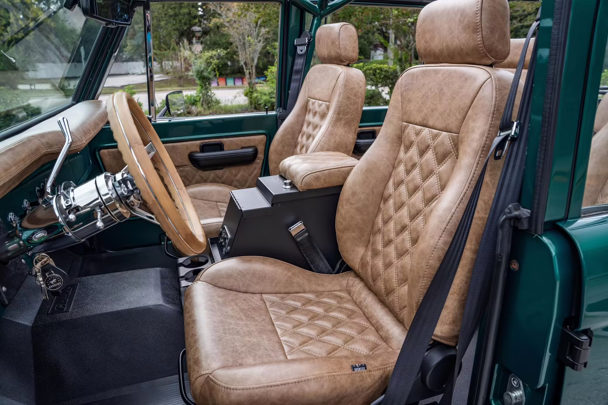 Ford never built the original Bronco with four doors – but, thanks to restomodder Vintage Broncos, a vintage 4-door Bronco is exactly what we have here! This particular Bronco is an impressive truck, boasting a longer Kincer chassis, semi-active suspension, Wilwood brakes, third-row seating, and much more – and it’s powered by a potent Coyote V8 paired with a 10-speed automatic transmission and 4-wheel drive! It’s also finished in the lovely color combination of Dark Jade Metallic over a brown leather interior. If you’ve always wanted an original Bronco enhanced with modern tech and space for the whole family, this is the one!