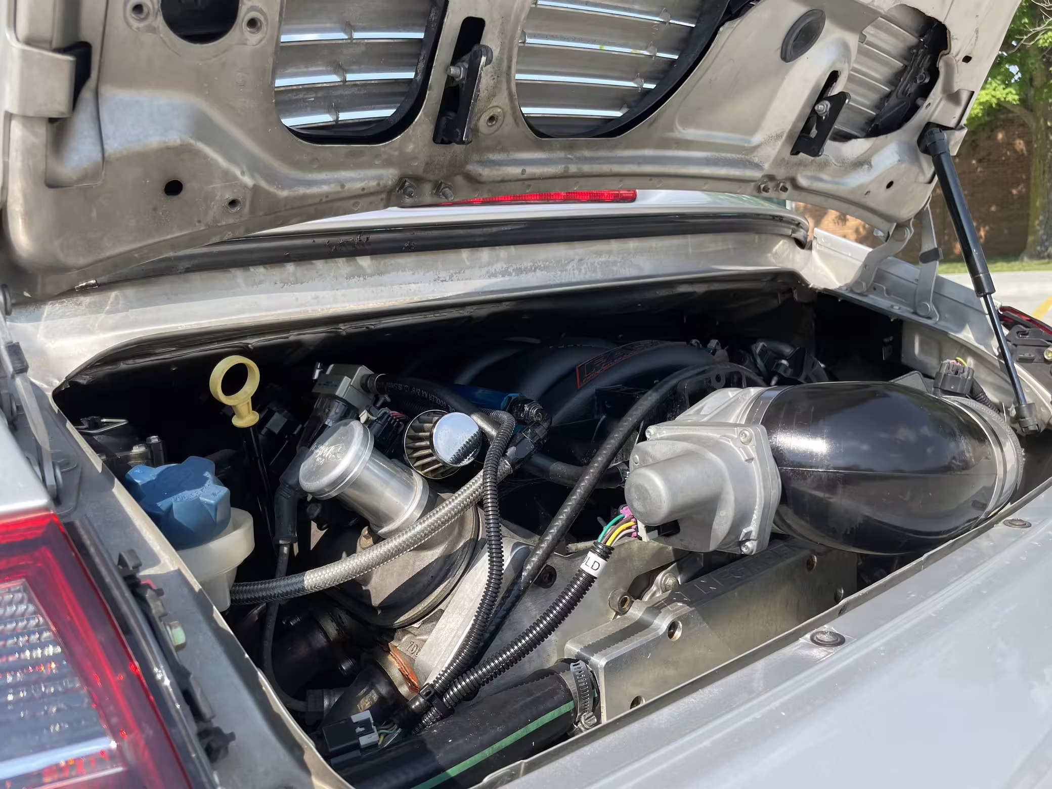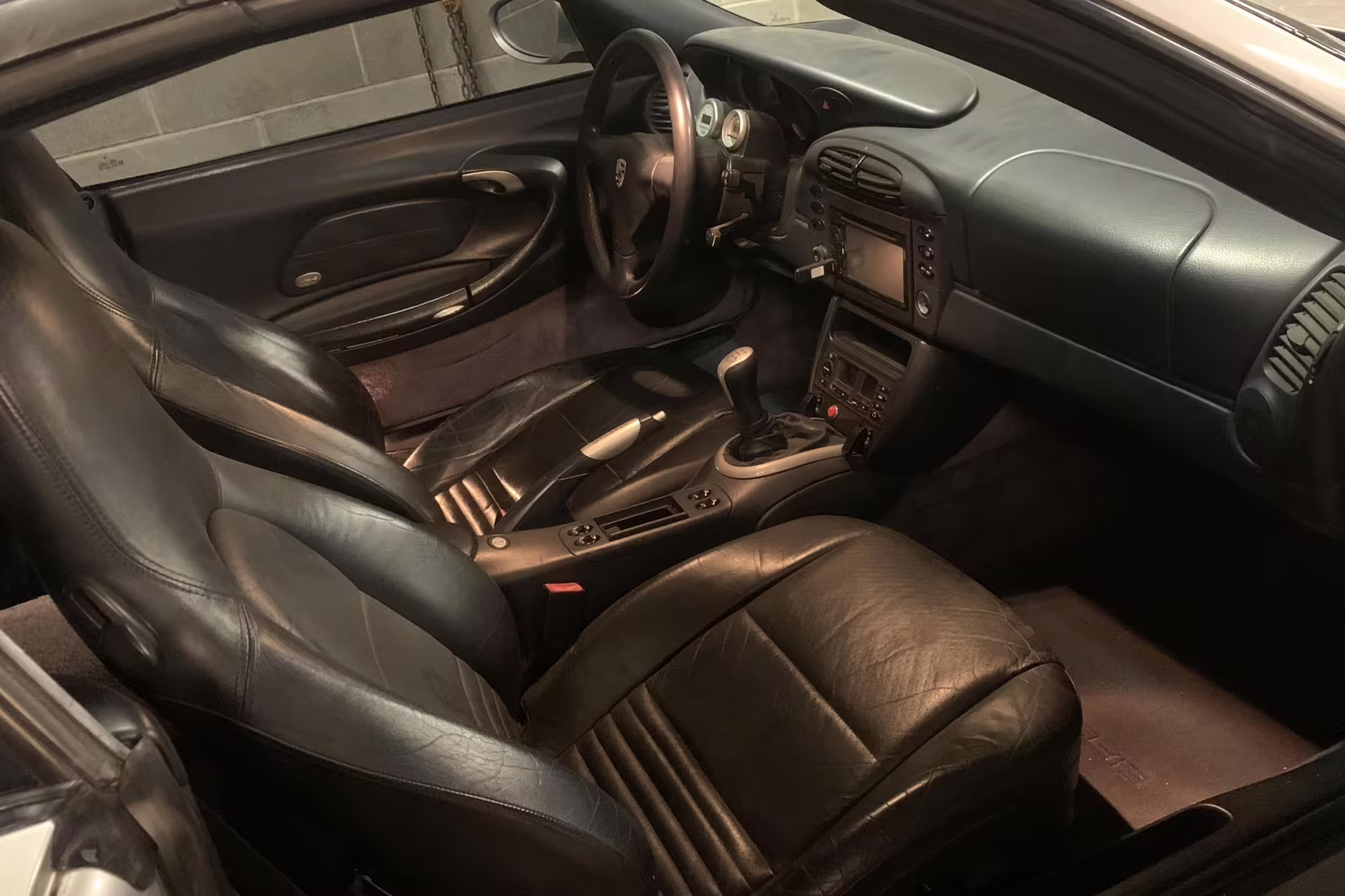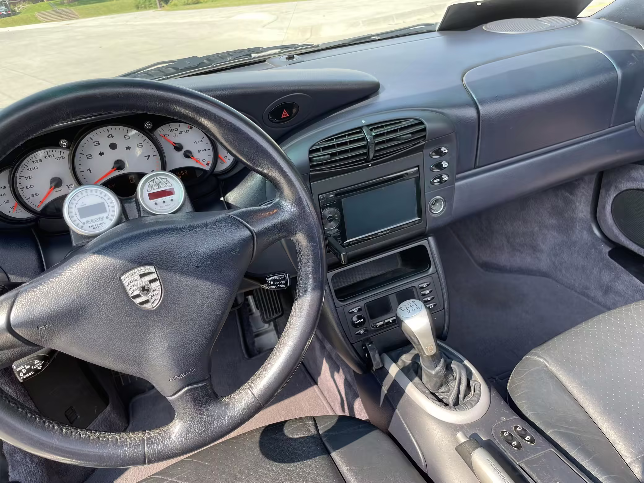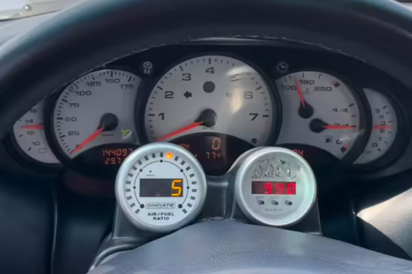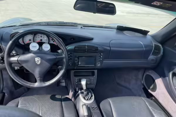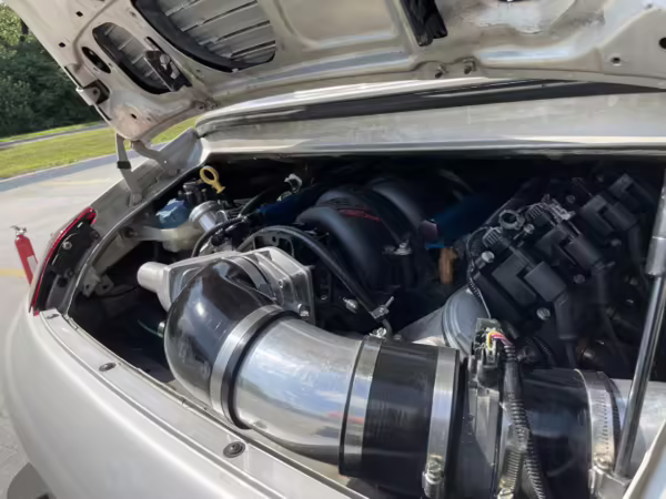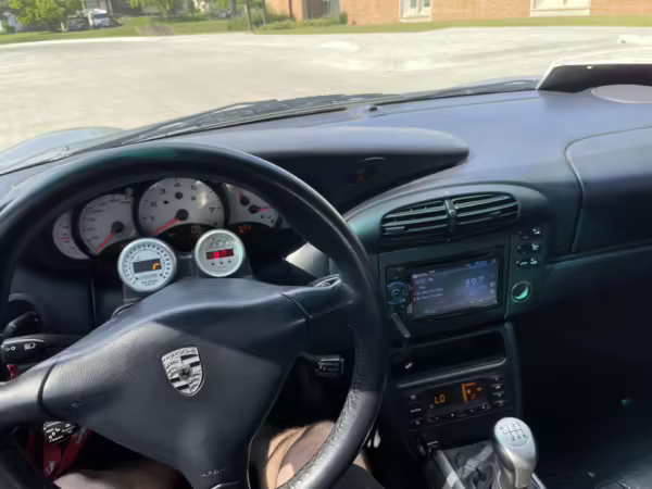 Modifications to this Porsche are extensive, and the full list is shown below. Highlights include a swapped 6.0-liter GM V8 with numerous upgrades, a new clutch and flywheel, electric power steering, Yellow Speed Racing coilover suspension, a full 996.2 Turbo front end conversion, 19-inch 997 alloy wheels, and a Pioneer double-DIN head unit.