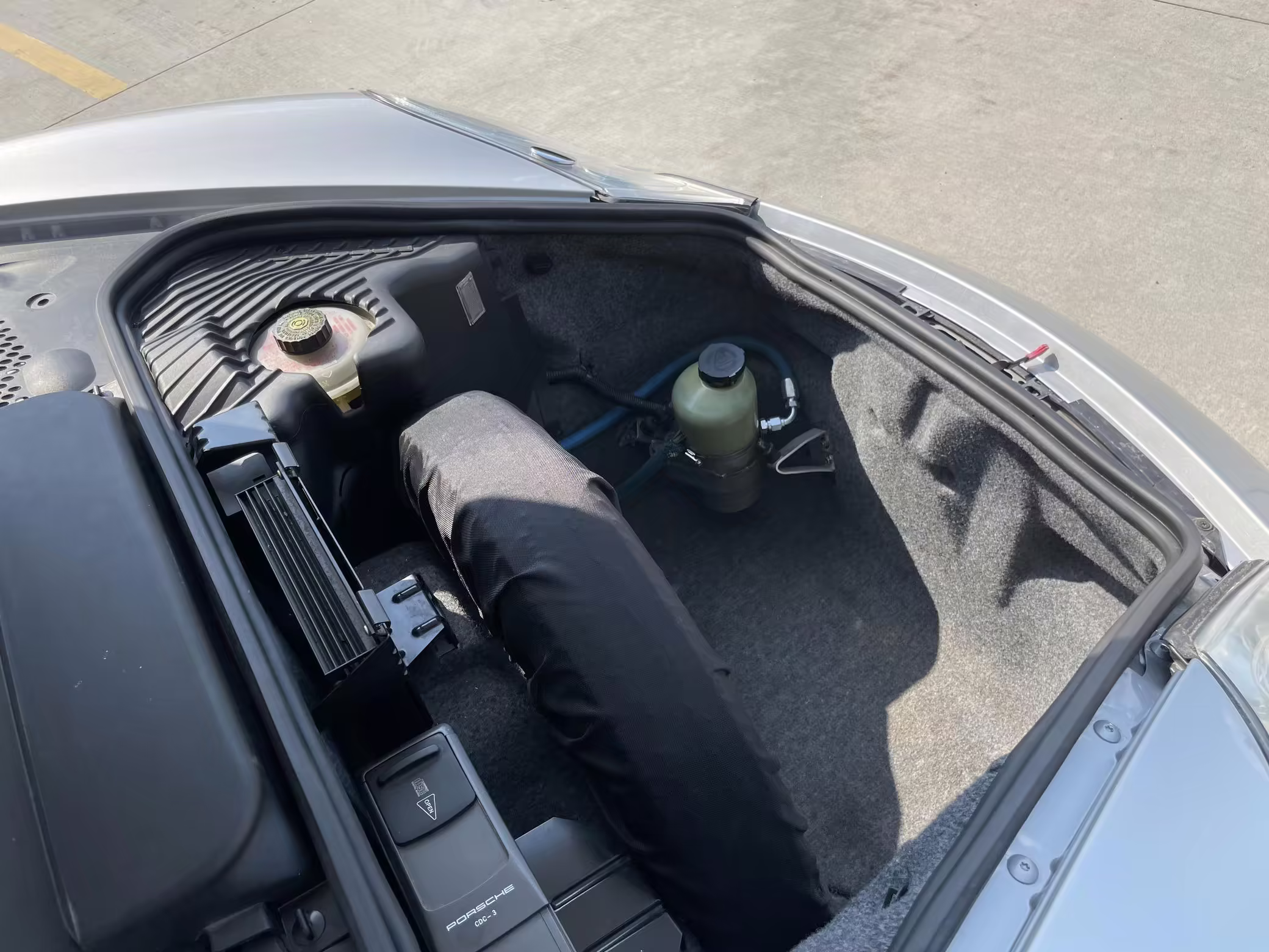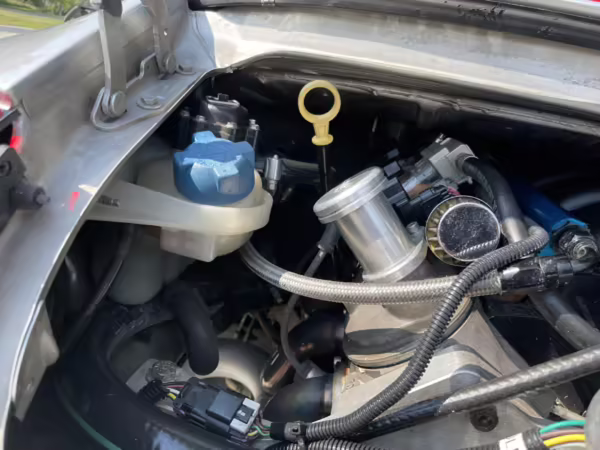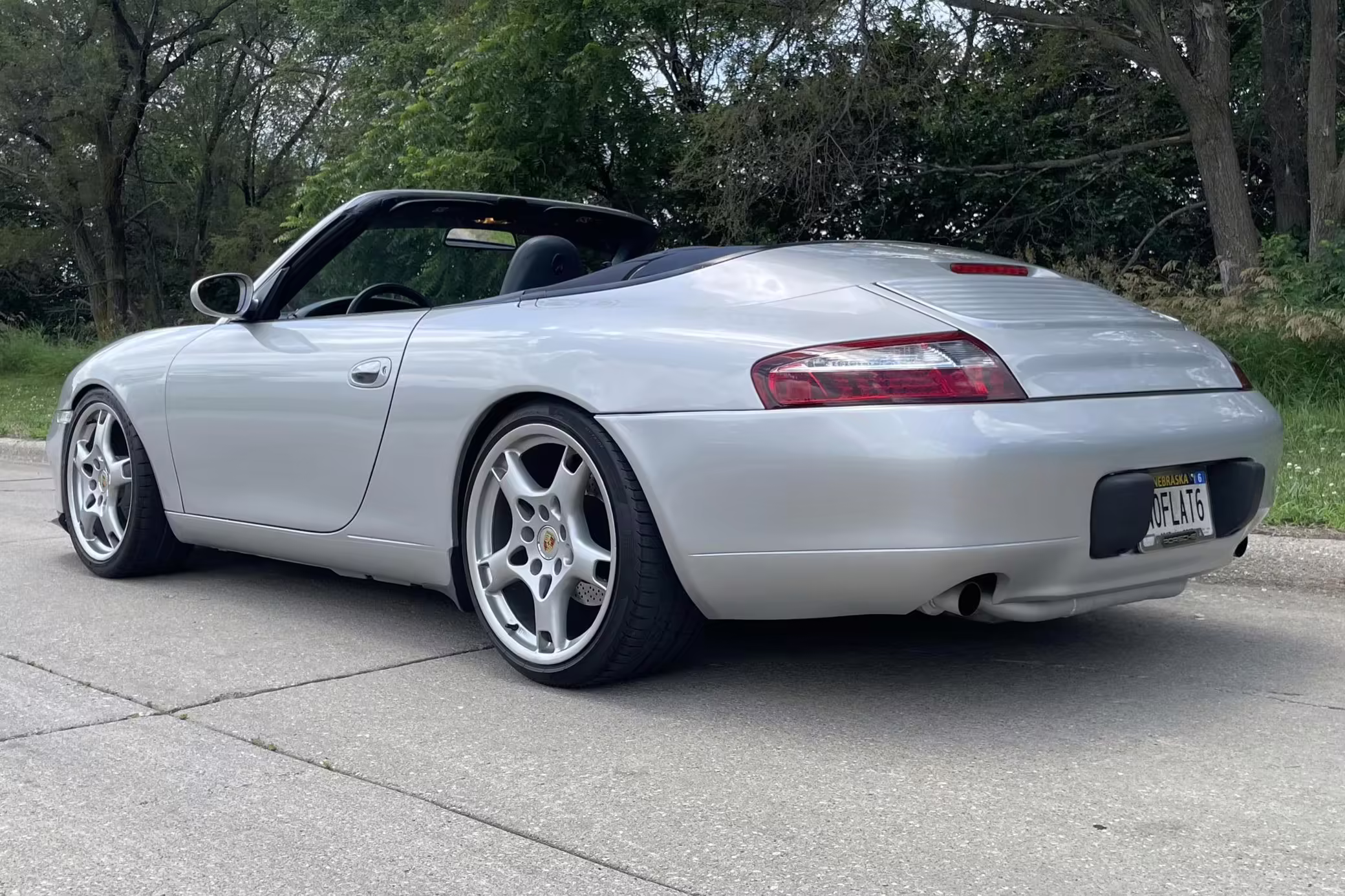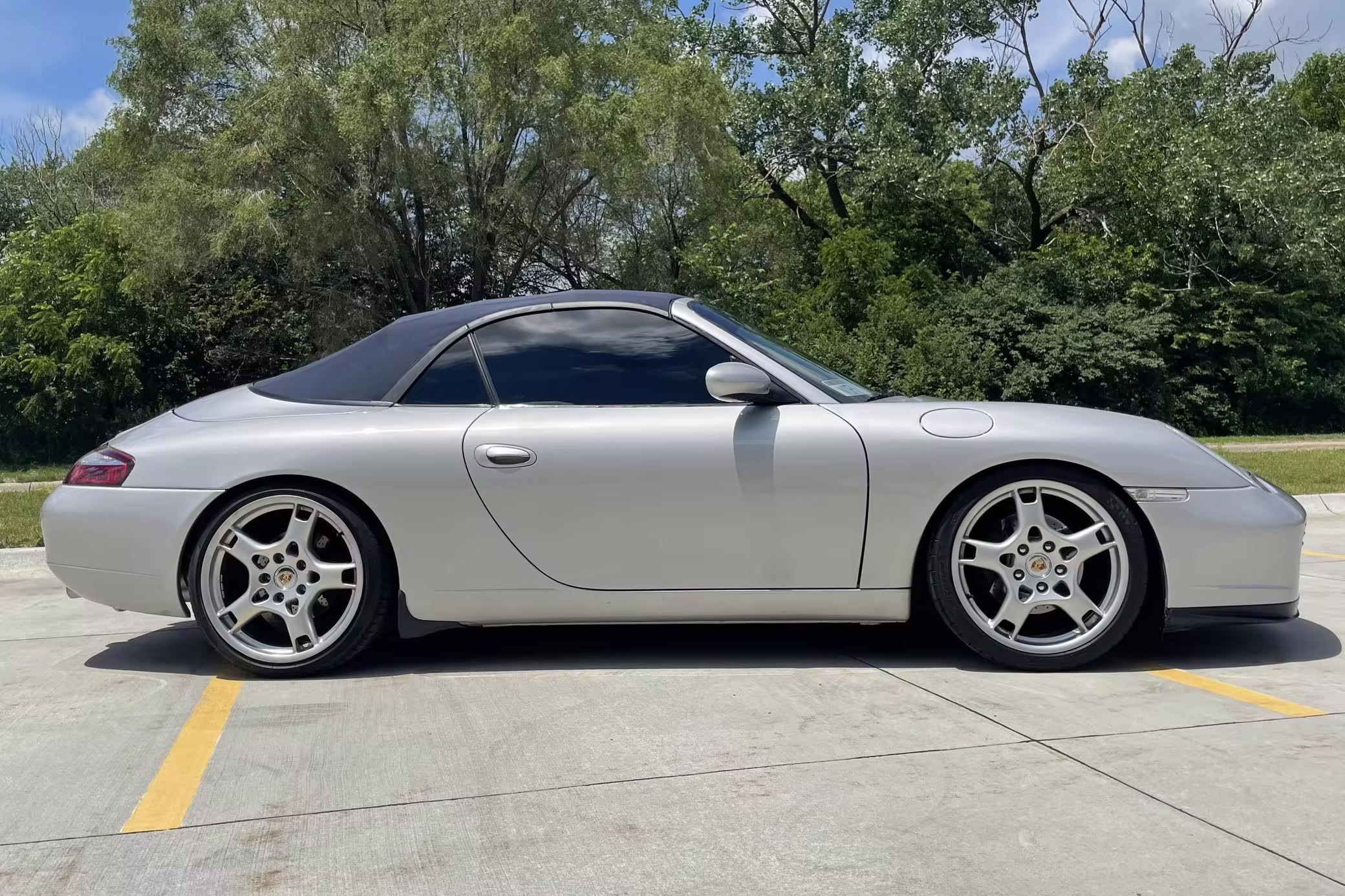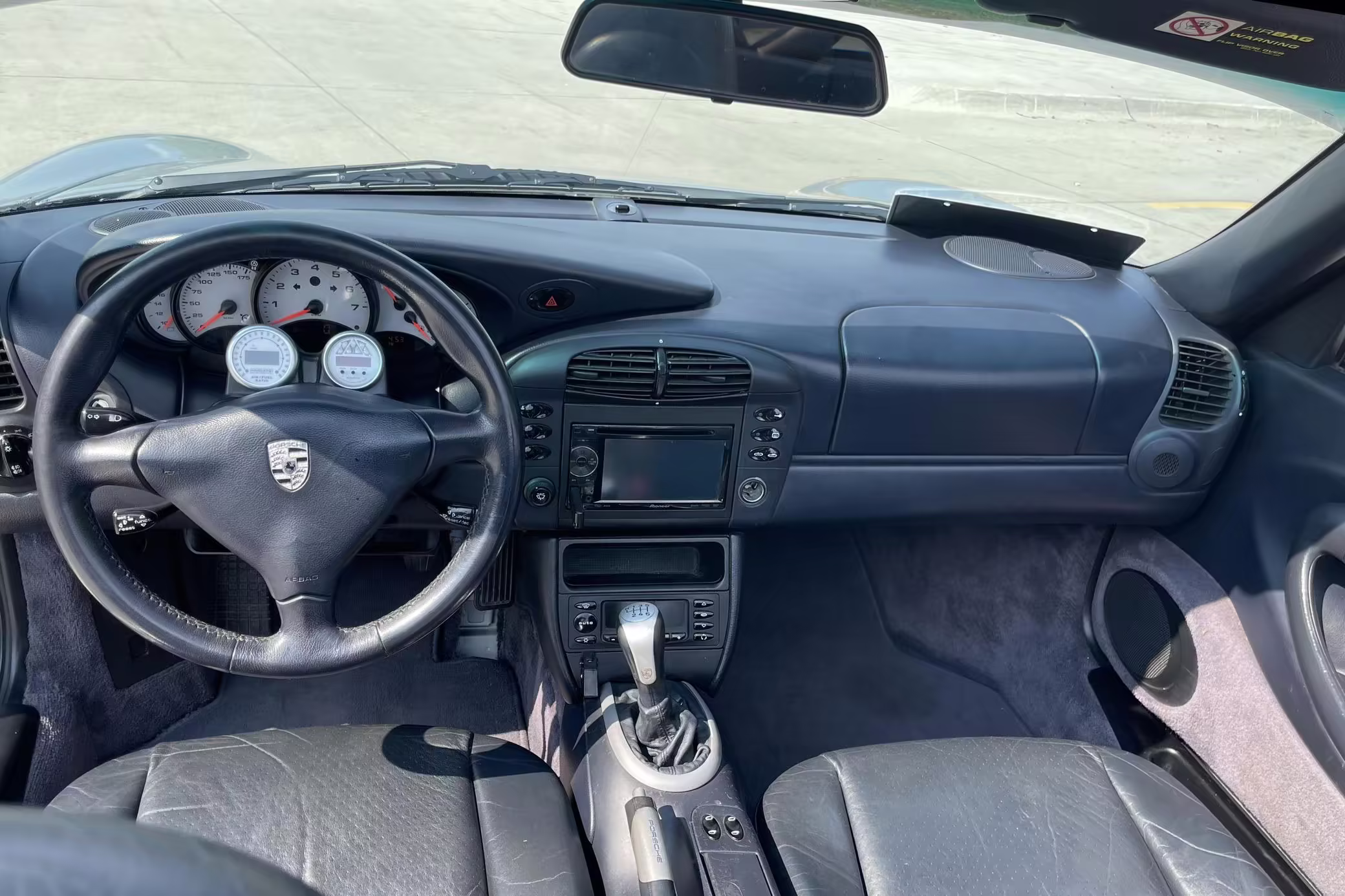 Modifications to this Porsche are extensive, and the full list is shown below. Highlights include a swapped 6.0-liter GM V8 with numerous upgrades, a new clutch and flywheel, electric power steering, Yellow Speed Racing coilover suspension, a full 996.2 Turbo front end conversion, 19-inch 997 alloy wheels, and a Pioneer double-DIN head unit.