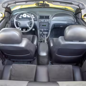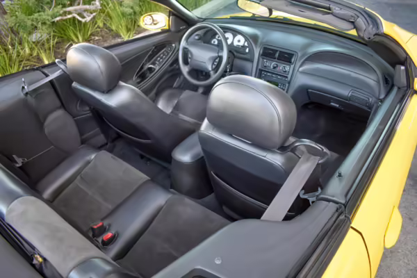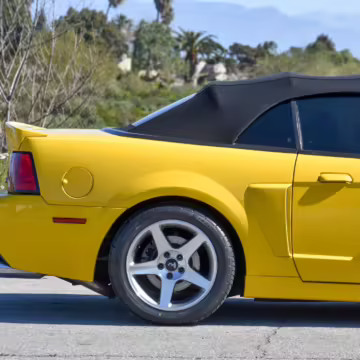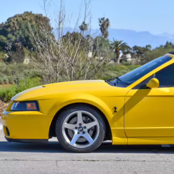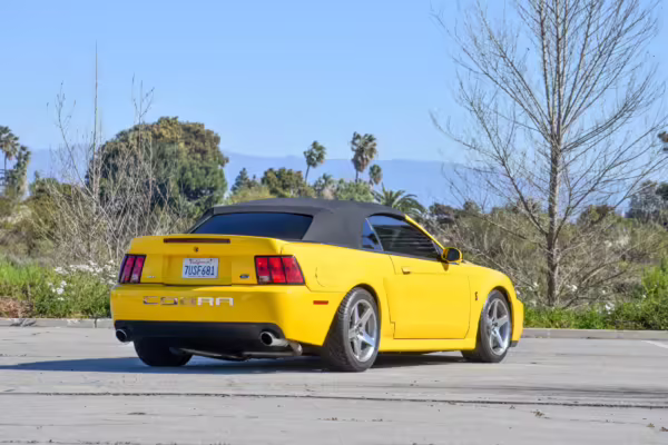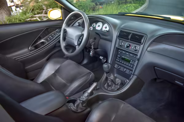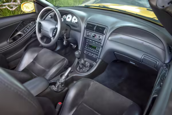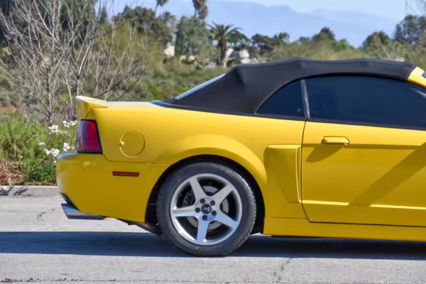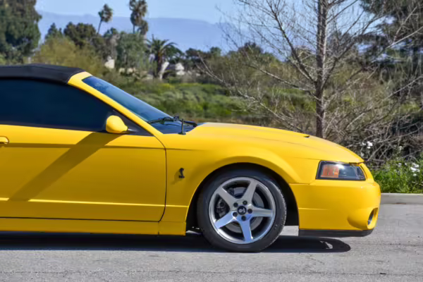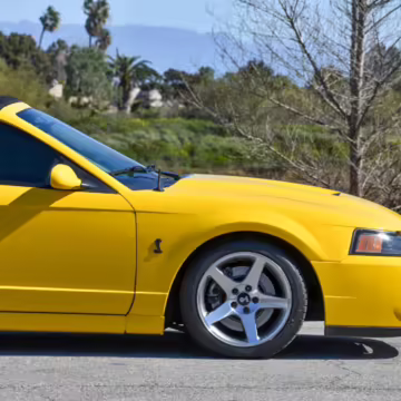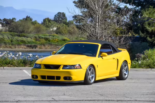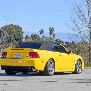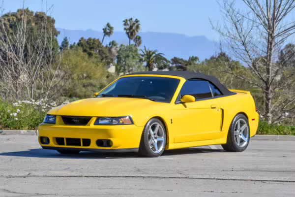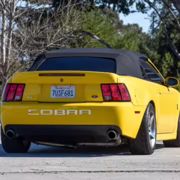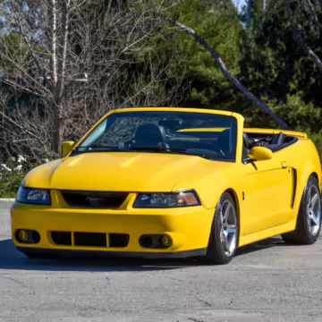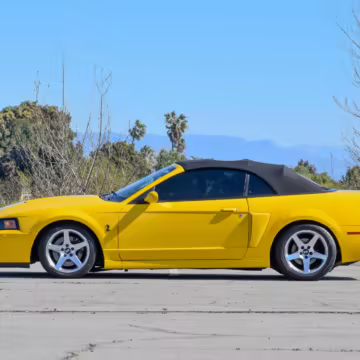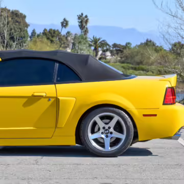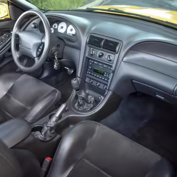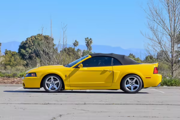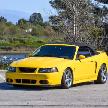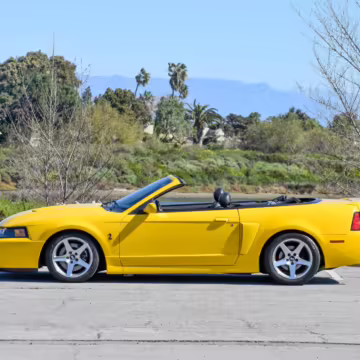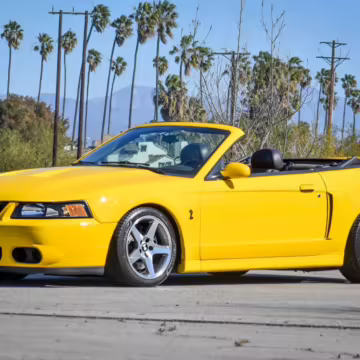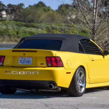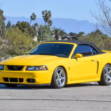 The SVT Cobra was built on the facelifted “New Edge” version of the SN95-generation Mustang. It featured an independent rear suspension, 17-inch alloy wheels, special bodywork, and bolstered seats, in addition to the blown version of Ford’s 4.6-liter V8. Of the total production run, just 167 were Screaming Yellow convertibles, according to Ford’s archives department. It was also the final SN-95 Mustang to be built in Ford’s plant in Dearborn, Michigan.