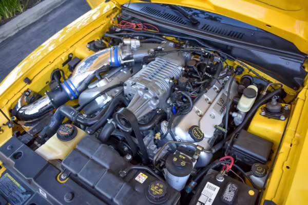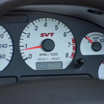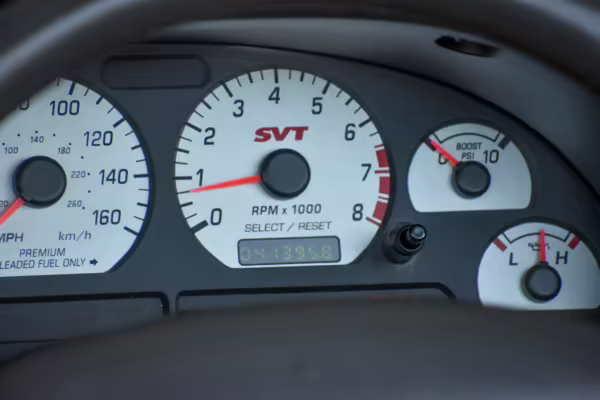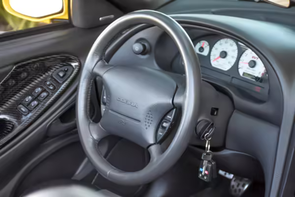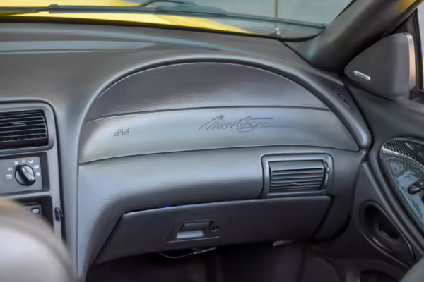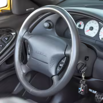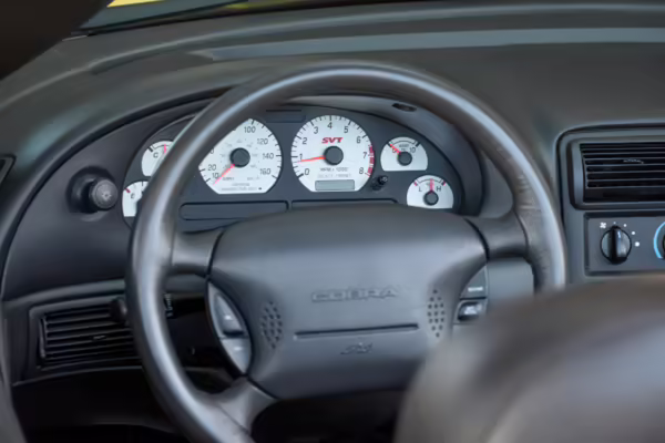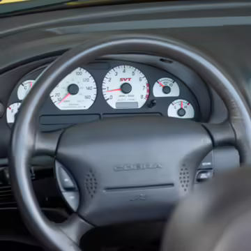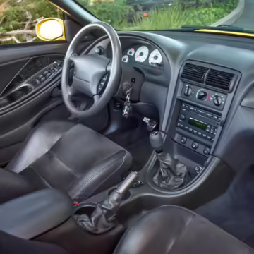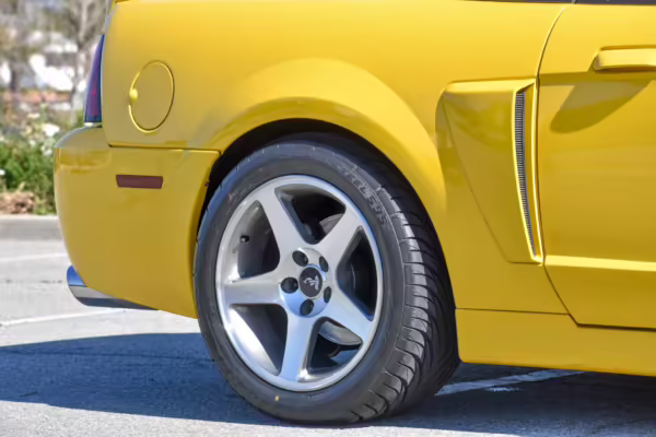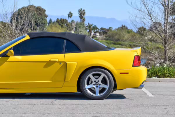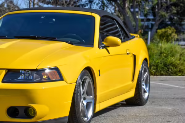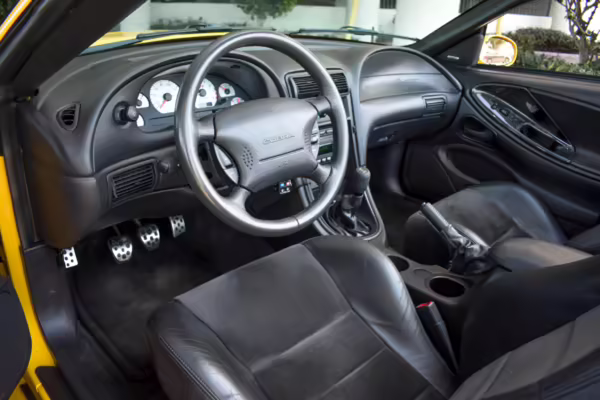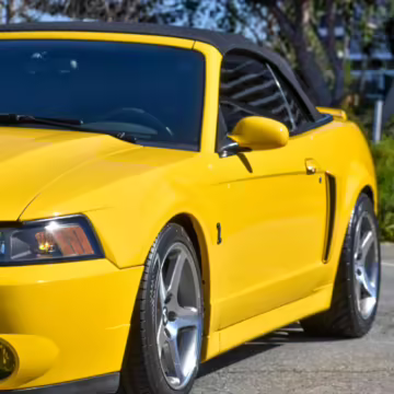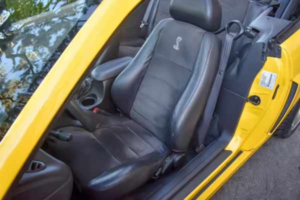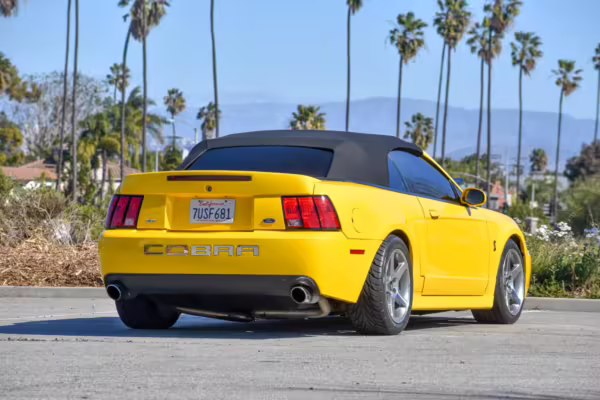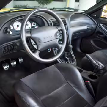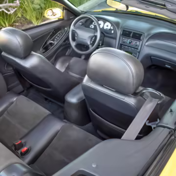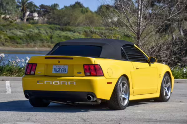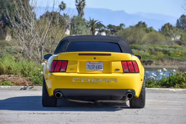 The SVT Cobra was built on the facelifted “New Edge” version of the SN95-generation Mustang. It featured an independent rear suspension, 17-inch alloy wheels, special bodywork, and bolstered seats, in addition to the blown version of Ford’s 4.6-liter V8. Of the total production run, just 167 were Screaming Yellow convertibles, according to Ford’s archives department. It was also the final SN-95 Mustang to be built in Ford’s plant in Dearborn, Michigan.
