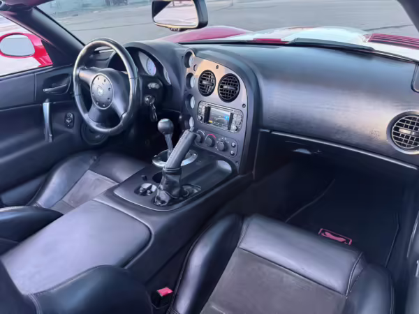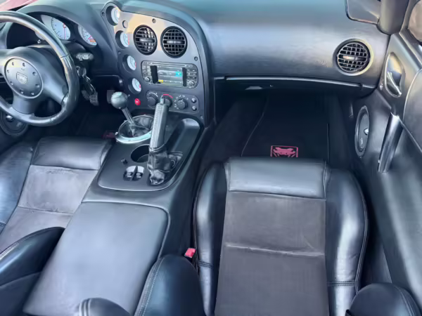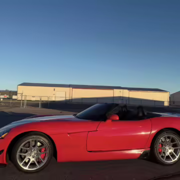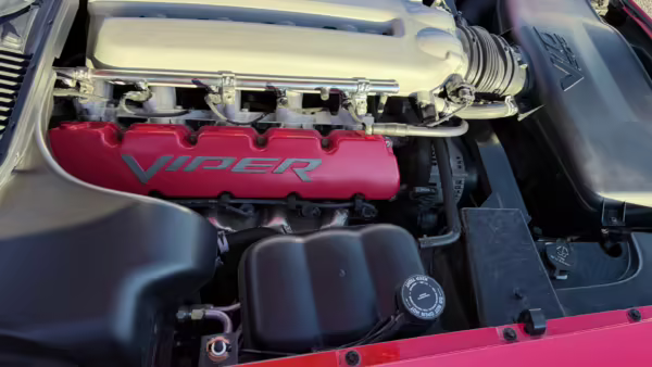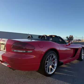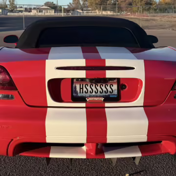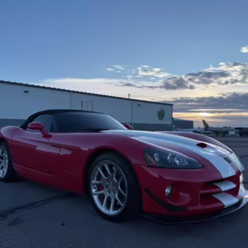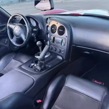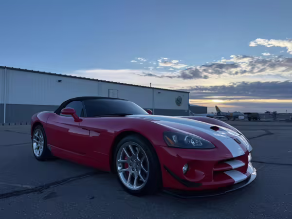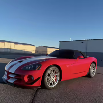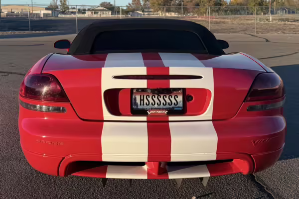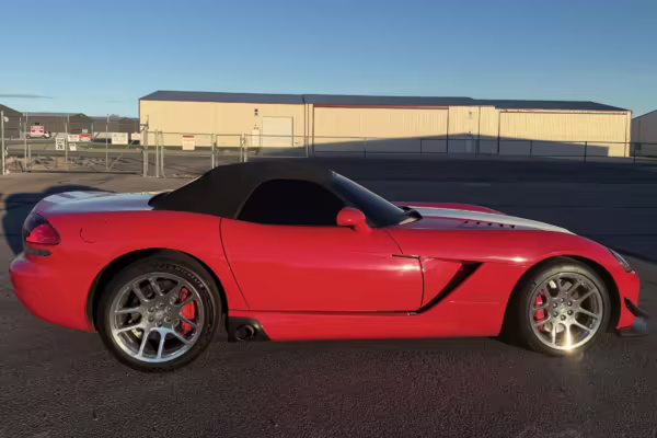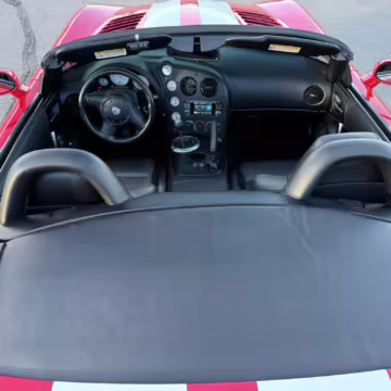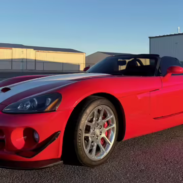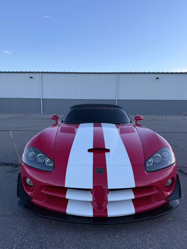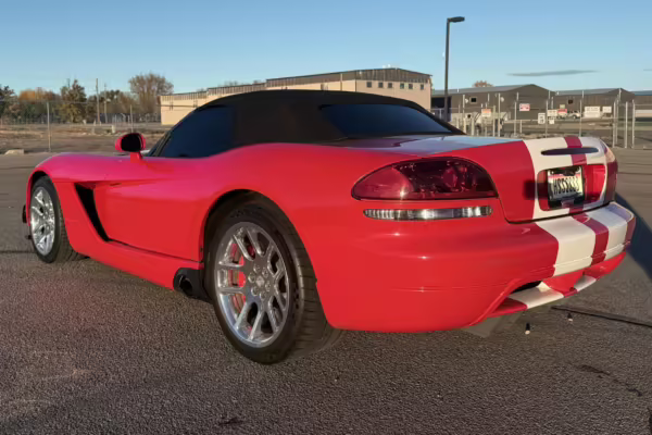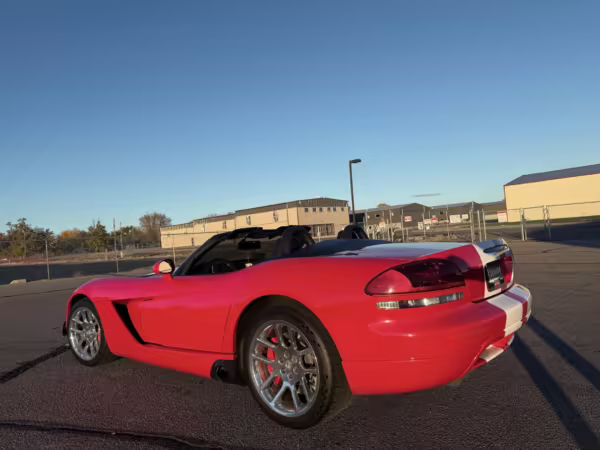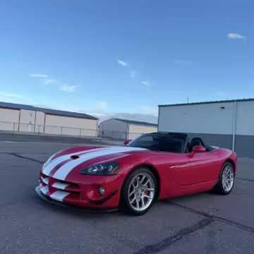 The third-generation Dodge Viper is a thrilling sports car, offering a monstrous 8.3-liter V10, a mandatory 6-speed manual transmission, and aggressive styling. This particular Viper touts relatively low mileage and some nice factory equipment, like dual side exhaust, leather and suede upholstery, and air conditioning. It also boasts a few tasteful upgrades, including a carbon fiber front lip and white vinyl racing stripes.