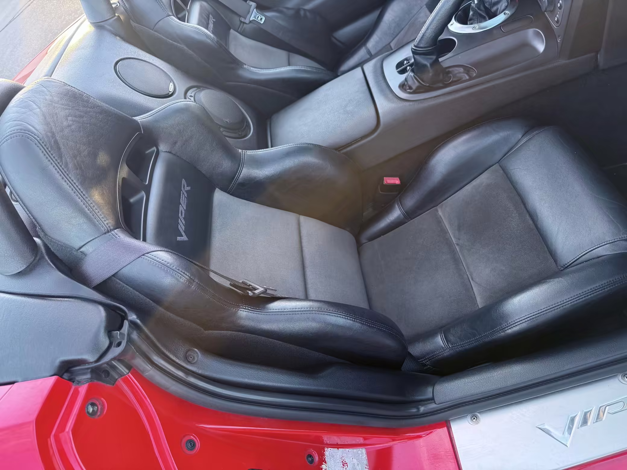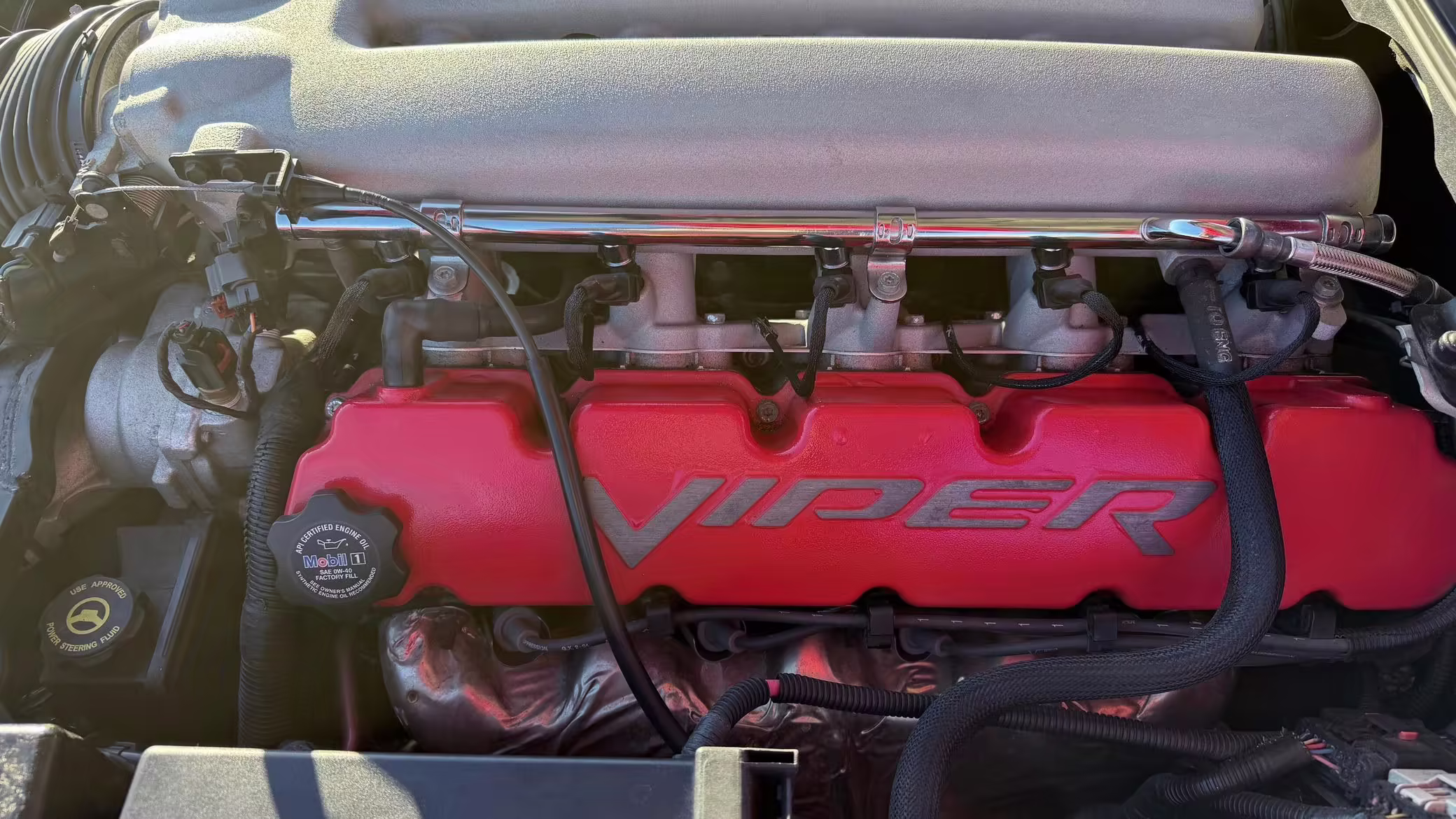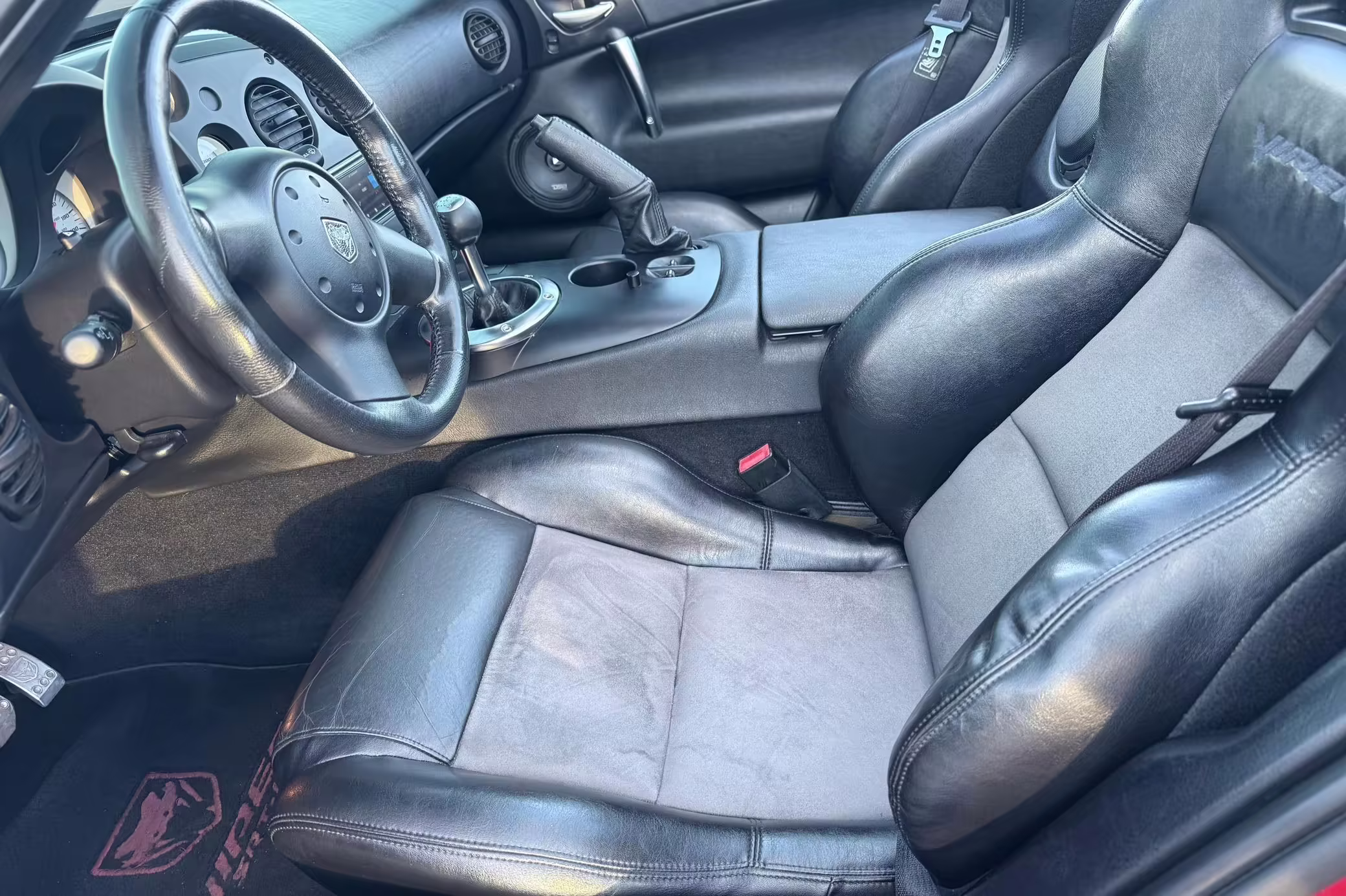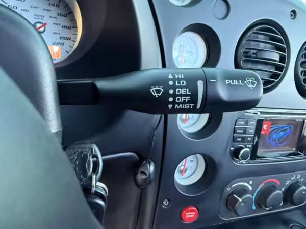 The third-generation Dodge Viper is a thrilling sports car, offering a monstrous 8.3-liter V10, a mandatory 6-speed manual transmission, and aggressive styling. This particular Viper touts relatively low mileage and some nice factory equipment, like dual side exhaust, leather and suede upholstery, and air conditioning. It also boasts a few tasteful upgrades, including a carbon fiber front lip and white vinyl racing stripes.