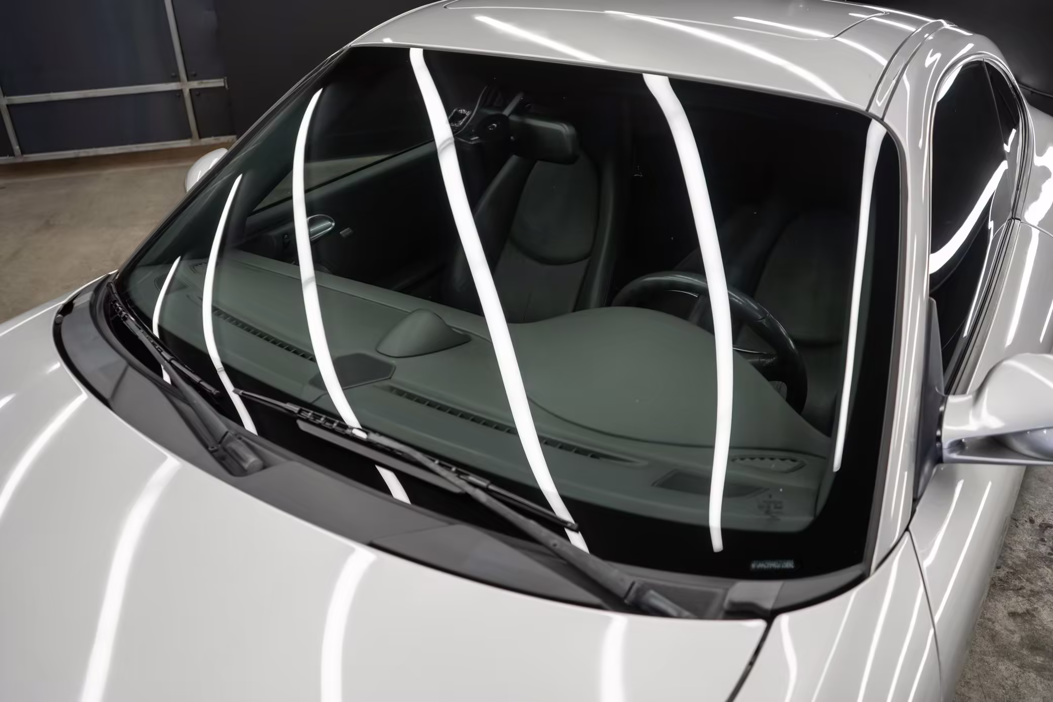 Paint protection film on the front bumper, headlights, fog lights, and rear wheel arches