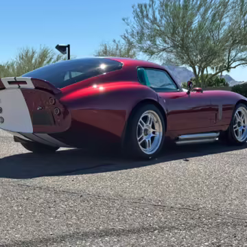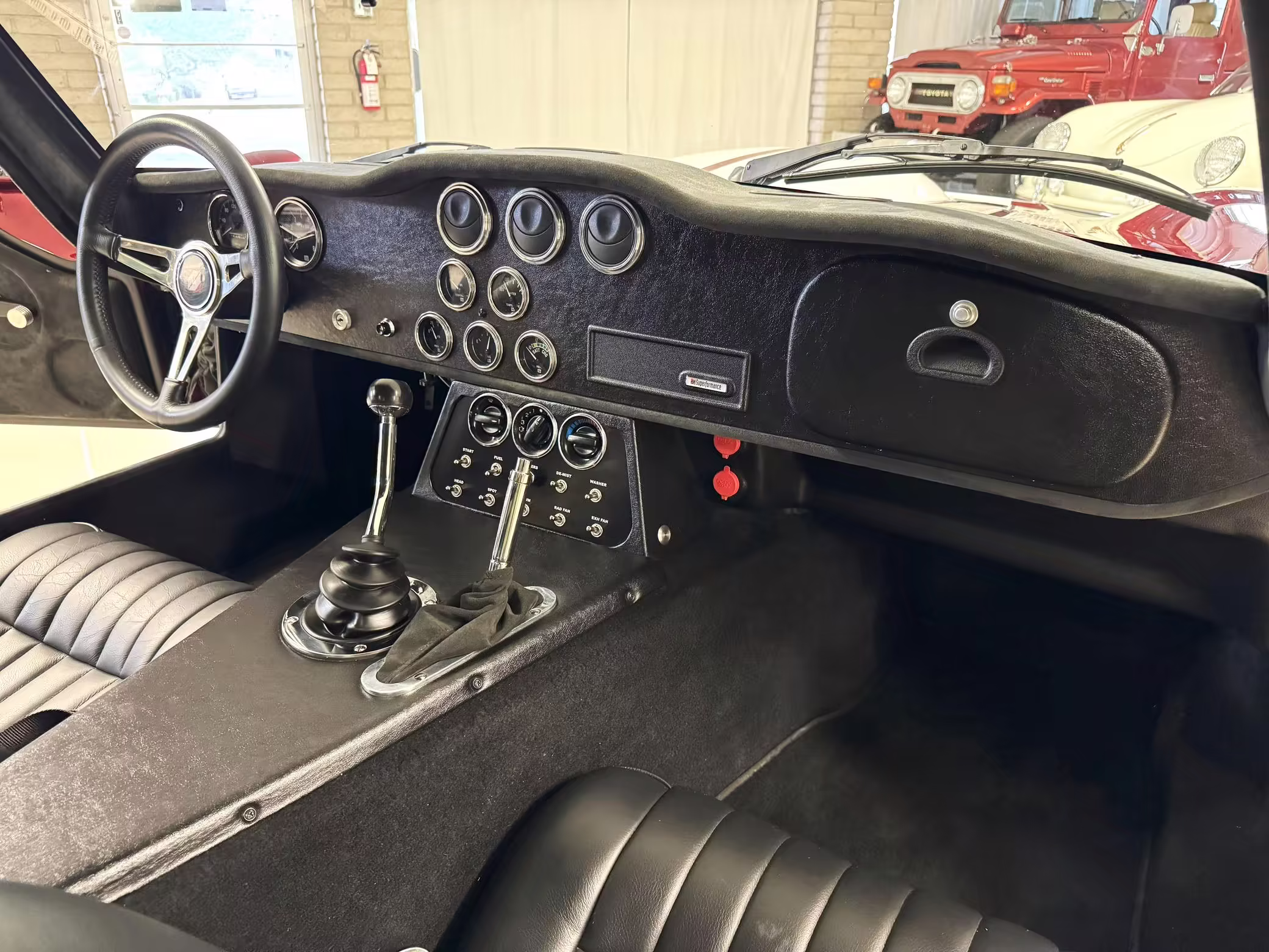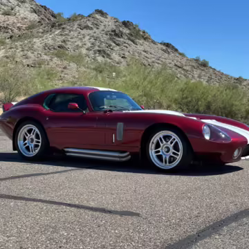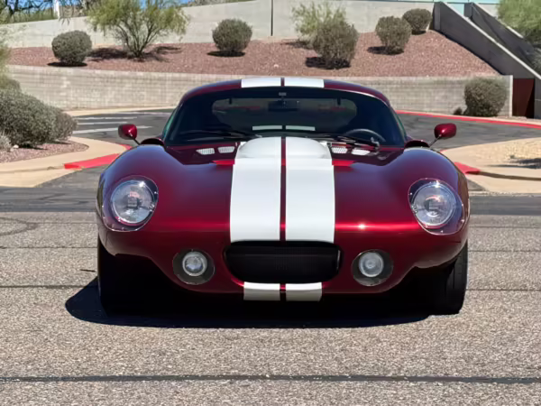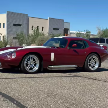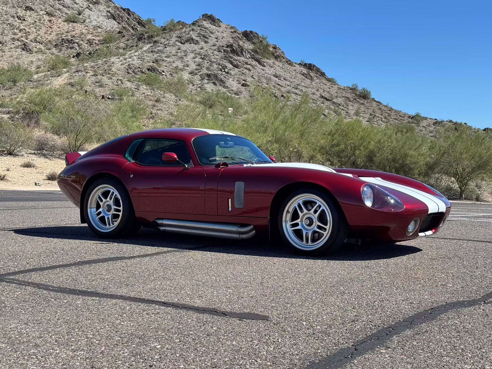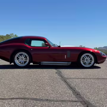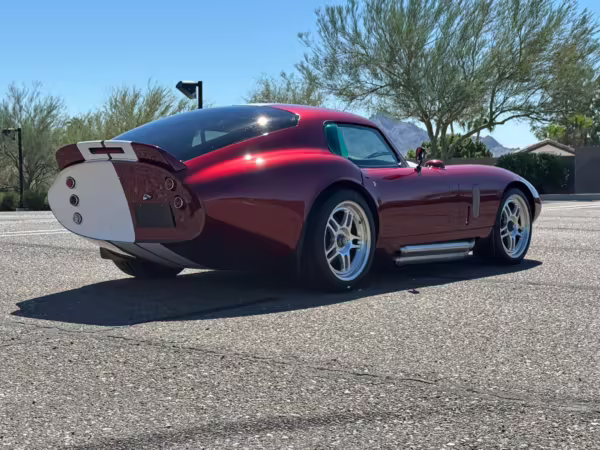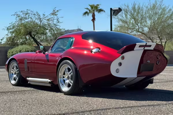 The Superformance Daytona Coupe is a thrilling sports car, boasting an analog driving character, beautiful classic styling, and a big and burly V8 – a revived classic in all the right ways. This particular Daytona Coupe is fitted with a 427-cubic-inch Windsor V8 paired with a 6-speed manual transmission. It also boasts a few desirable BRE upgrades, including a rear window, headlights and driving lights, and a set of 18-inch wheels. Plus, it’s finished in gorgeous Sunset Red, and it shows just 2,800 miles from new, further adding to the appeal.