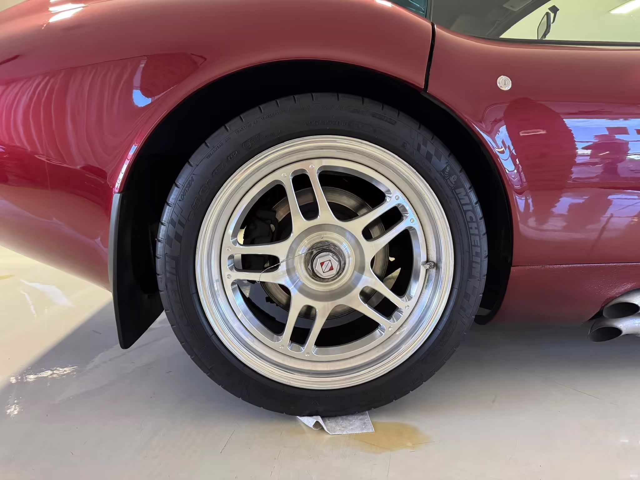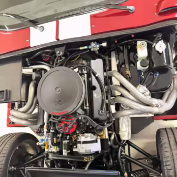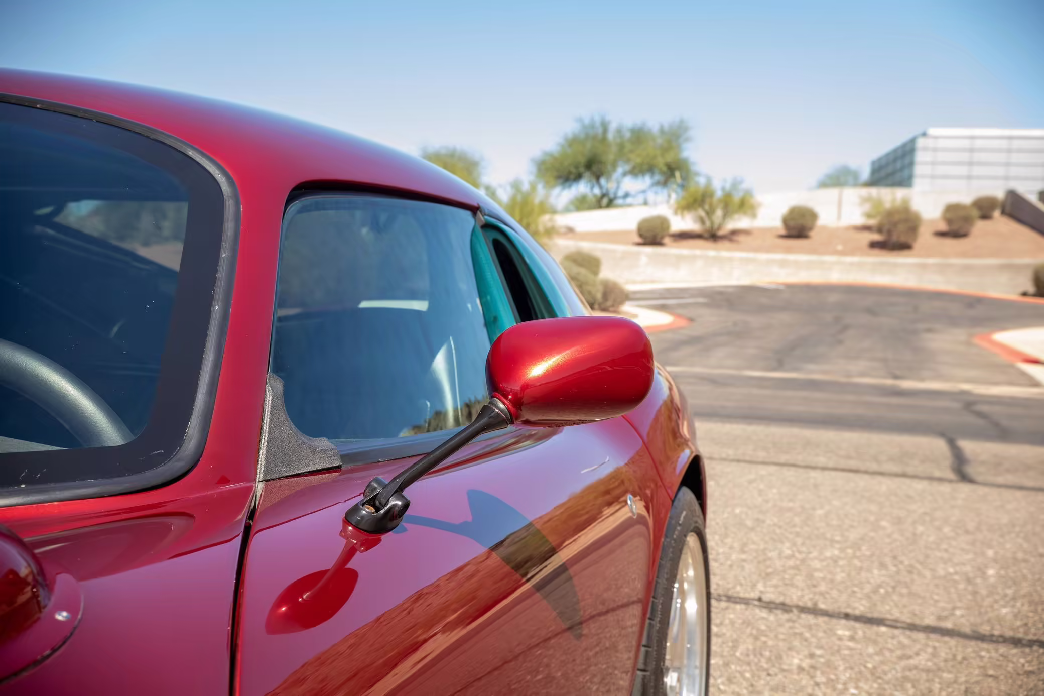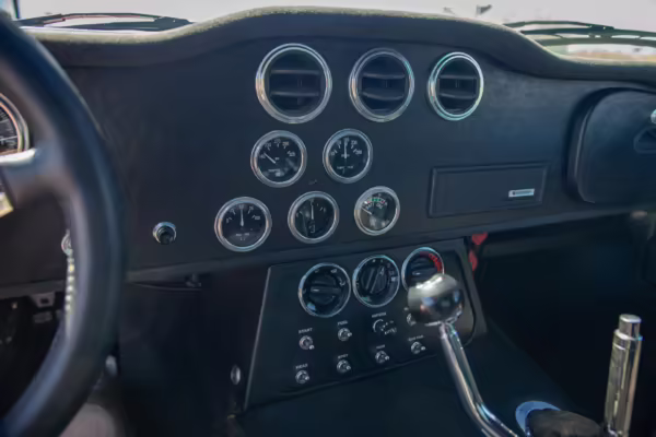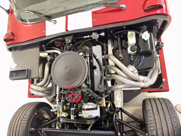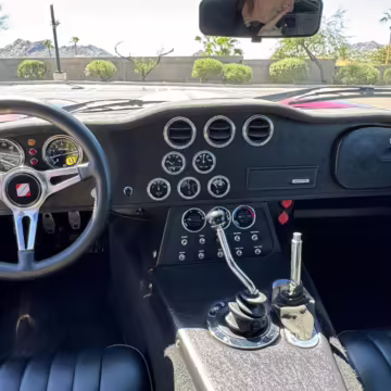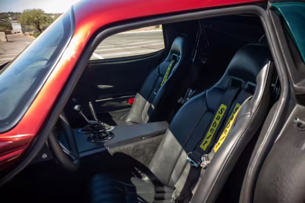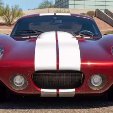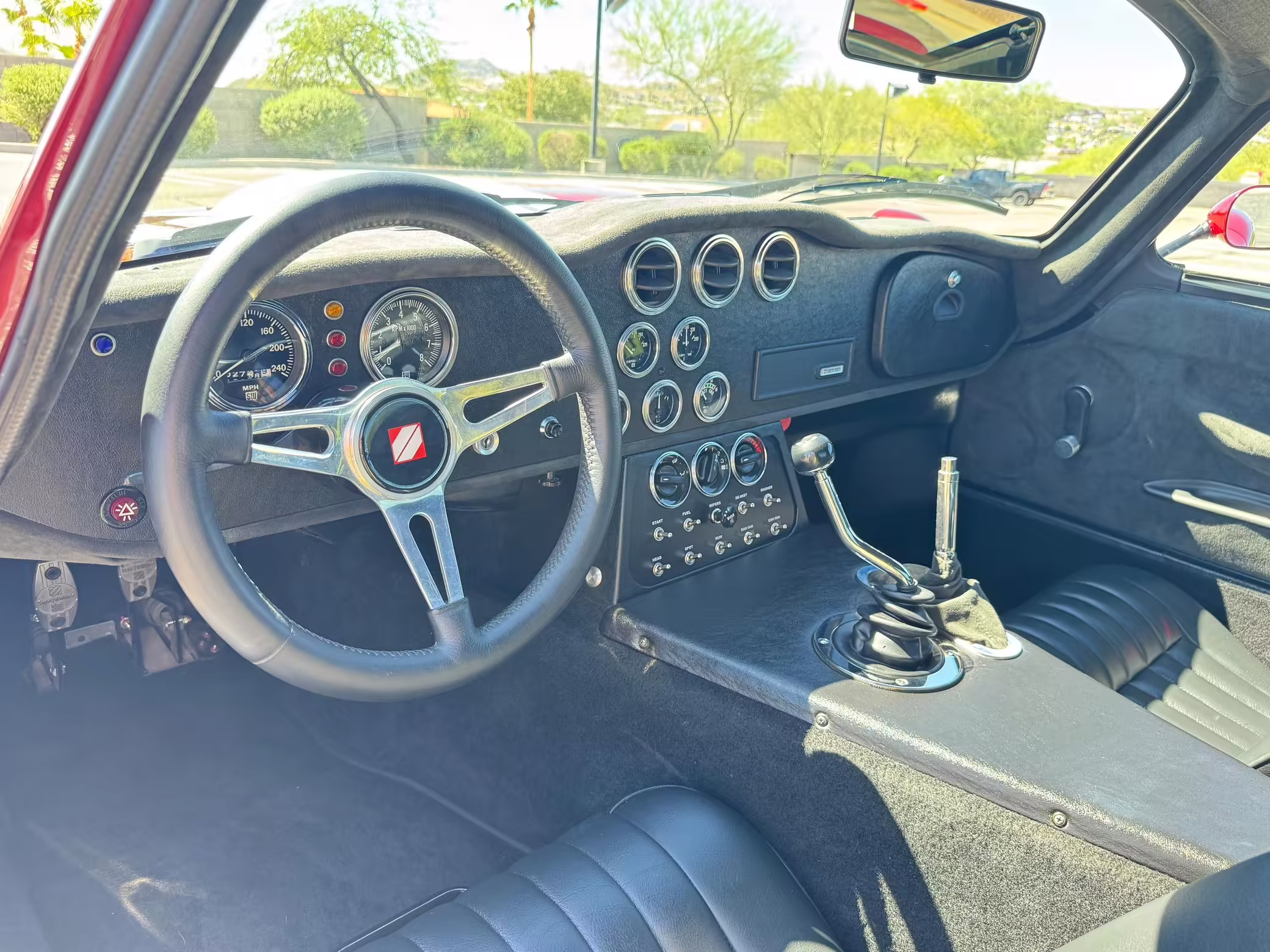 The Superformance Daytona Coupe is a thrilling sports car, boasting an analog driving character, beautiful classic styling, and a big and burly V8 – a revived classic in all the right ways. This particular Daytona Coupe is fitted with a 427-cubic-inch Windsor V8 paired with a 6-speed manual transmission. It also boasts a few desirable BRE upgrades, including a rear window, headlights and driving lights, and a set of 18-inch wheels. Plus, it’s finished in gorgeous Sunset Red, and it shows just 2,800 miles from new, further adding to the appeal.