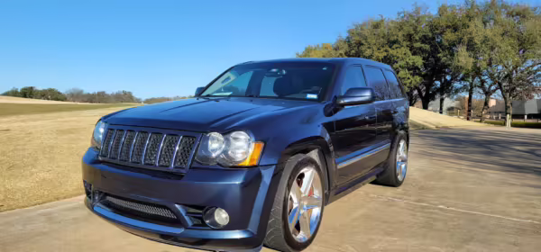 2009 Jeep Grand Cherokee SRT8, finished in Modern Blue Pearl with a black leather and Alcantara interior.