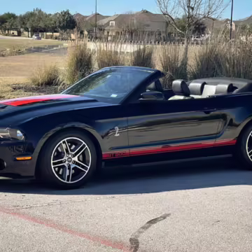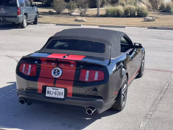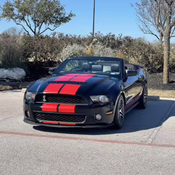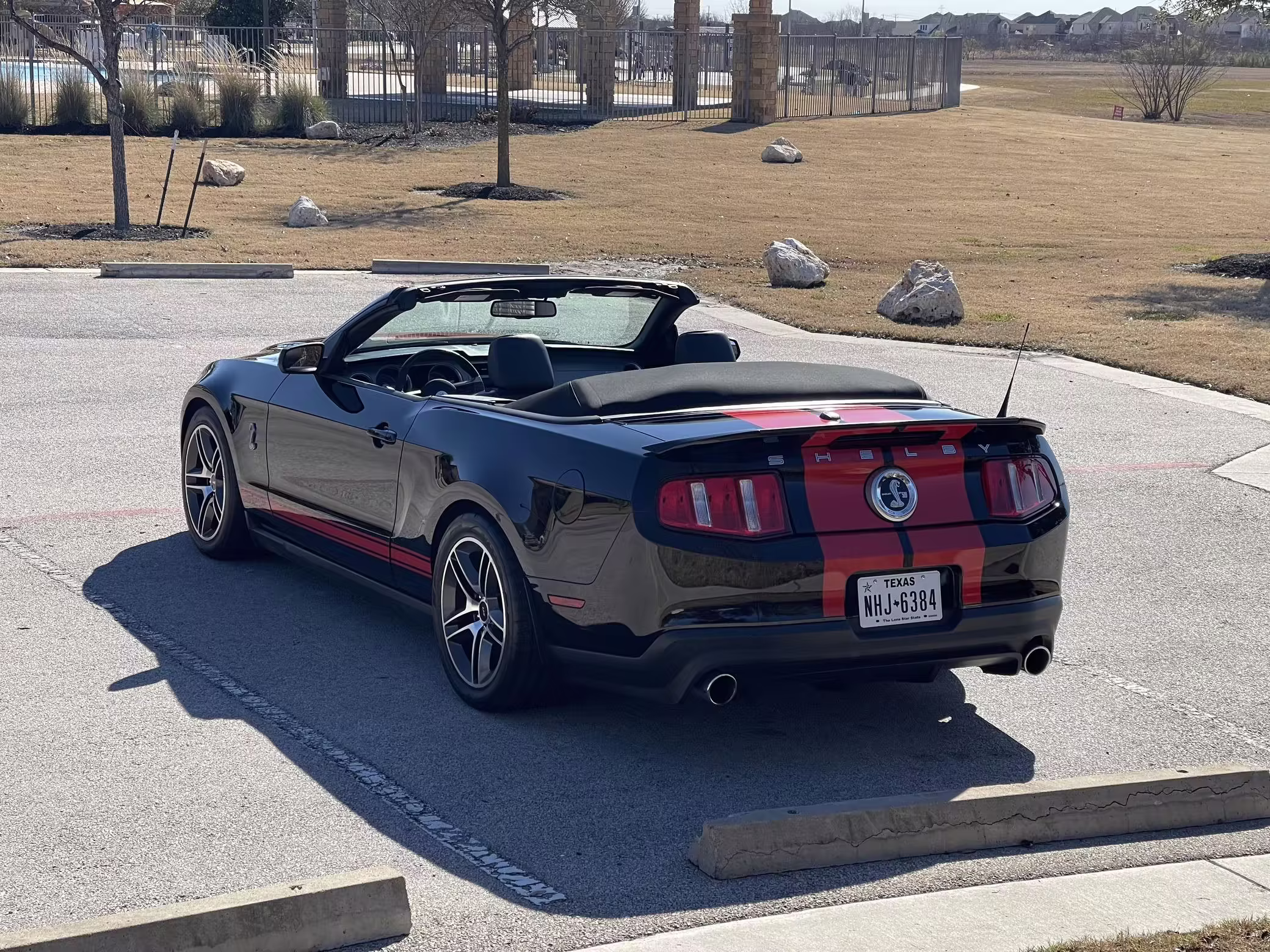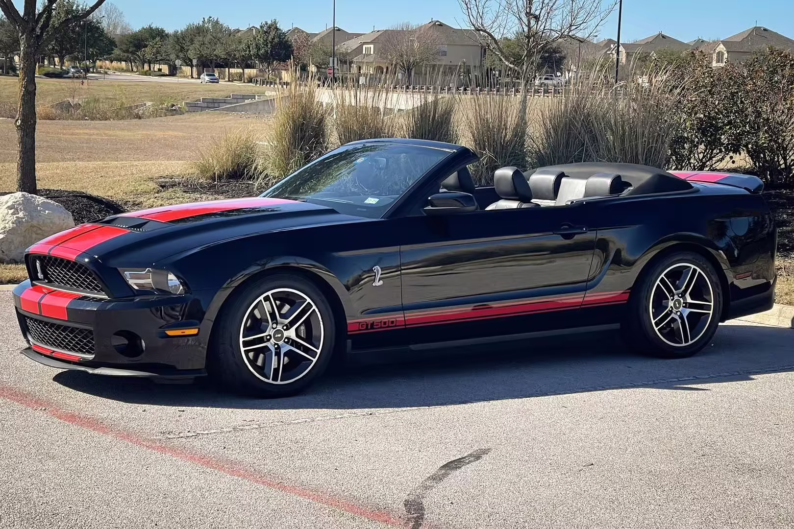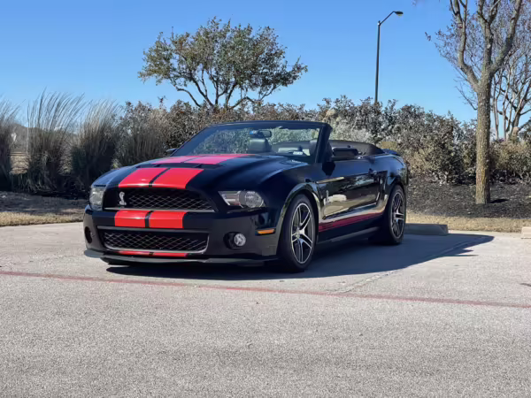 2010 Ford Mustang Shelby GT500 Convertible, finished in black with a black leather interior.