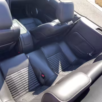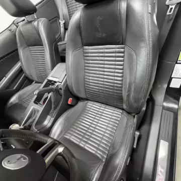 Sport bucket seats with racing stripe inserts and Cobra embroidery