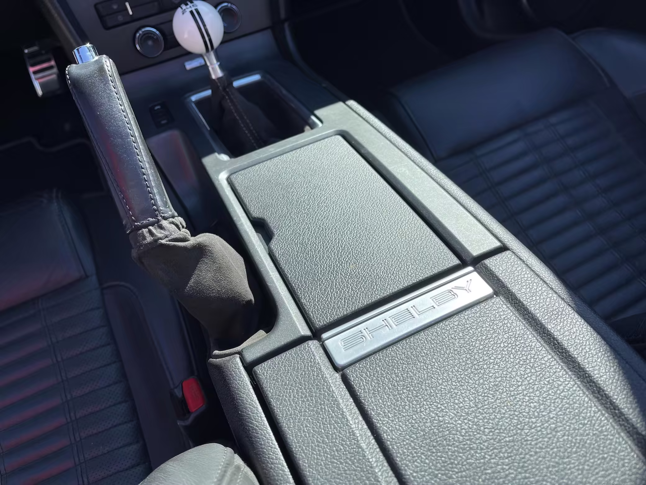 According to the window sticker pictured in the photo gallery, factory equipment on this GT500 includes an SVT-tuned suspension, limited-slip differential, Brembo front brakes, a Shaker 1000 audio system, and more. Modifications are limited to window tint.