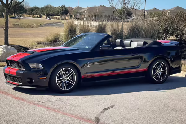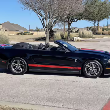 The Shelby GT500 variant of the “S197” generation of the Ford Mustang included upgrades over the GT model like a supercharged V8 engine, a unique aesthetic, and durability enhancements. Most GT500 models of this era were coupes, but this is the less common convertible version.