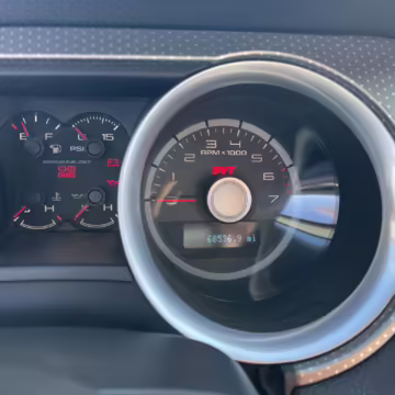 This Shelby GT500 is a handsome car finished in a nice color scheme – black with striking red racing stripes down the center. It’s a limited-production car, with a numbered certificate of authenticity, and it touts an accident-free history report. Mostly, though, it has big power: the supercharged V8 makes 540 horses and over 500 pound-feet of torque, and it’s controlled with a 6-speed manual transmission.
