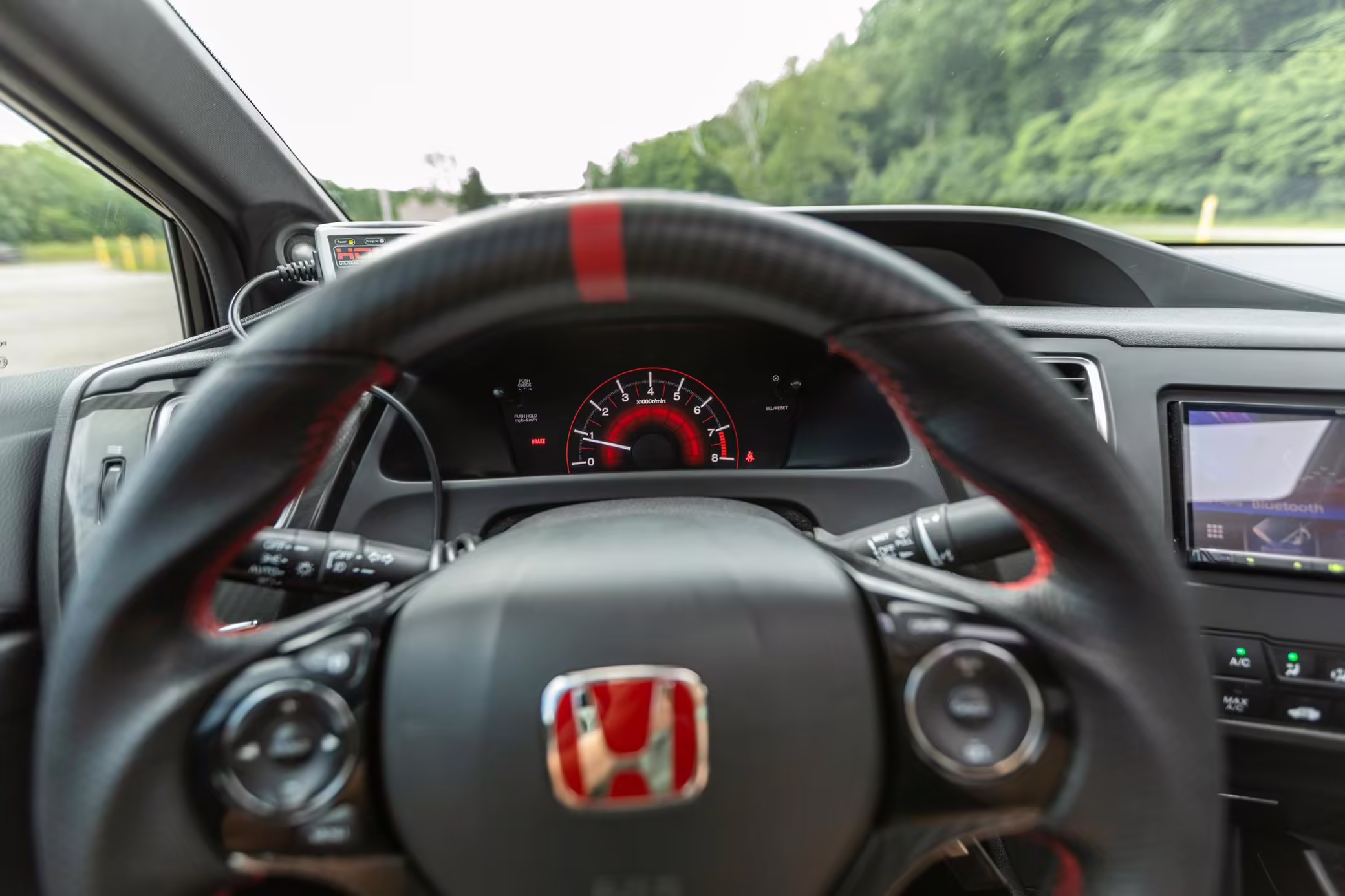 Factory equipment on this Civic includes 17-inch wheels, a helical limited-slip differential, fog lights, a power sunroof, cloth upholstery, aluminum pedals, a rearview camera, and more as detailed below.