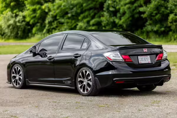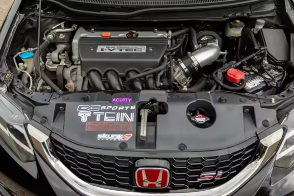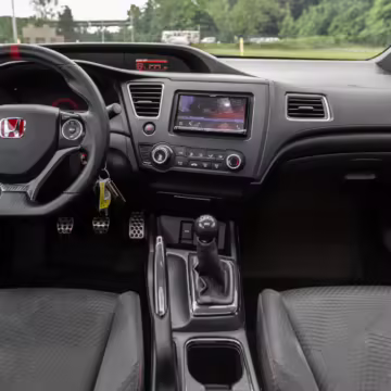 Introduced in 2011, the ninth-generation FB/FG Civic was smaller and lighter than outgoing models, though it featured more passenger room and better fuel economy. The Si variant was available as a coupe and sedan, and it was equipped with a new, larger, and more powerful engine than standard models as well as upgraded sway bars and a more rigid chassis. It boasted a 7,000 rpm redline, and its only transmission option was a 6-speed manual with a helical limited-slip differential.