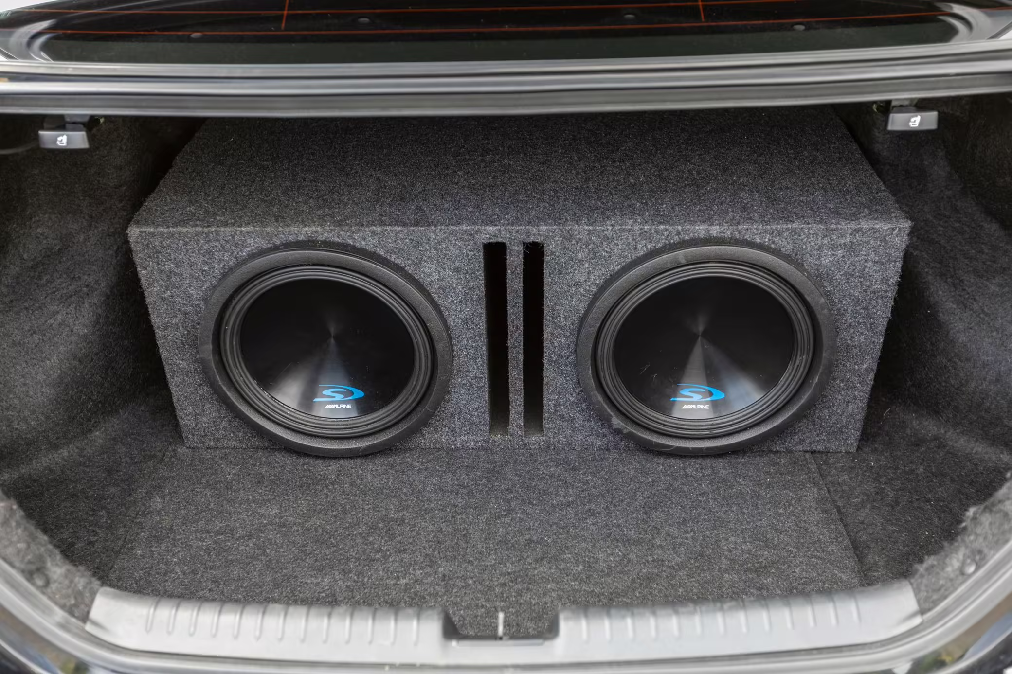 2 12-inch trunk-mounted Alpine subwoofers