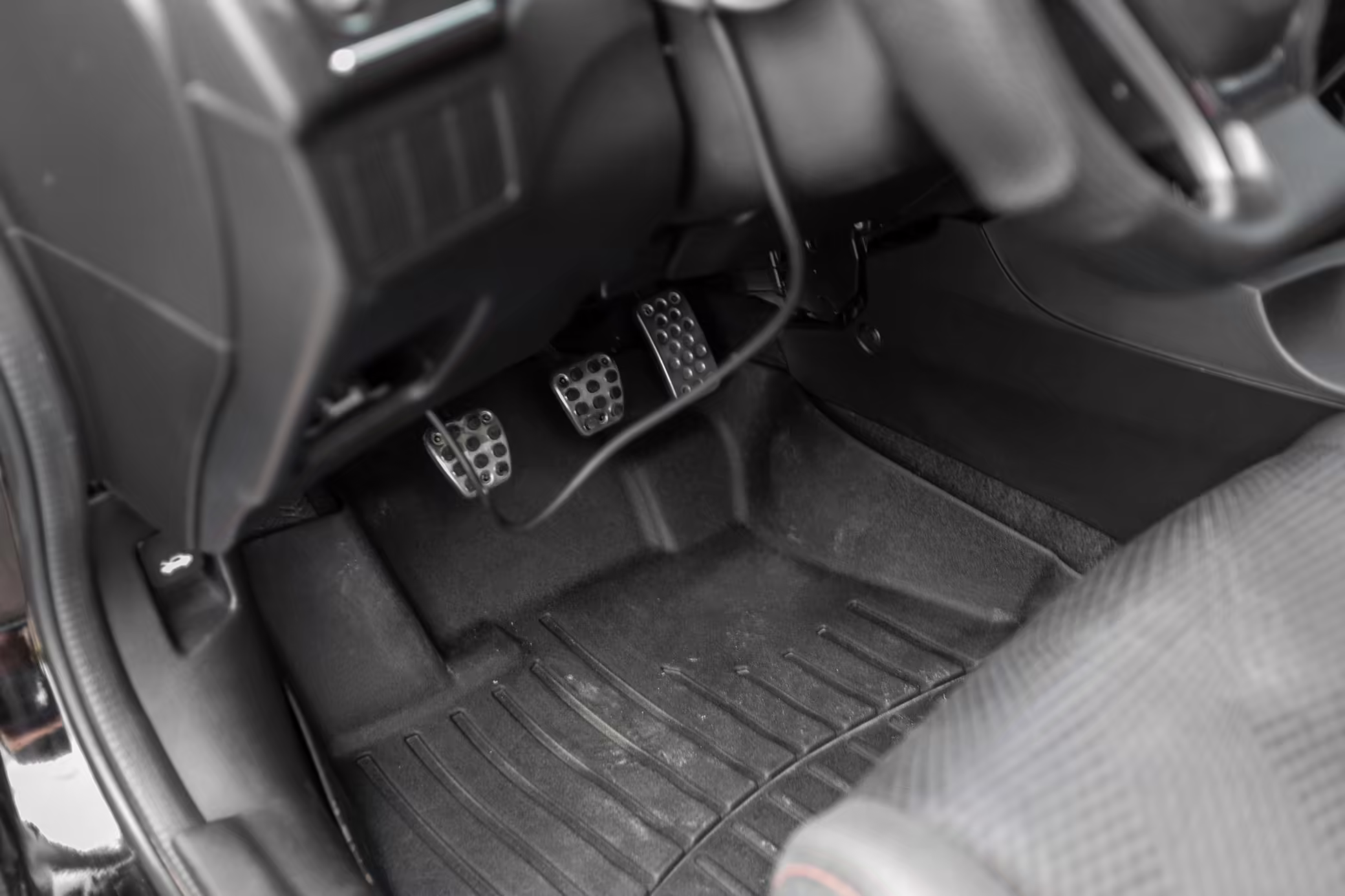 Flat-bottom leather-wrapped steering wheel