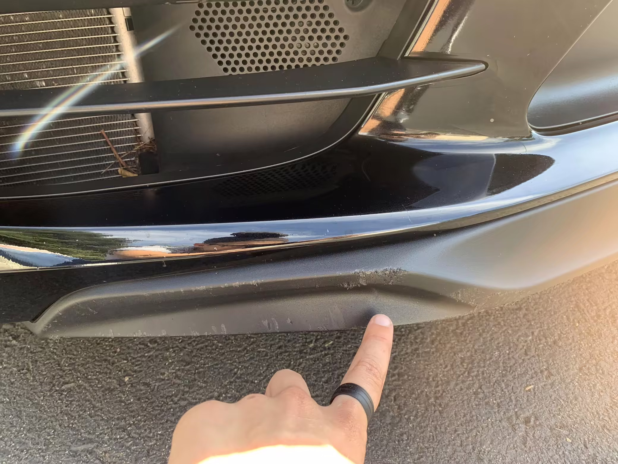 Damage to plastic front splitter