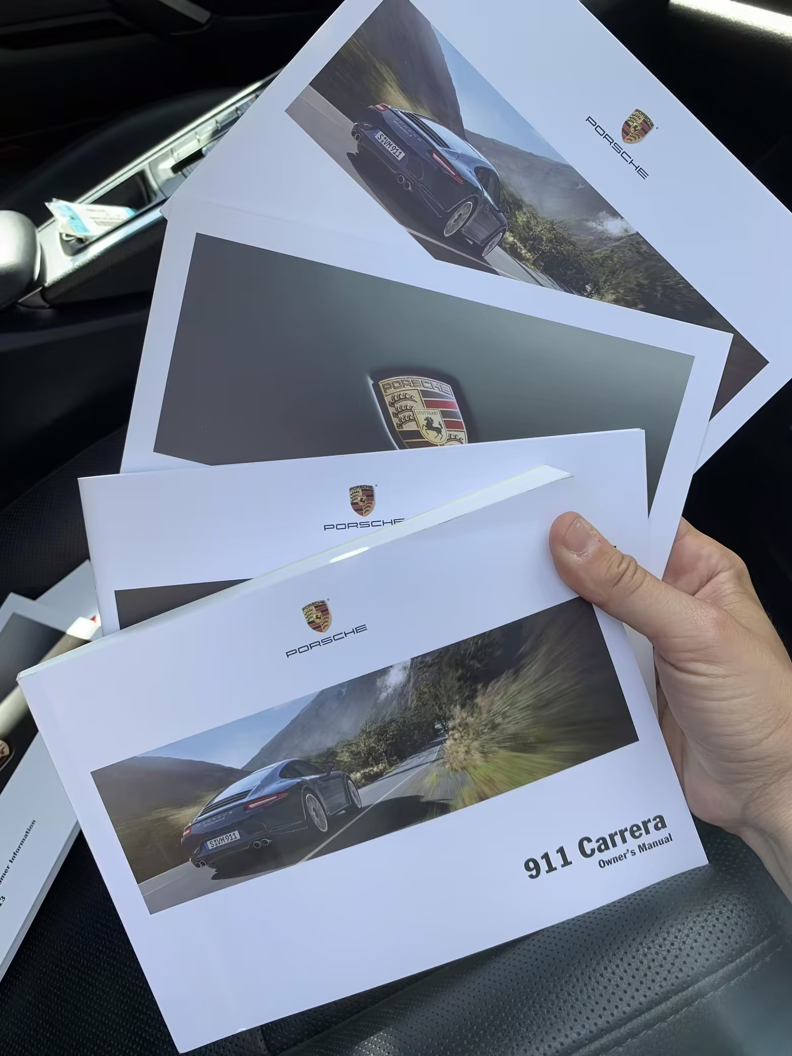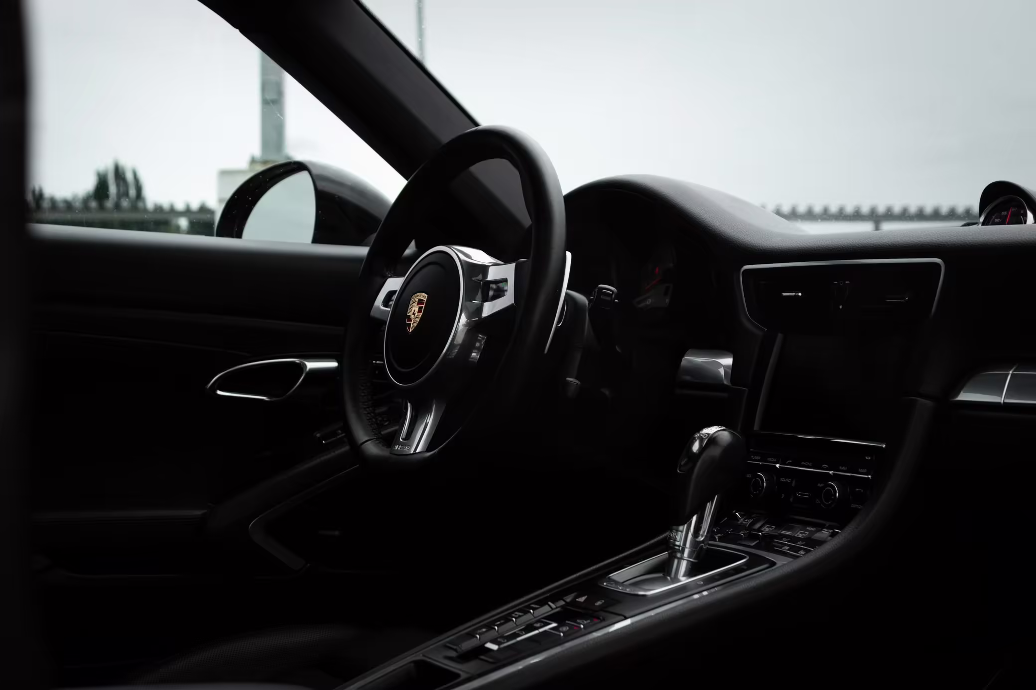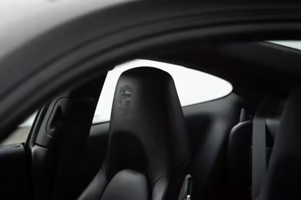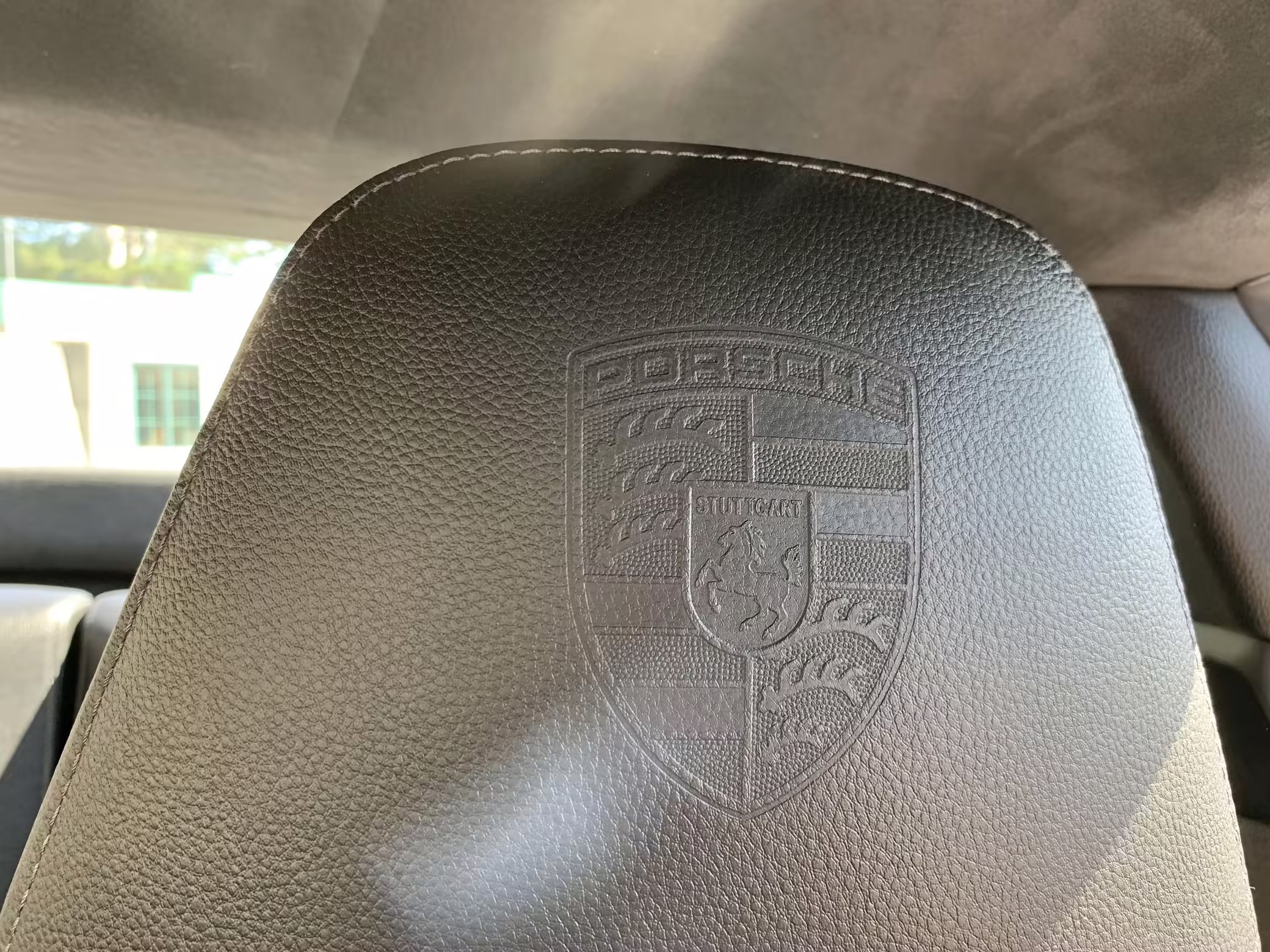 Porsche crest embossed headrests