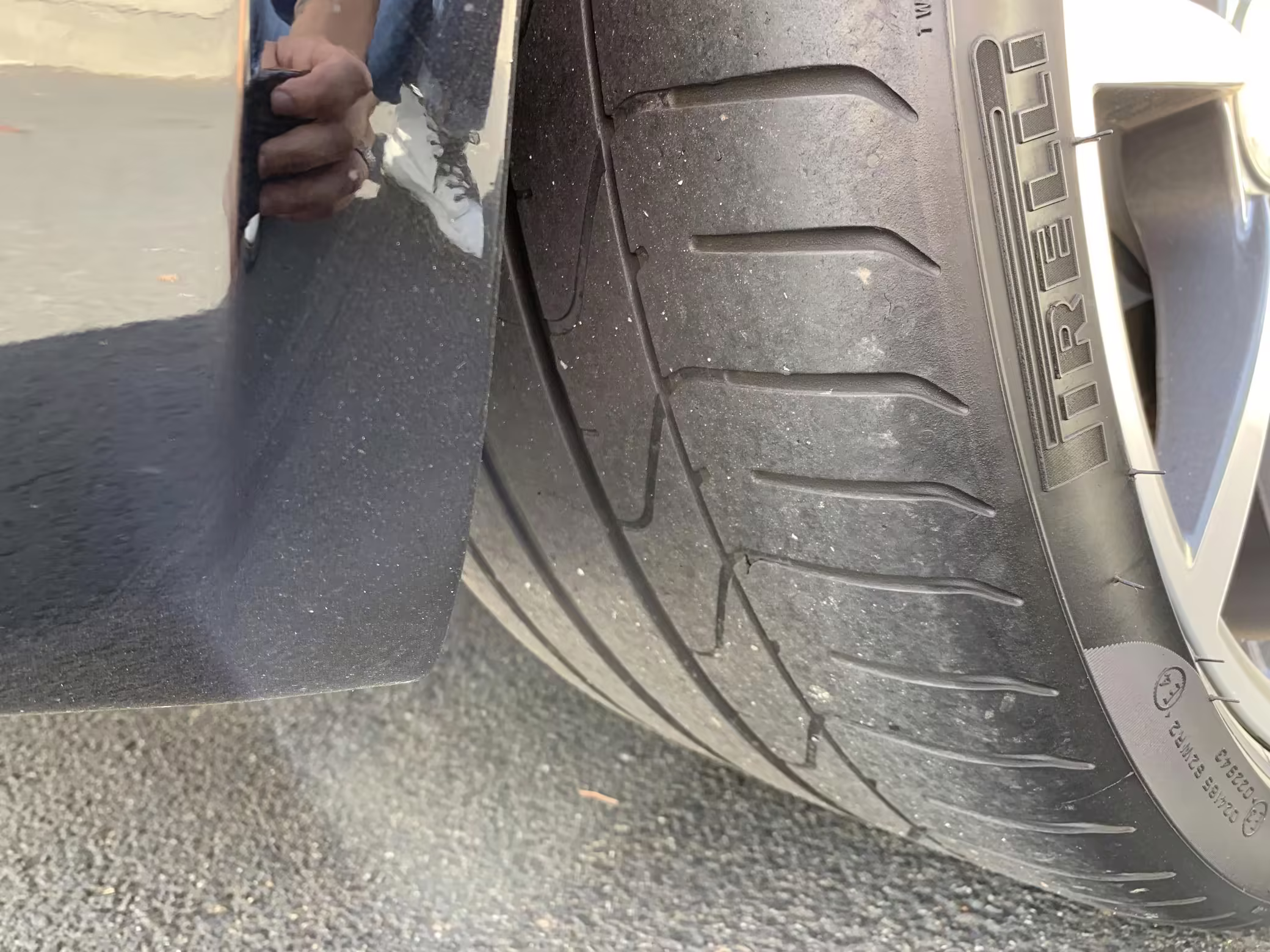 Scratch on left front wheel