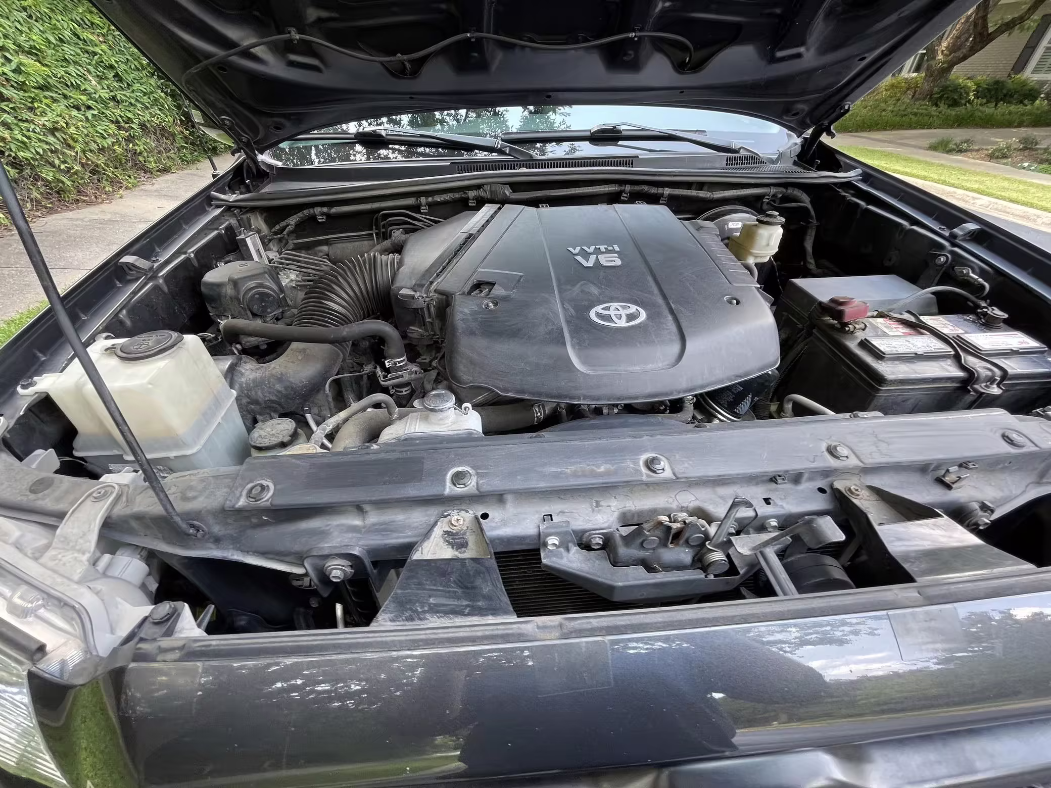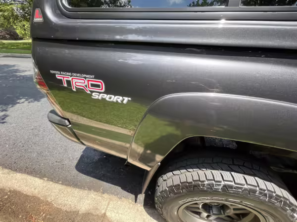 - Equipment includes the TRD Sport Extra Value Package (hood scoop, color-keyed bumpers, side mirrors, and door handles, overhead console, leather-trimmed steering wheel, Entune touchscreen audio system, bed-mounted inverter), the Tow Package (tow hitch and wiring provisions), a limited-slip rear differential, tube steps, cloth upholstery, air conditioning, an Entune touchscreen audio system, and more as detailed below.