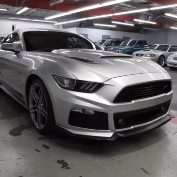 2015 Ford Mustang GT Roush Stage 2, finished in Ingot Silver Metallic with an Ebony interior.