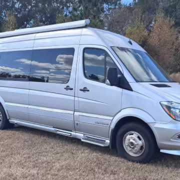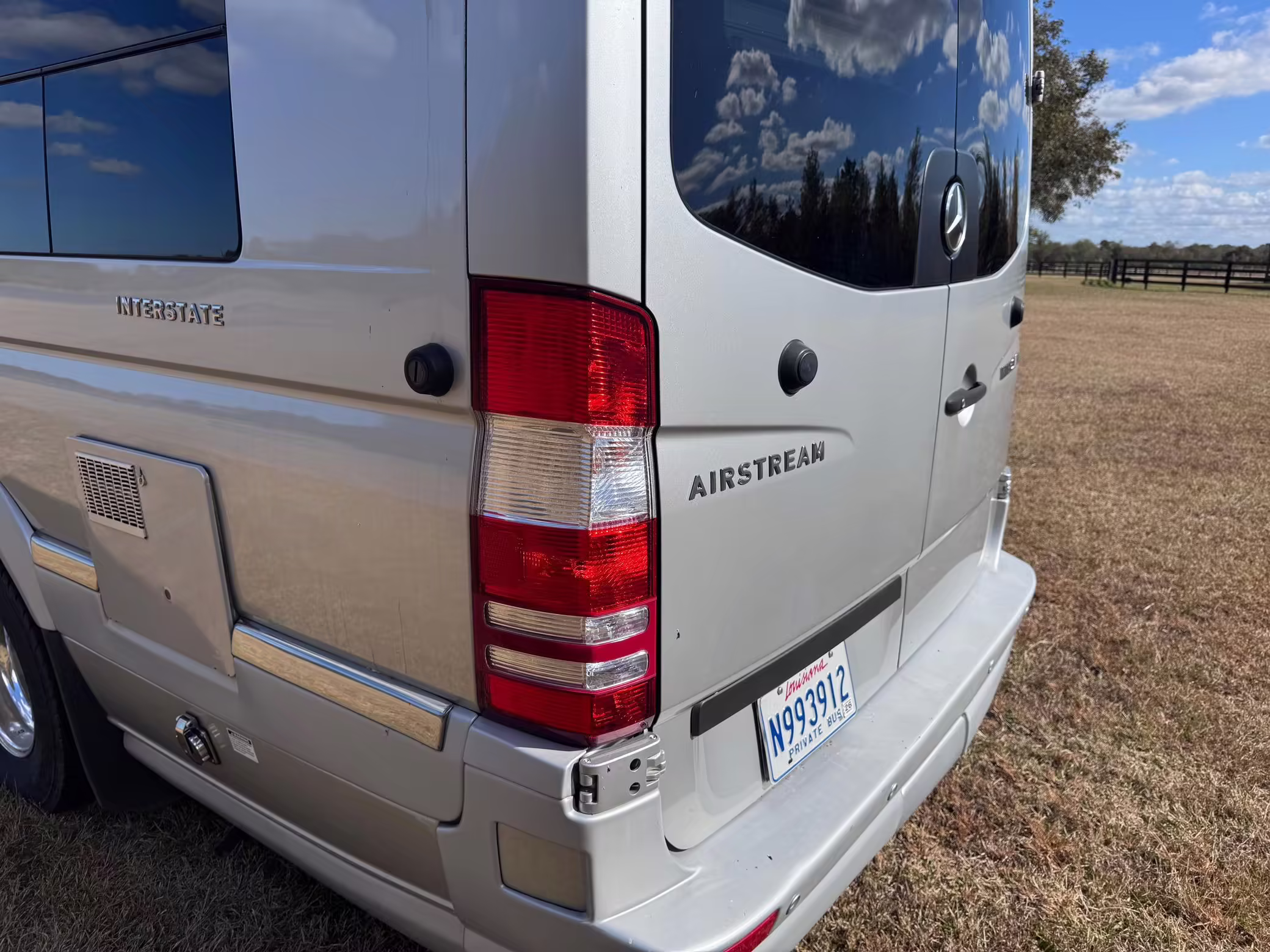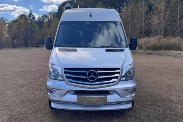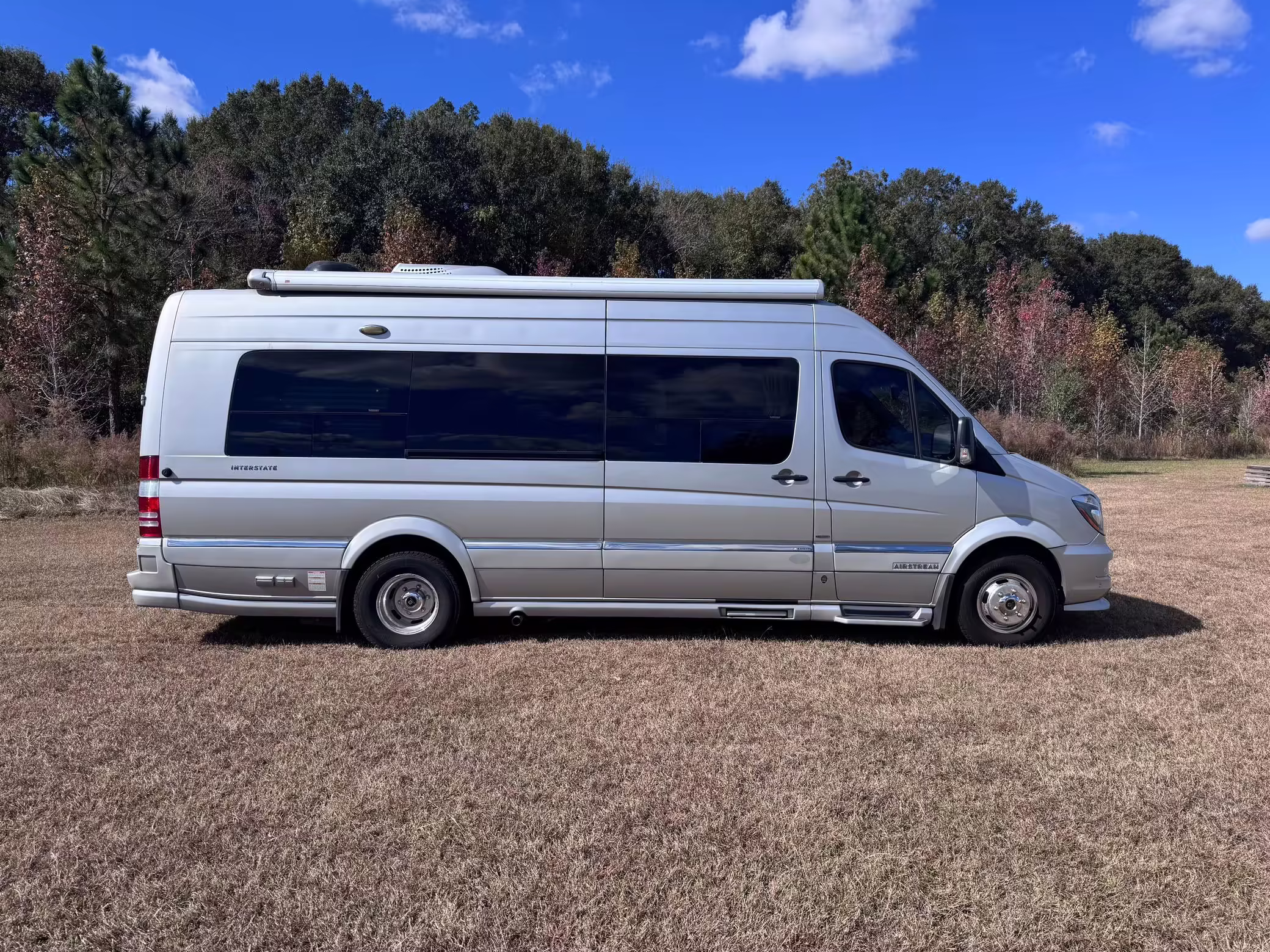 2015 Mercedes-Benz Sprinter 3500 Airstream Interstate, finished in Bright Silver Metallic with a black interior.