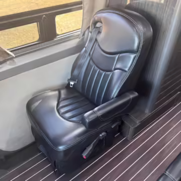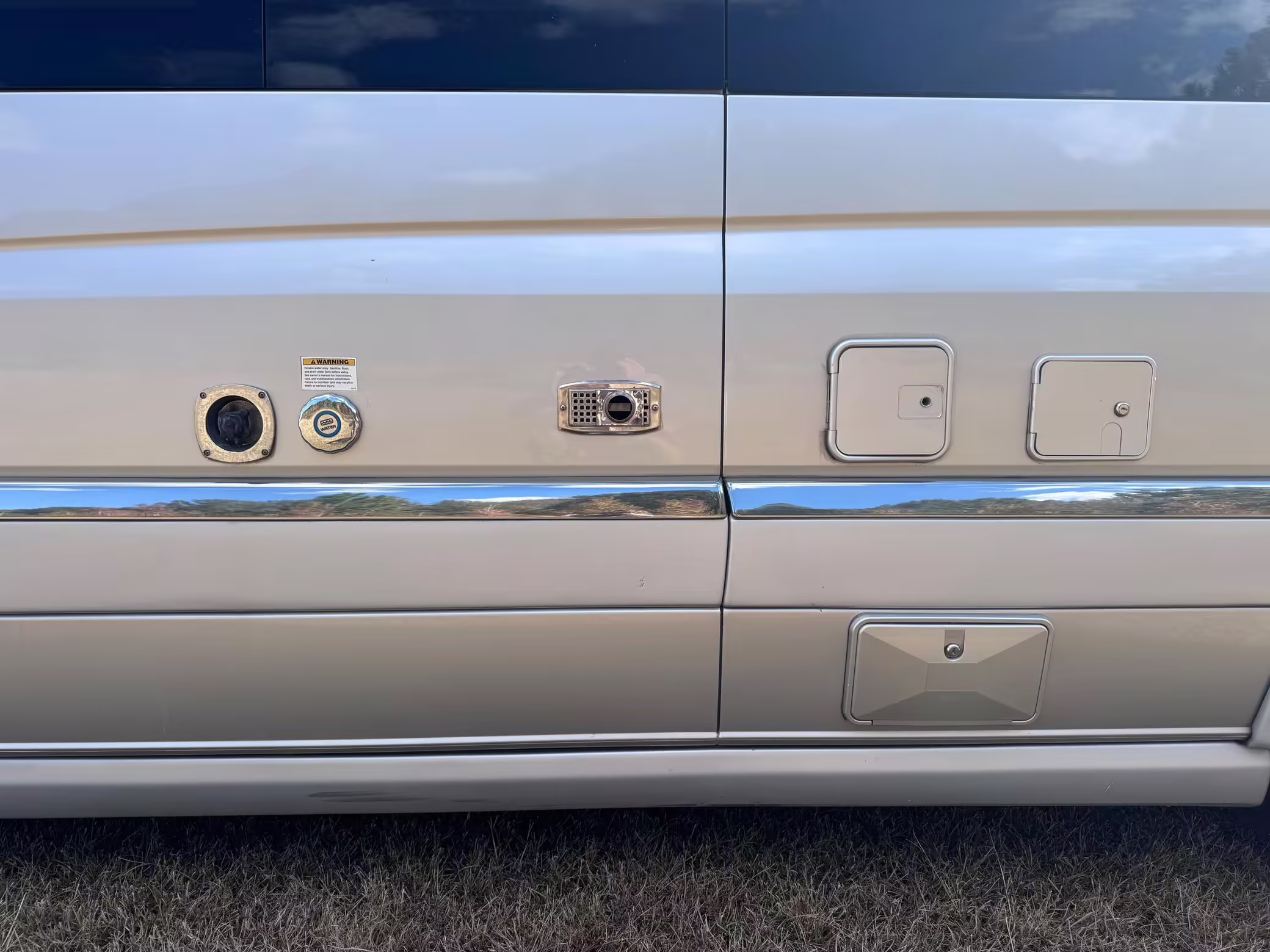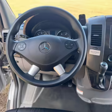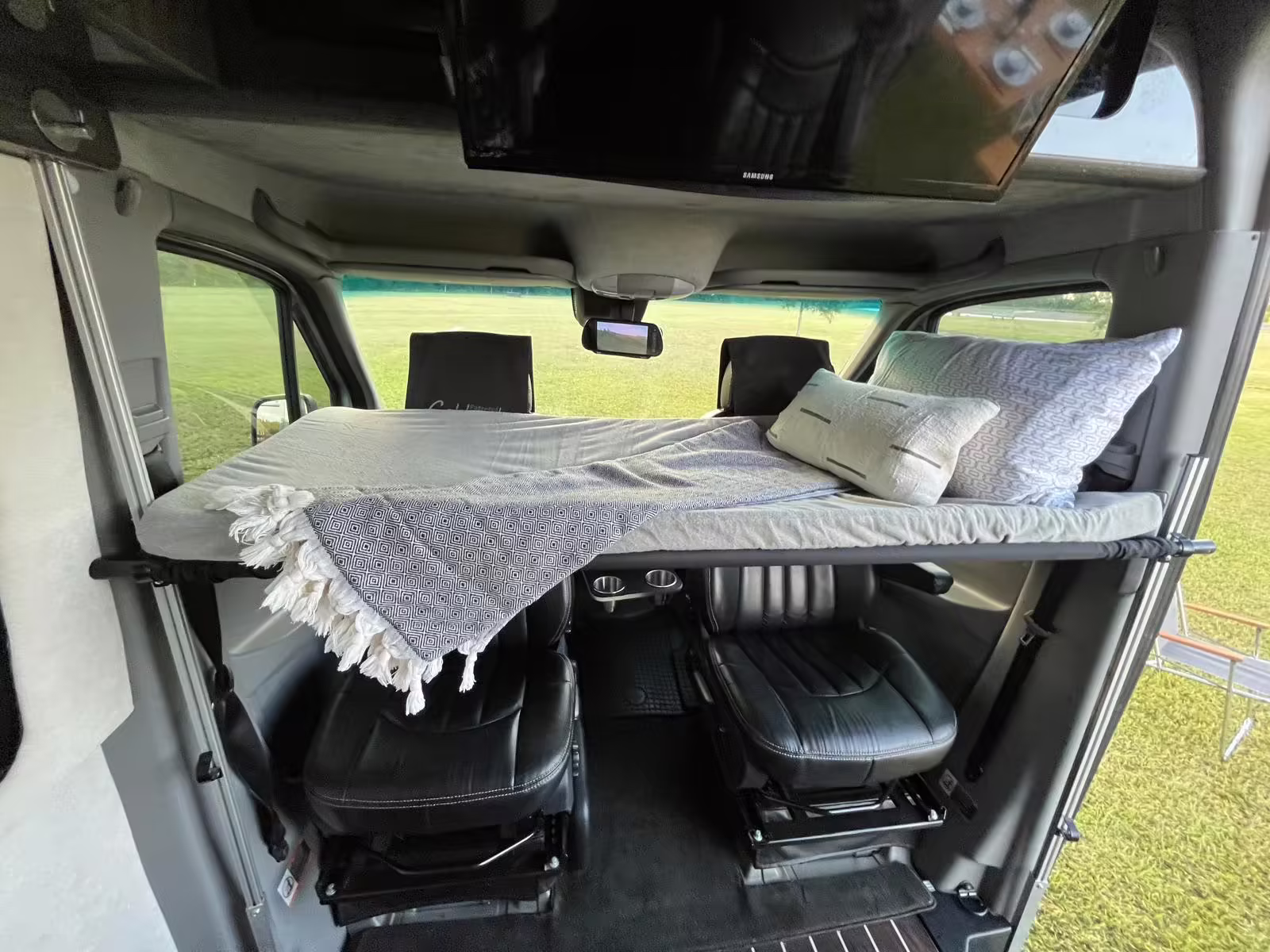 This van is based on the sturdy Sprinter 3500 chassis, and it features everything you need for a comfortable road trip: it seats nine and sleeps three, and it boasts a kitchen, a bathroom (with a shower), and even two televisions!