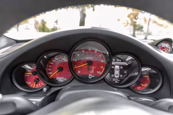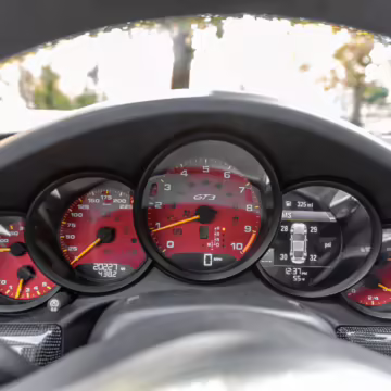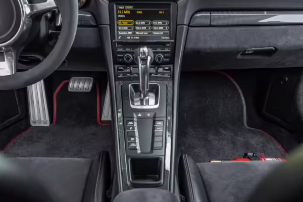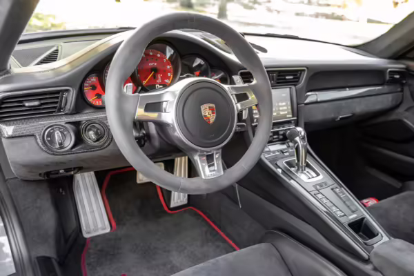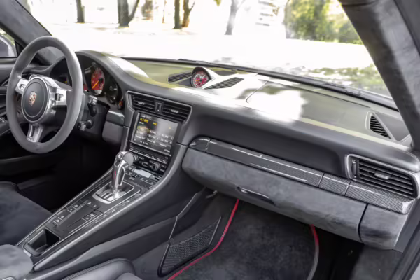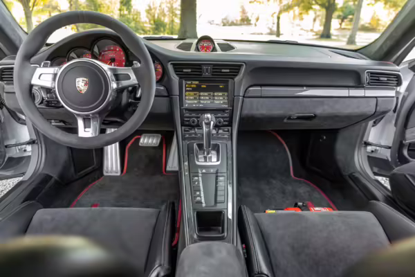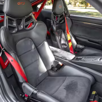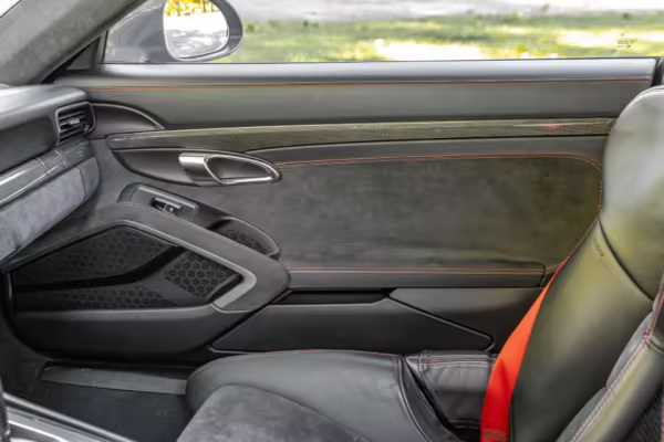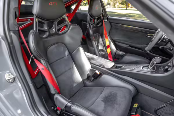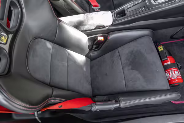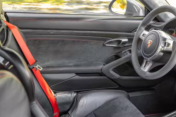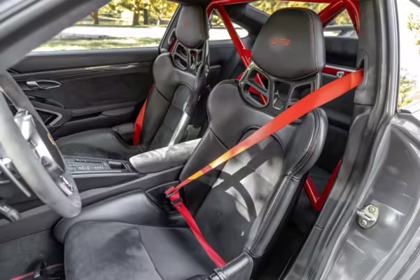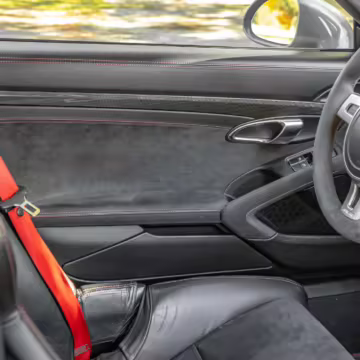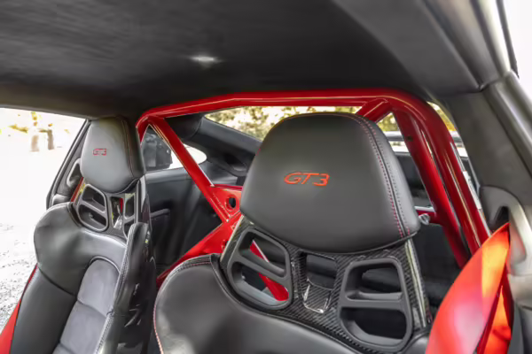 Being a track-focused car, it doesn’t offer the same level of comfort and luxury as the road-oriented 911s, but that’s entirely the point here. In addition to the standard GT3 fare – which includes a host of excellent equipment – this particular car features modifications including a body wrap, an exhaust upgrade, and a roll cage.