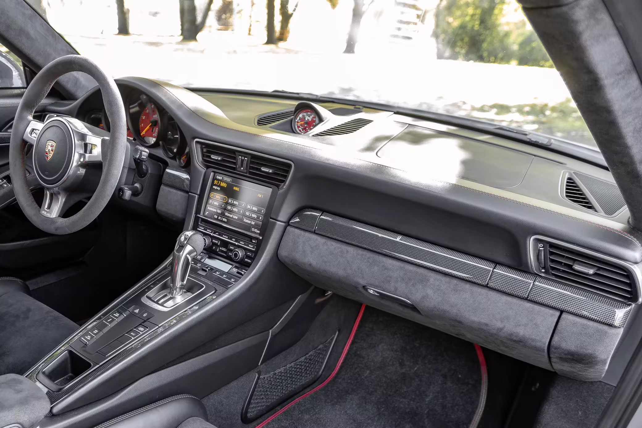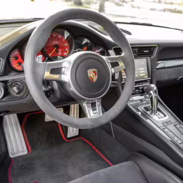 Factory equipment on this GT3 includes the Sport Chrono Package, Carbon Fiber Interior Package, the Sound Package Plus, a dry sump oiling system, Porsche Active Suspension Management (PASM), rear axle steering, lightweight bucket seats, and more detailed below.