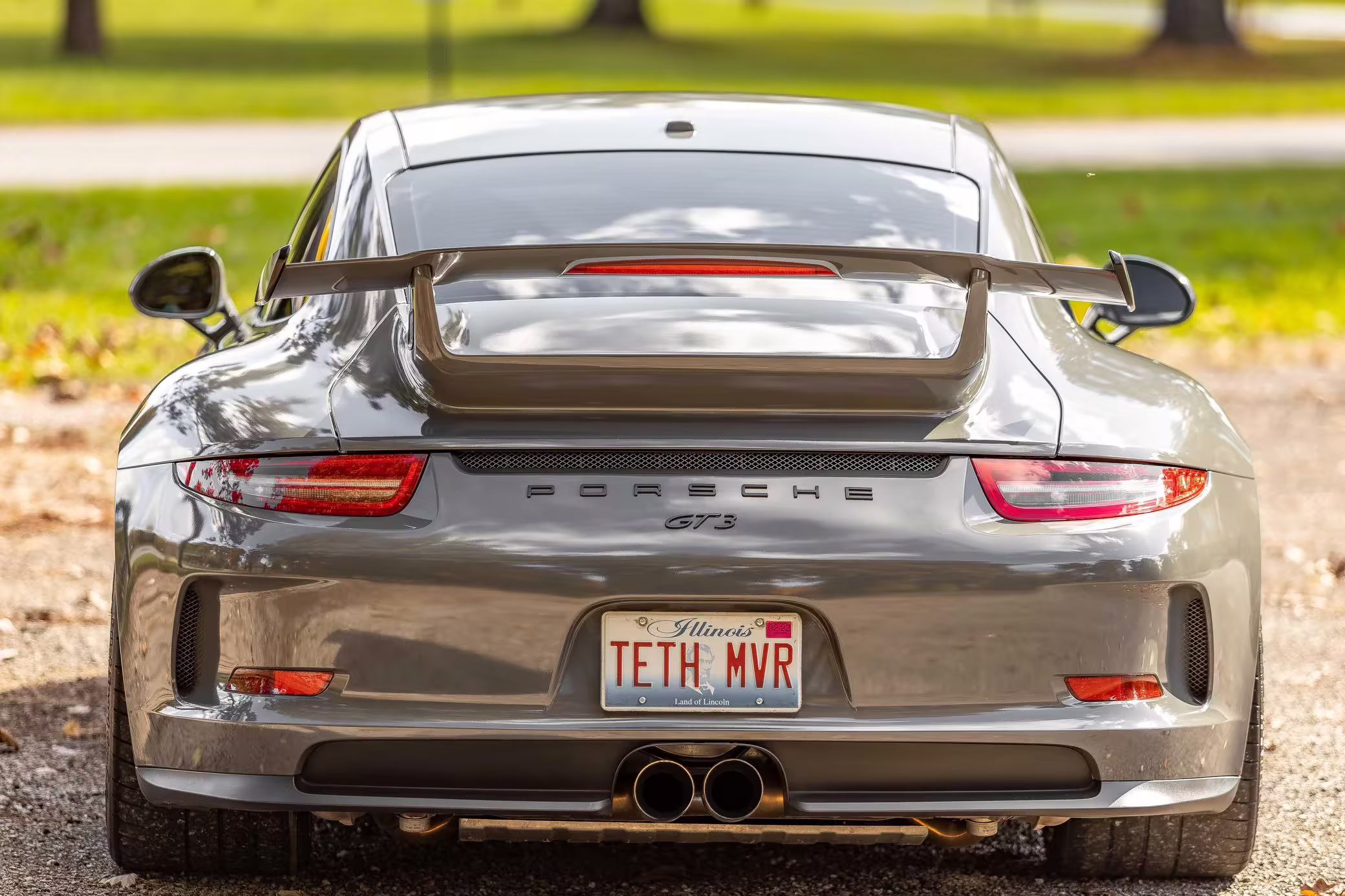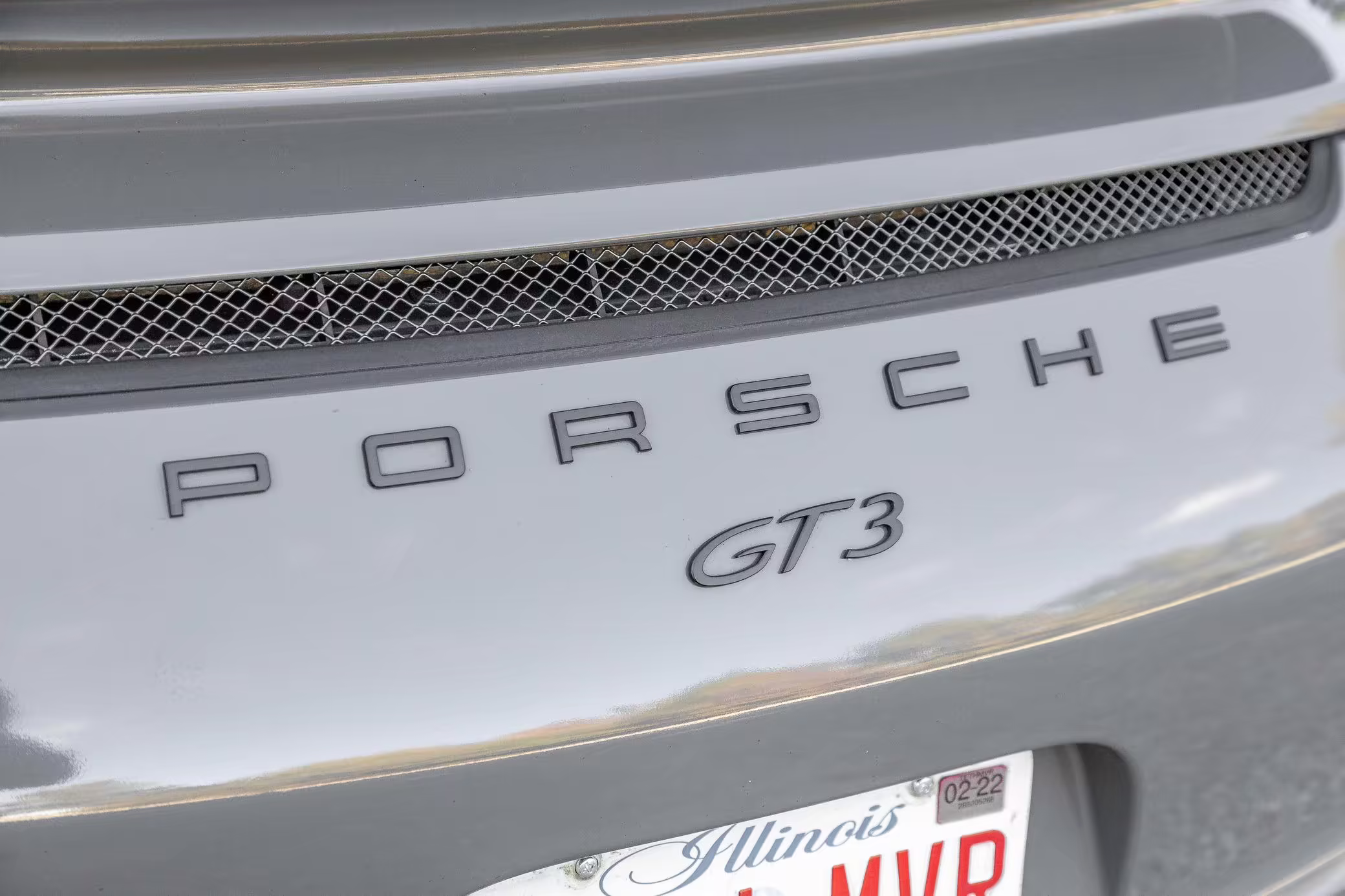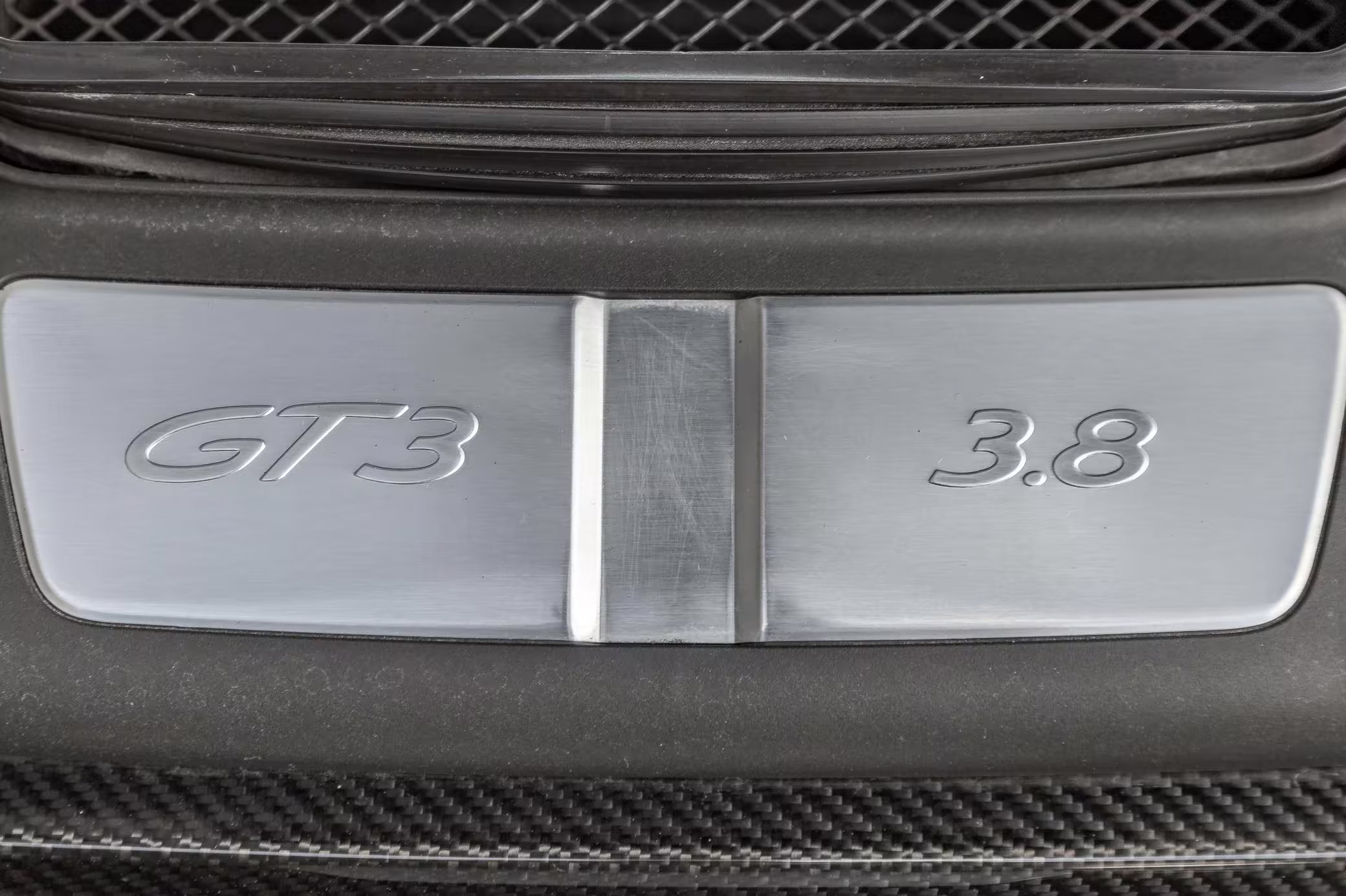 Modifications to this GT3 include a vinyl-wrapped exterior, a half roll cage, and an aftermarket exhaust.