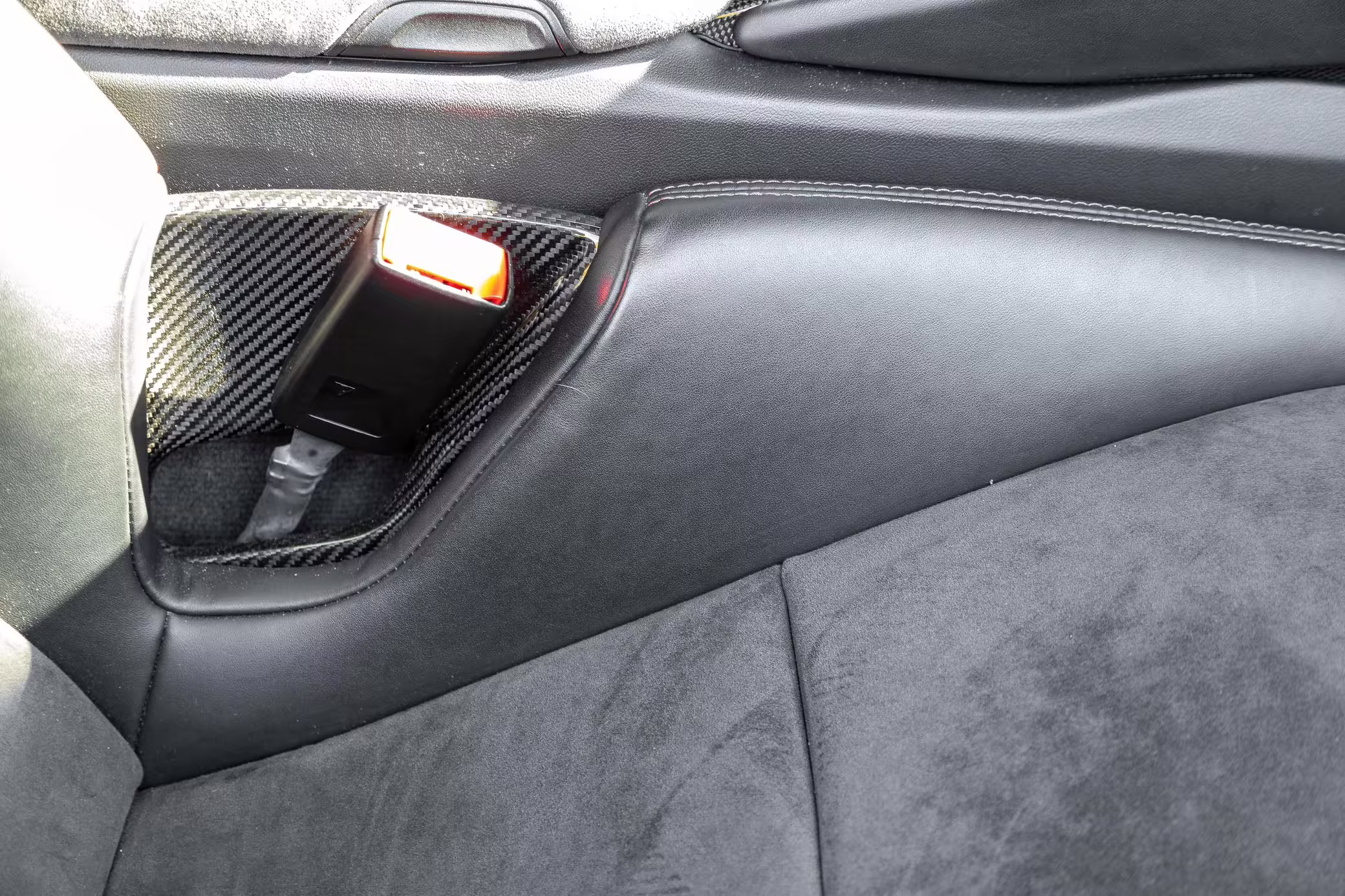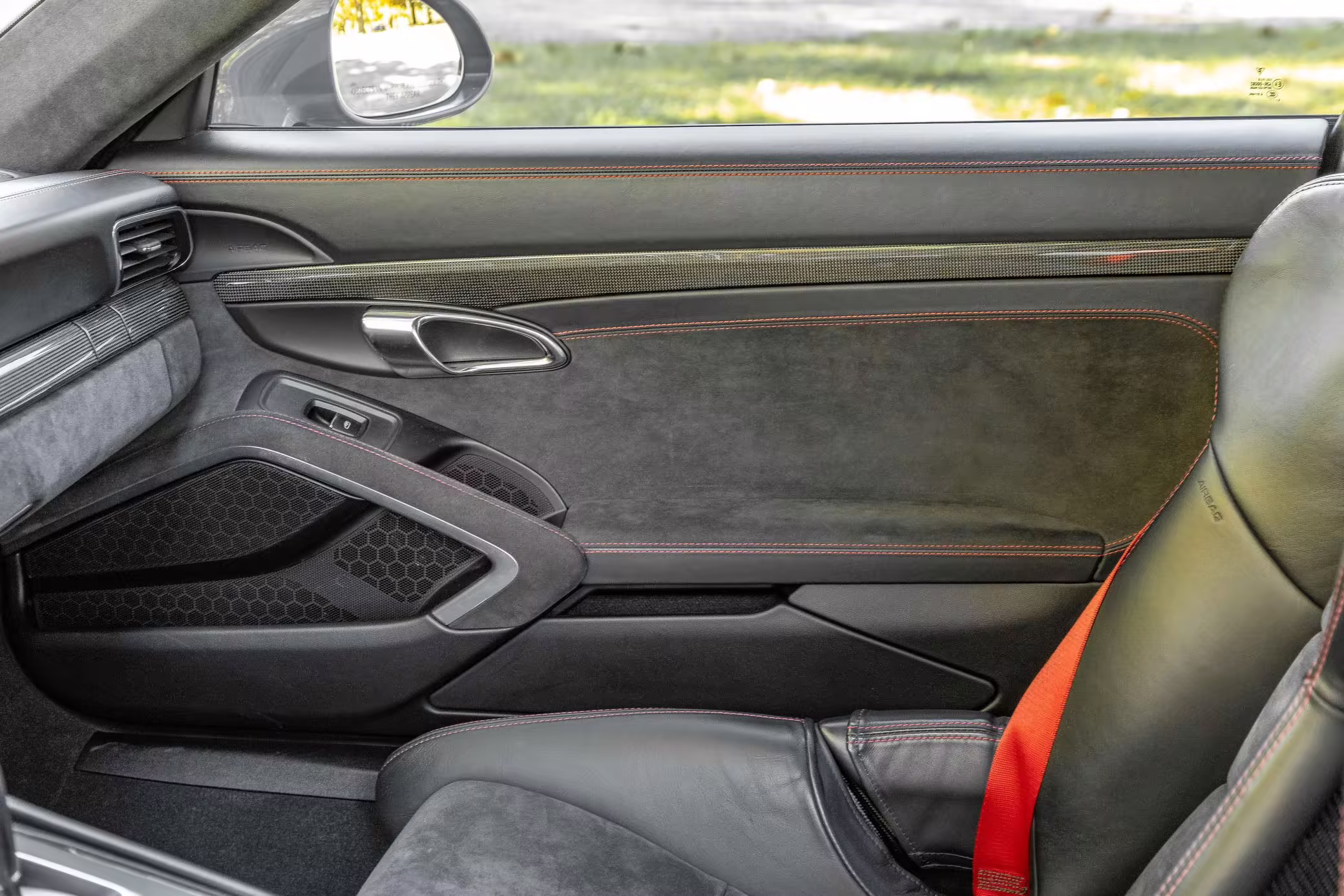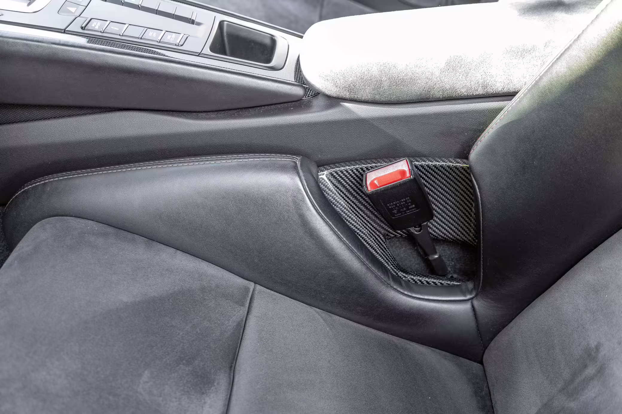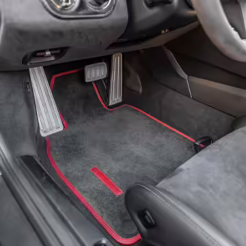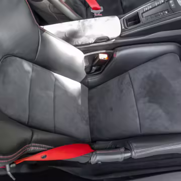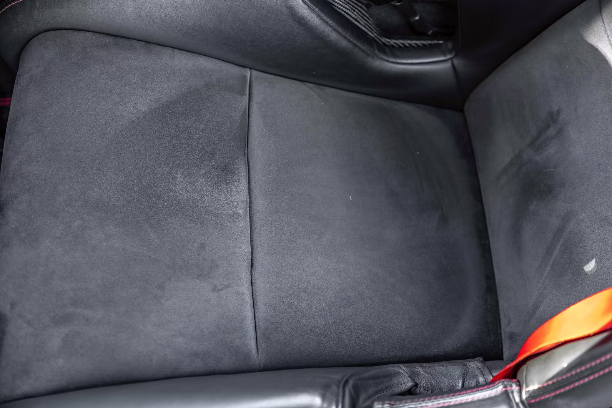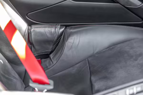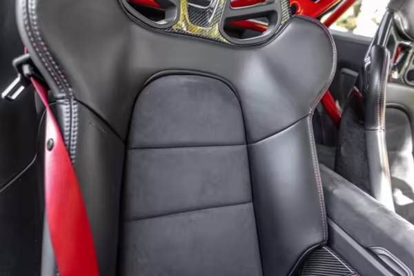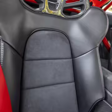 Leather/Alcantara upholstery with contrast red stitching