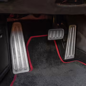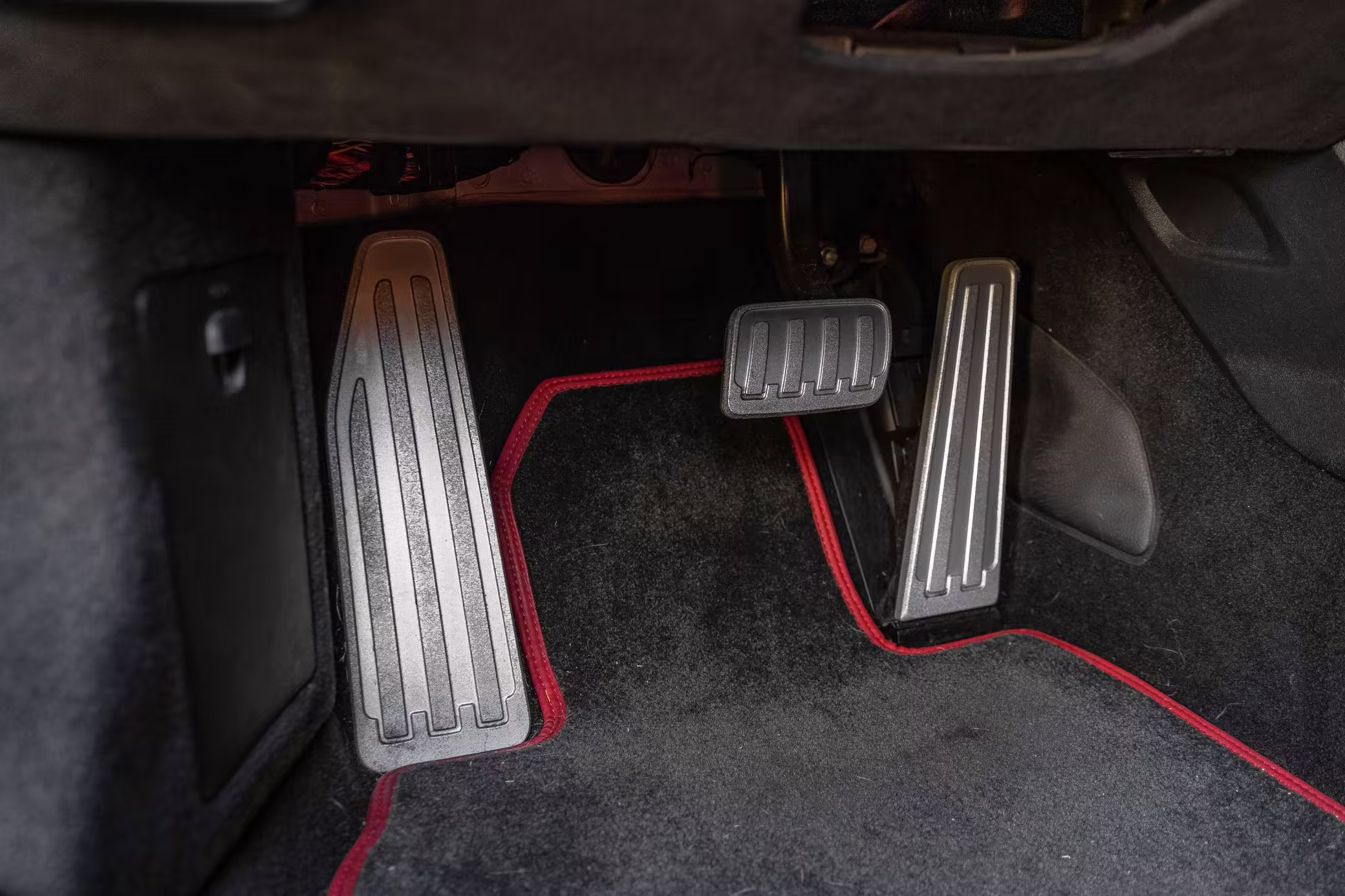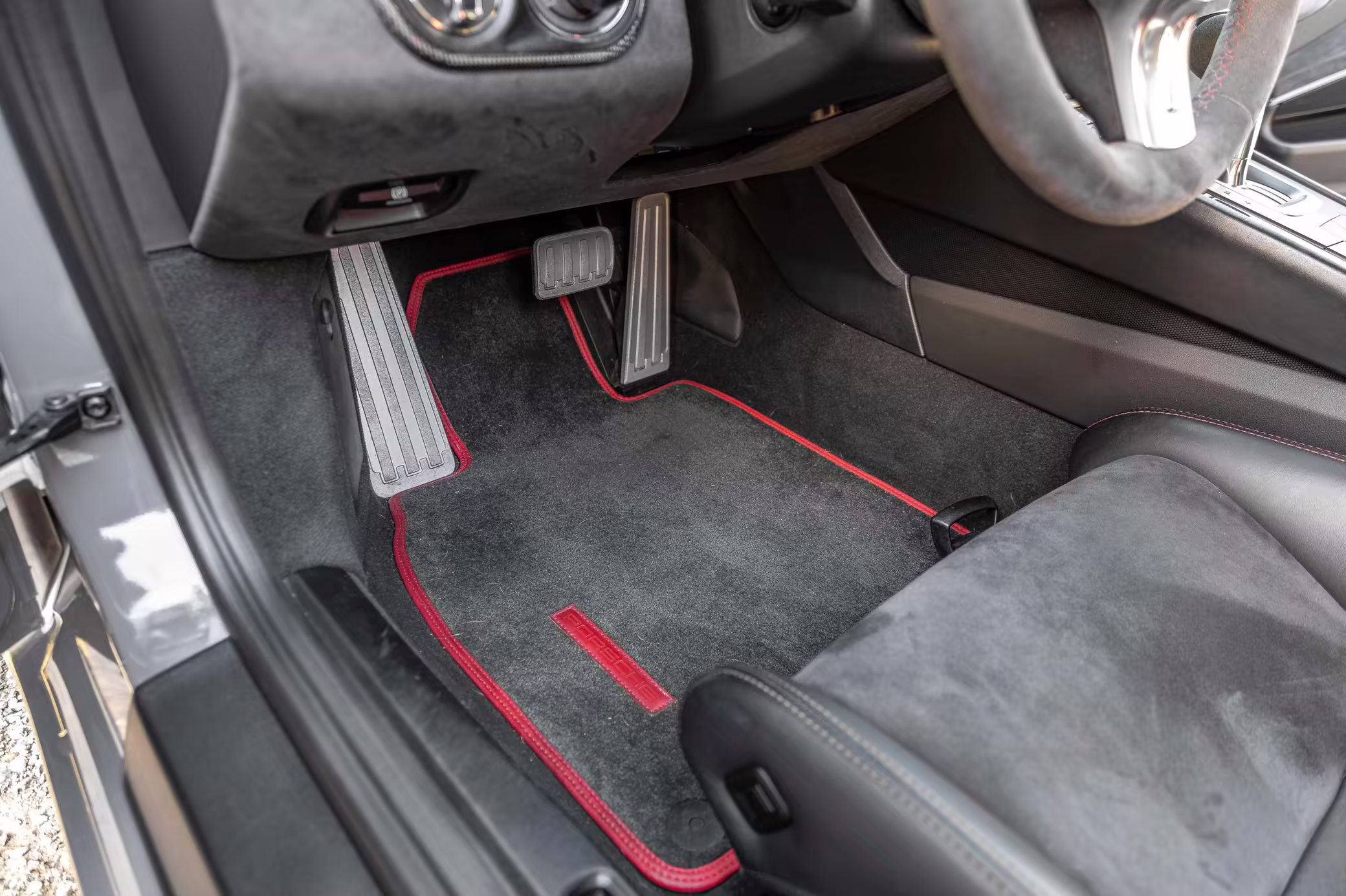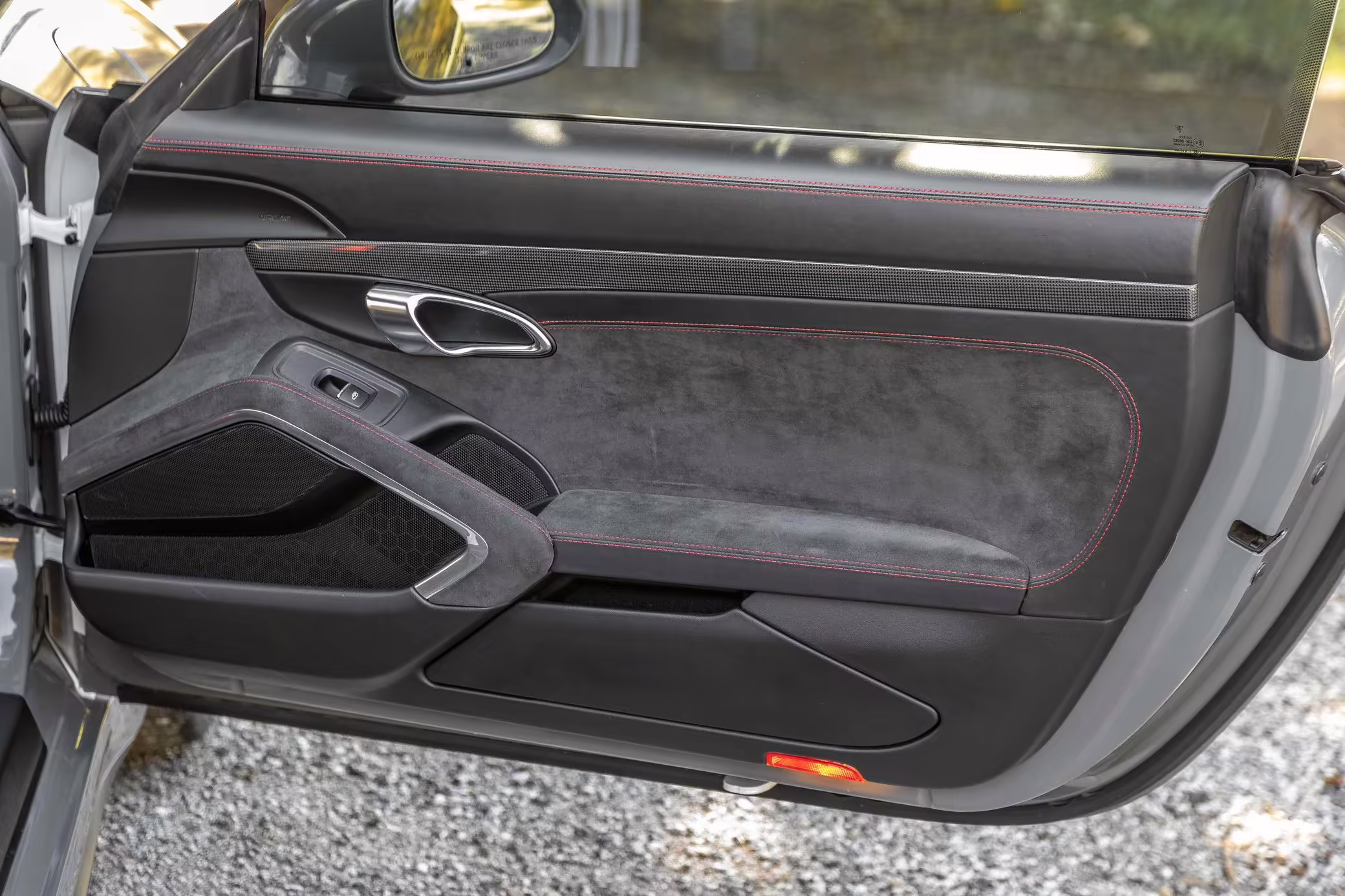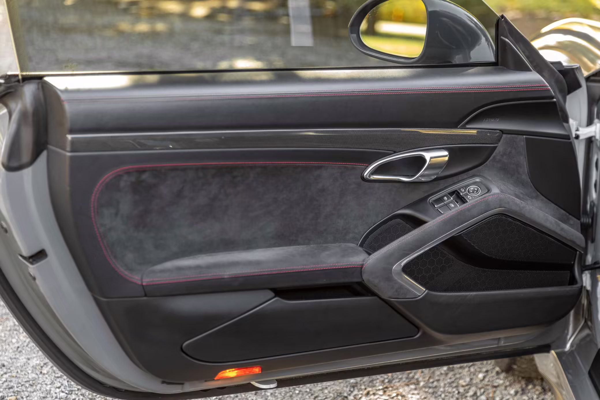 Leather/Alcantara upholstery with contrast red stitching