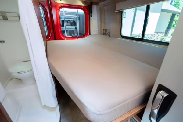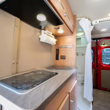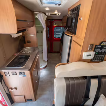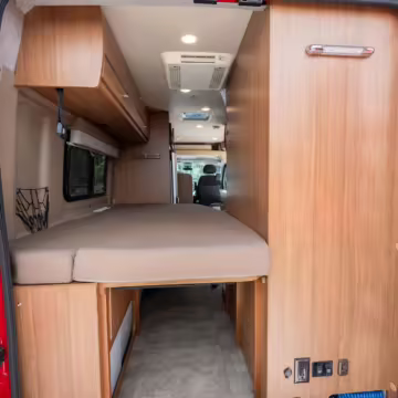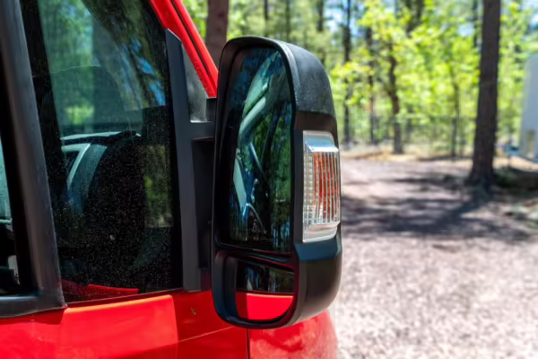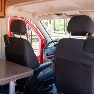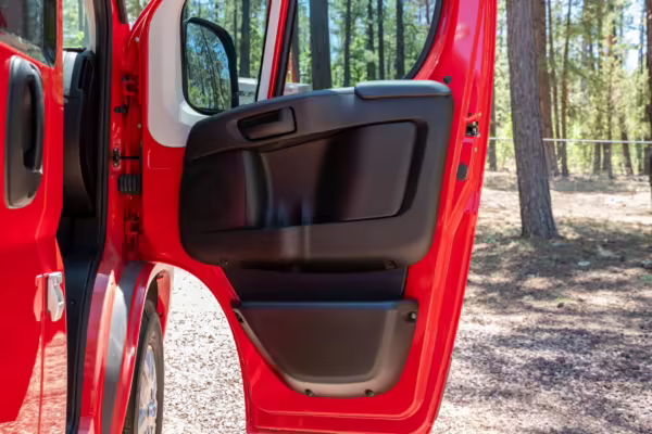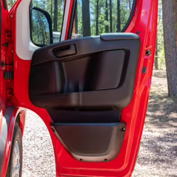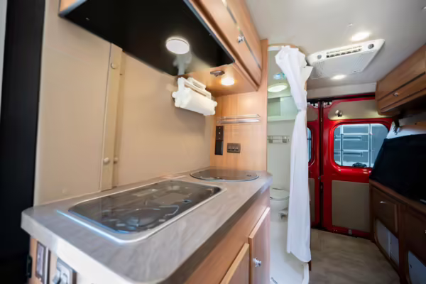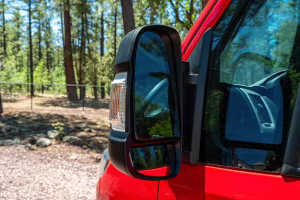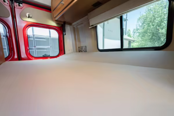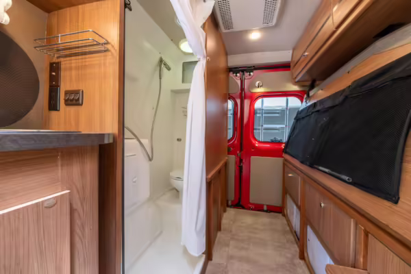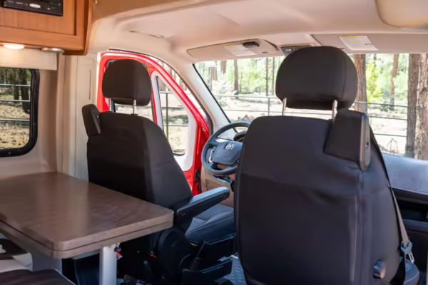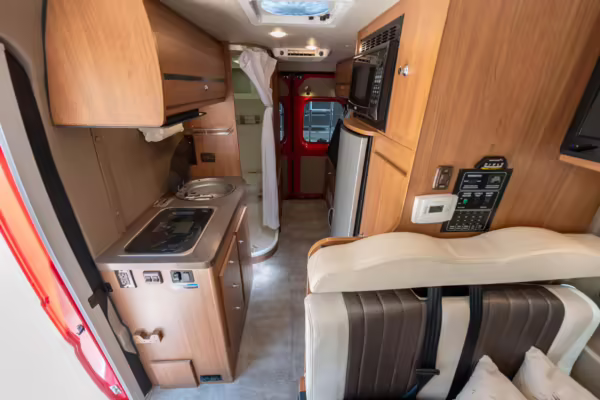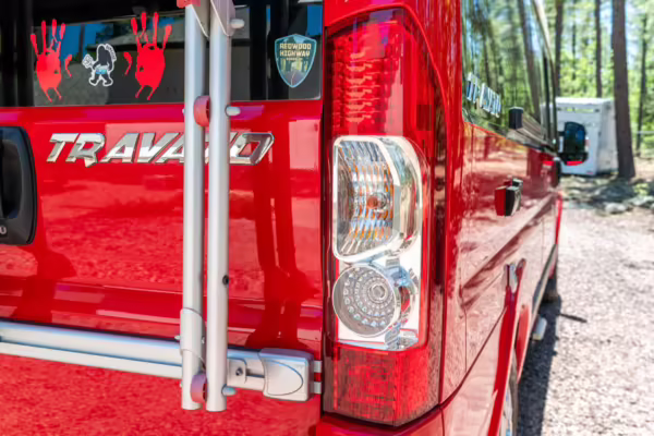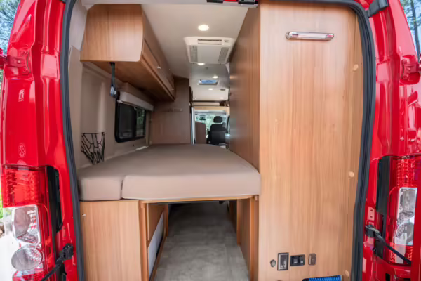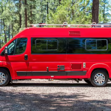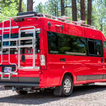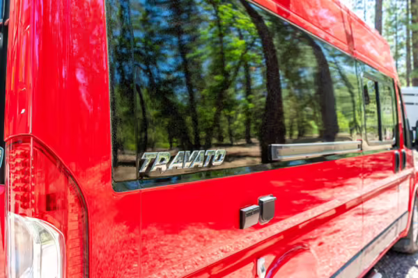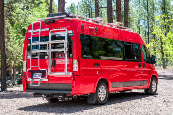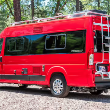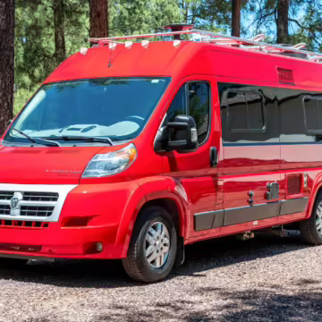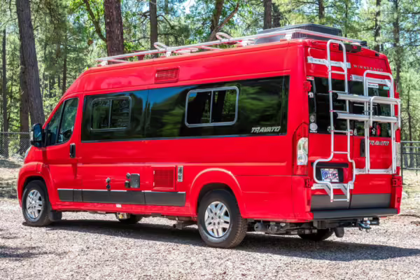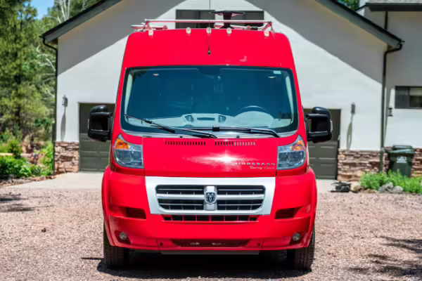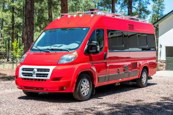 2015 Ram ProMaster 3500 Winnebago Travato, finished in Flame Red with a gray interior.