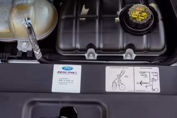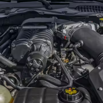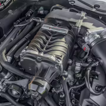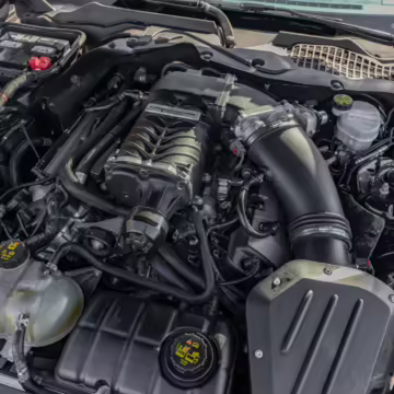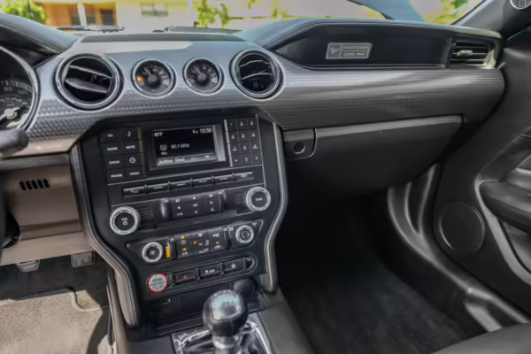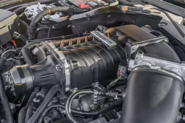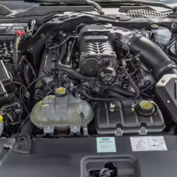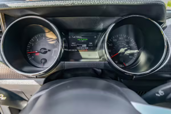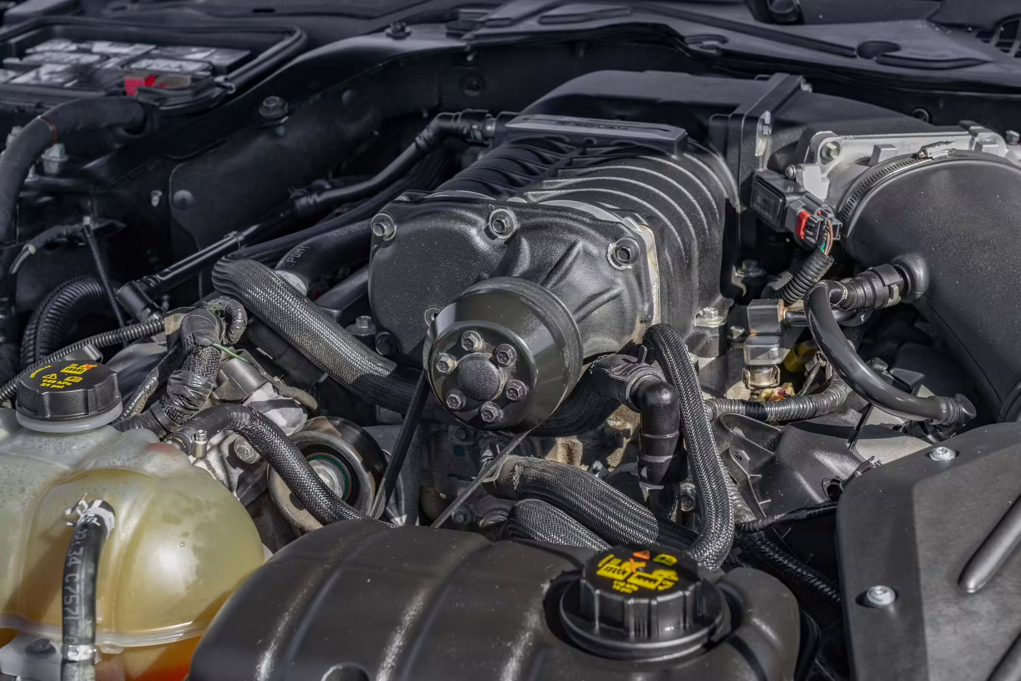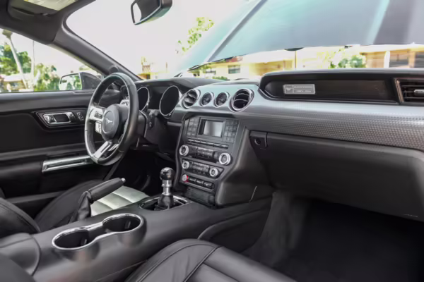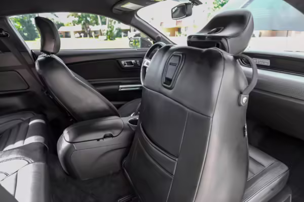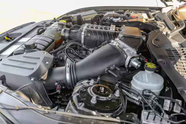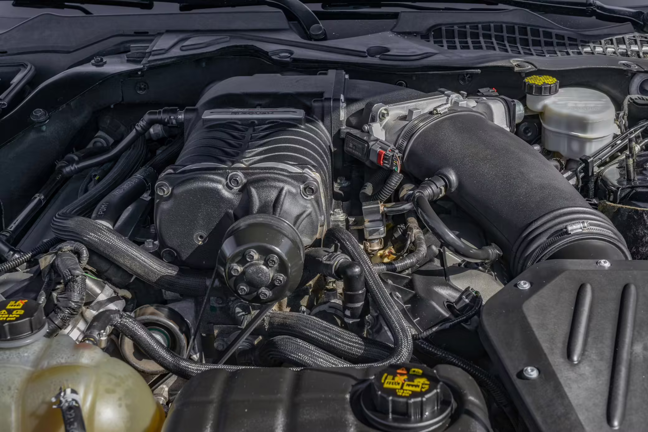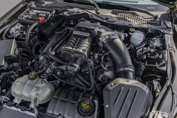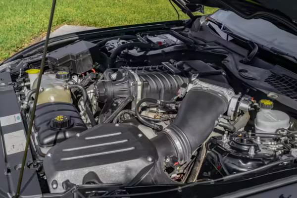 Power comes from a 5.0-liter “Coyote” V8 engine, rated at 435 horsepower and 400 lb-ft of torque when left stock. The Roush Supercharger reportedly increases the power output to 670 horsepower and 545 lb-ft of torque at the rear wheels, though no dyno sheet has been provided to confirm. Output is sent to the rear wheels via a Getrag 6-speed manual transmission.