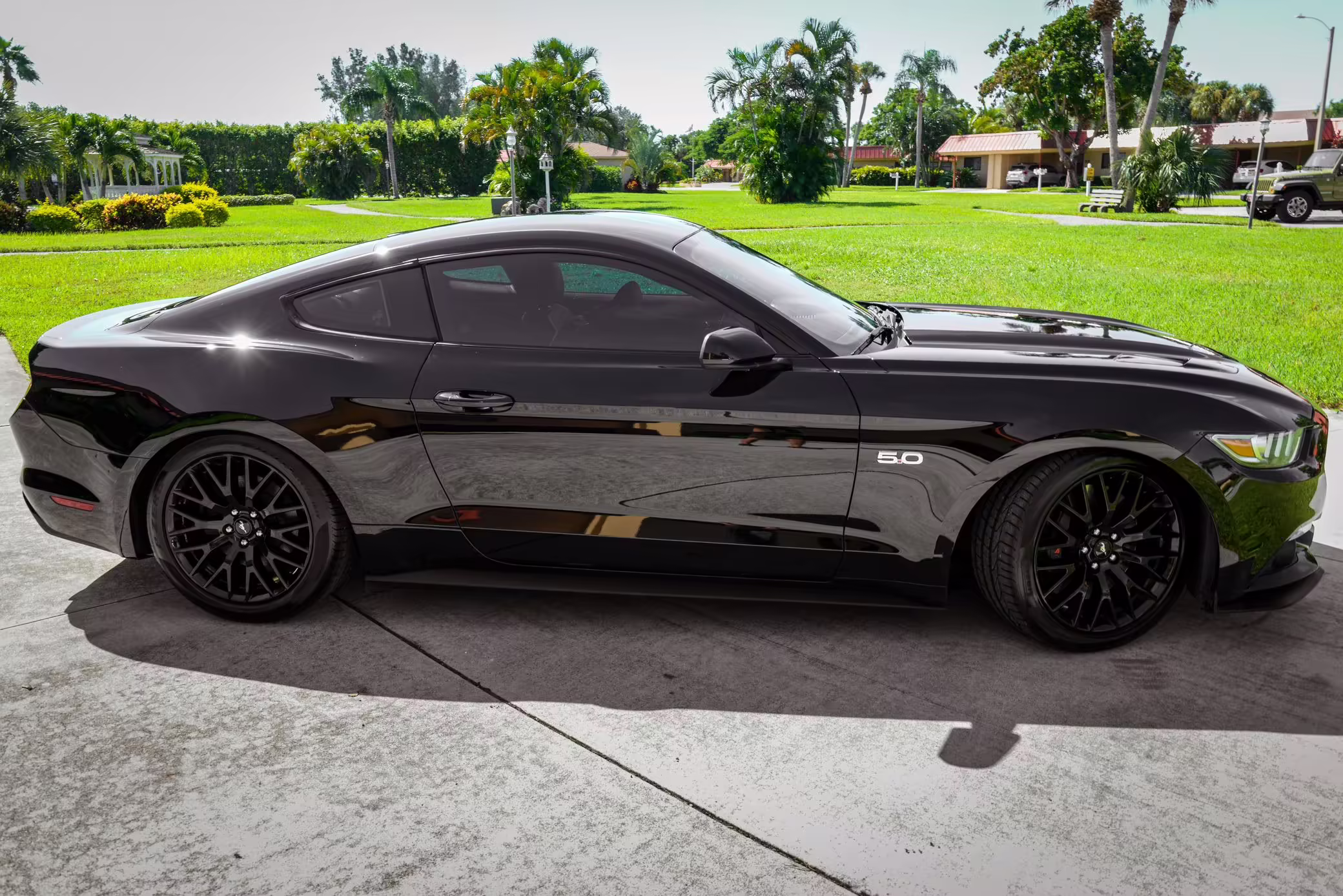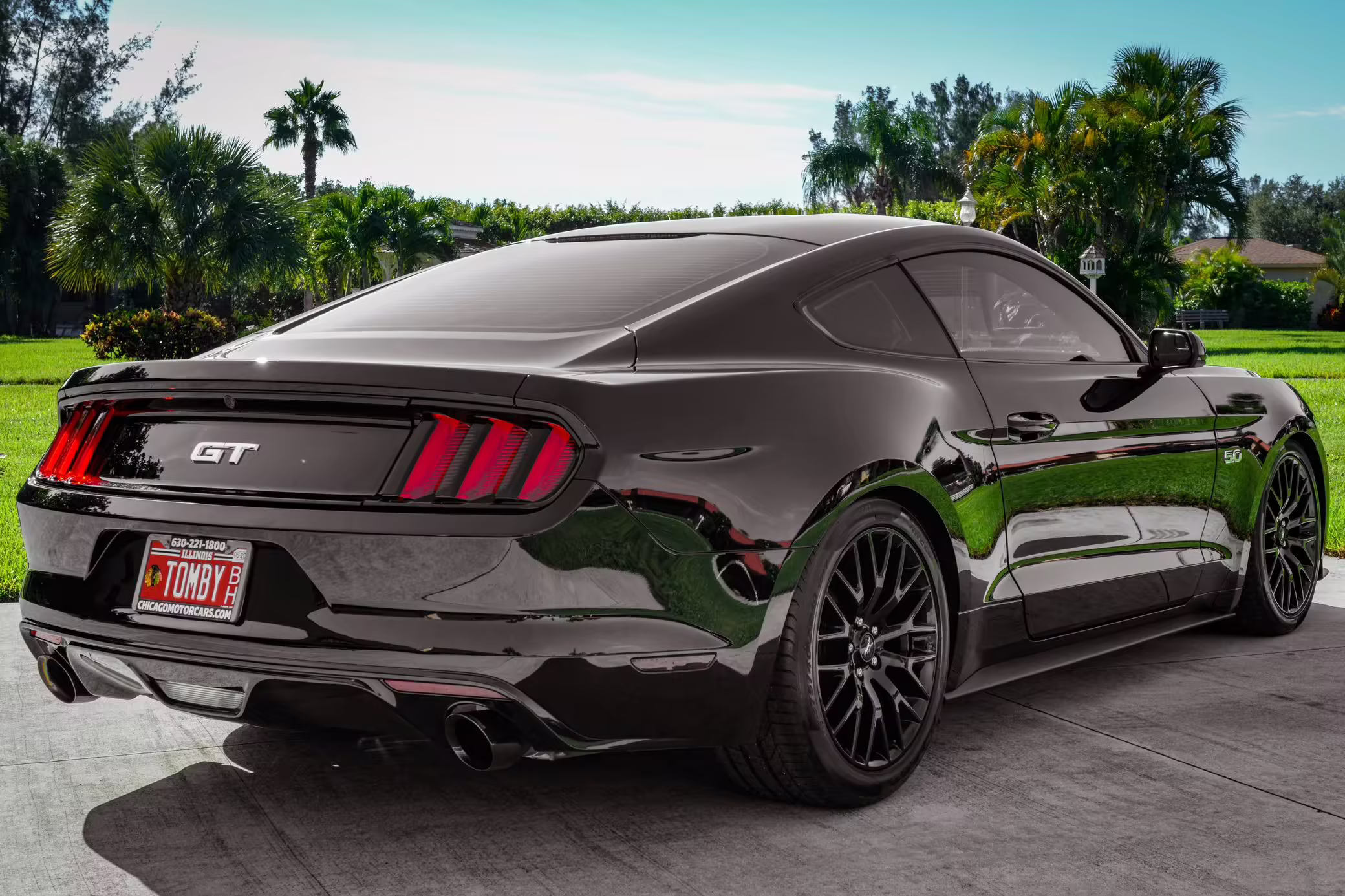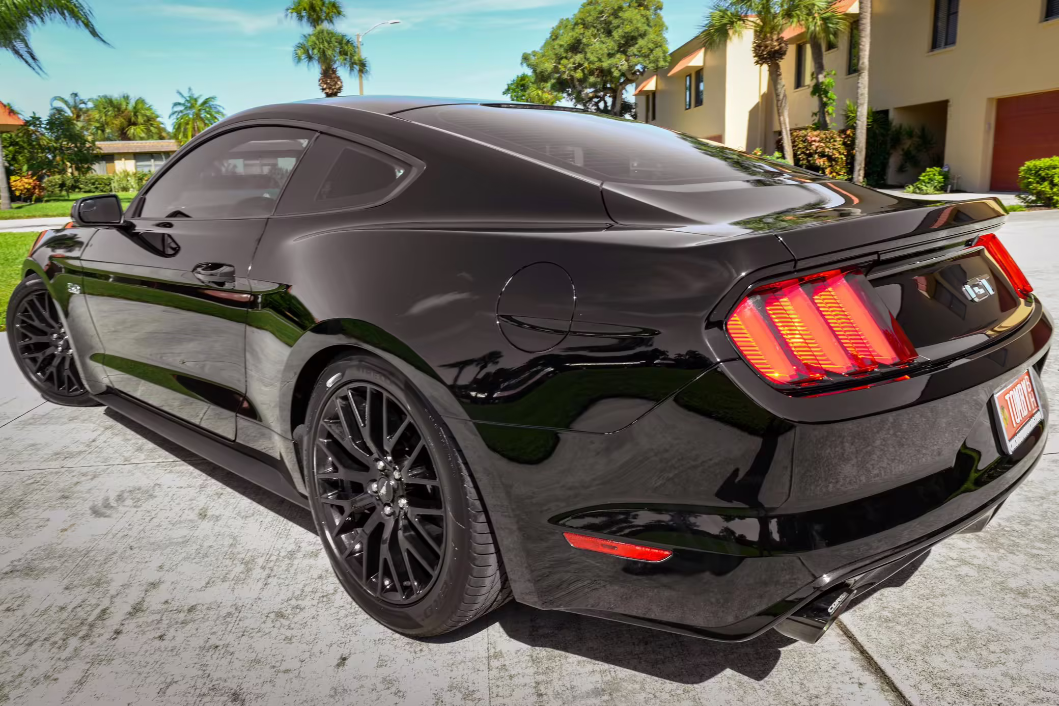 2016 Ford Mustang GT, finished in Absolute Black Pearl with a black interior.