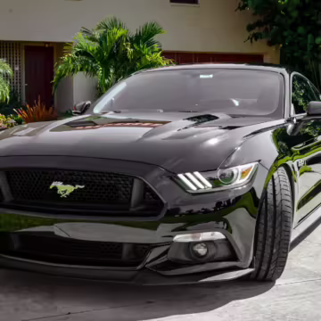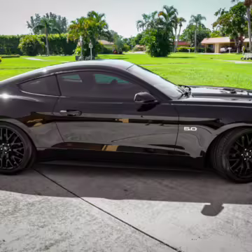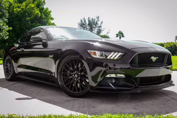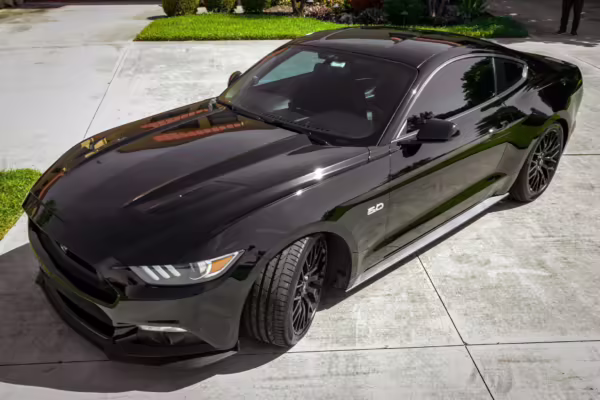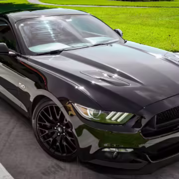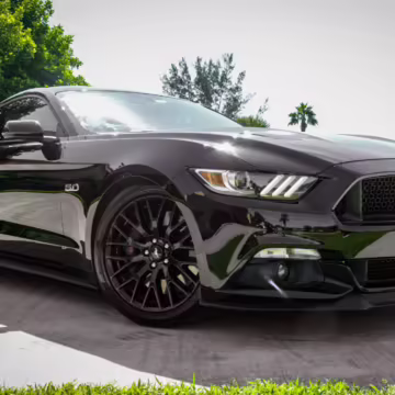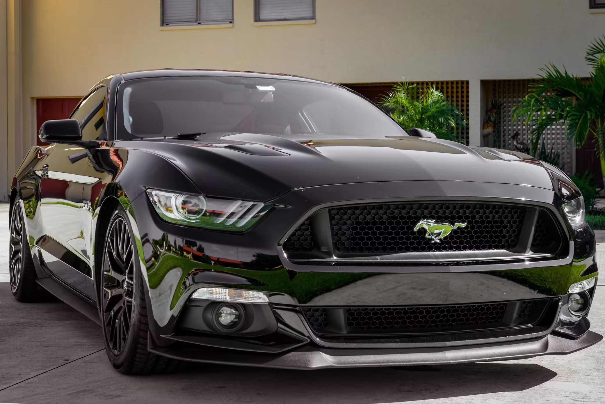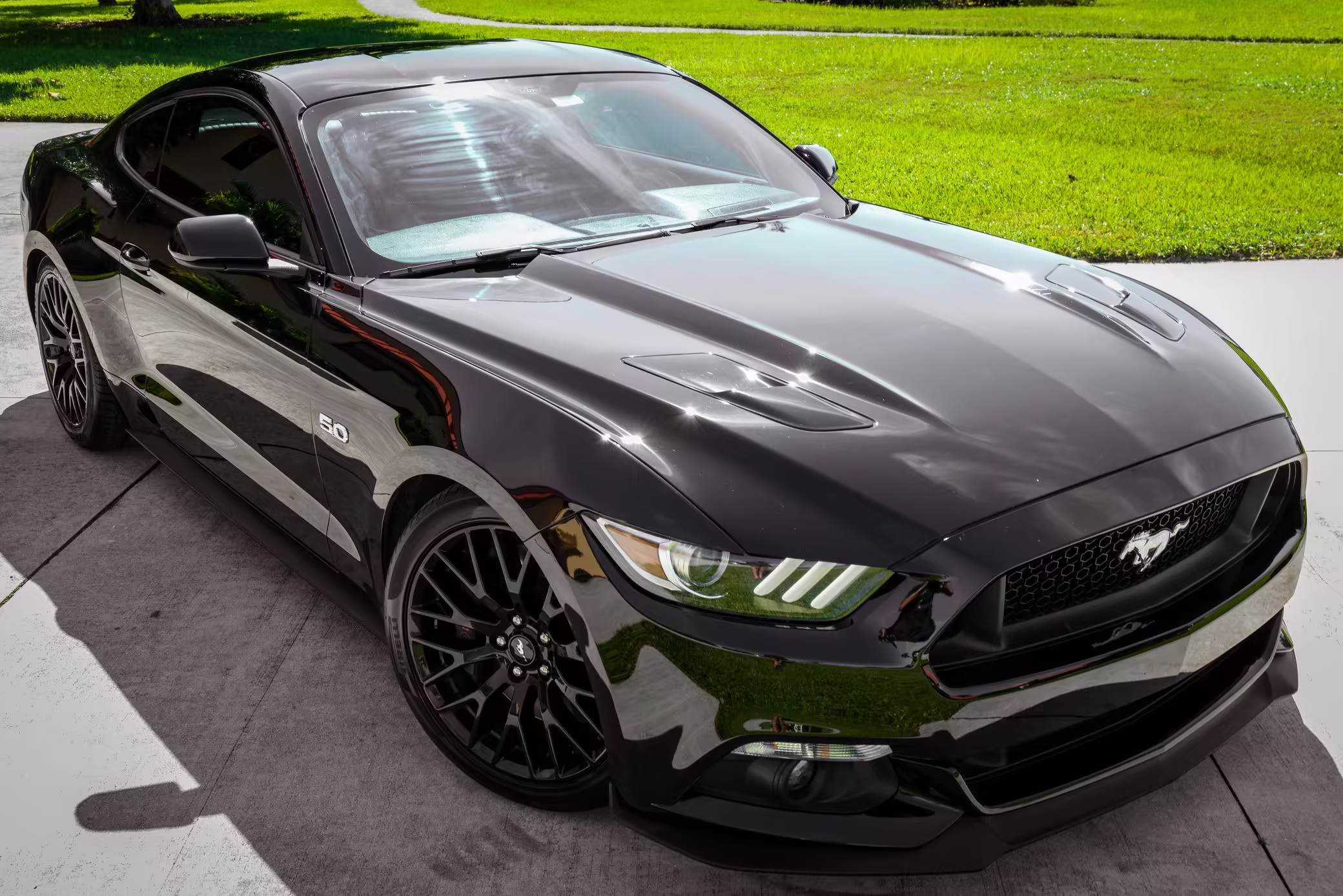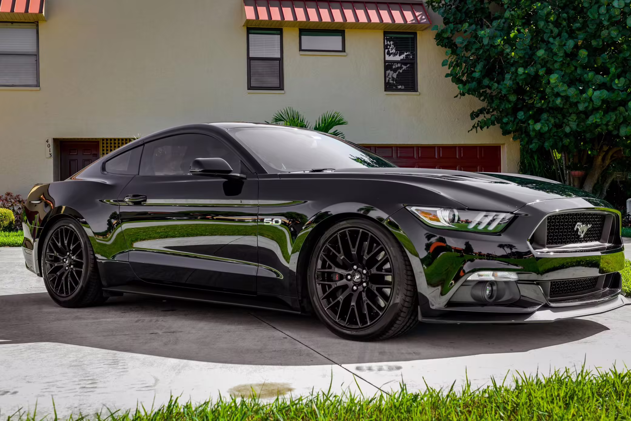 2016 Ford Mustang GT, finished in Absolute Black Pearl with a black interior.