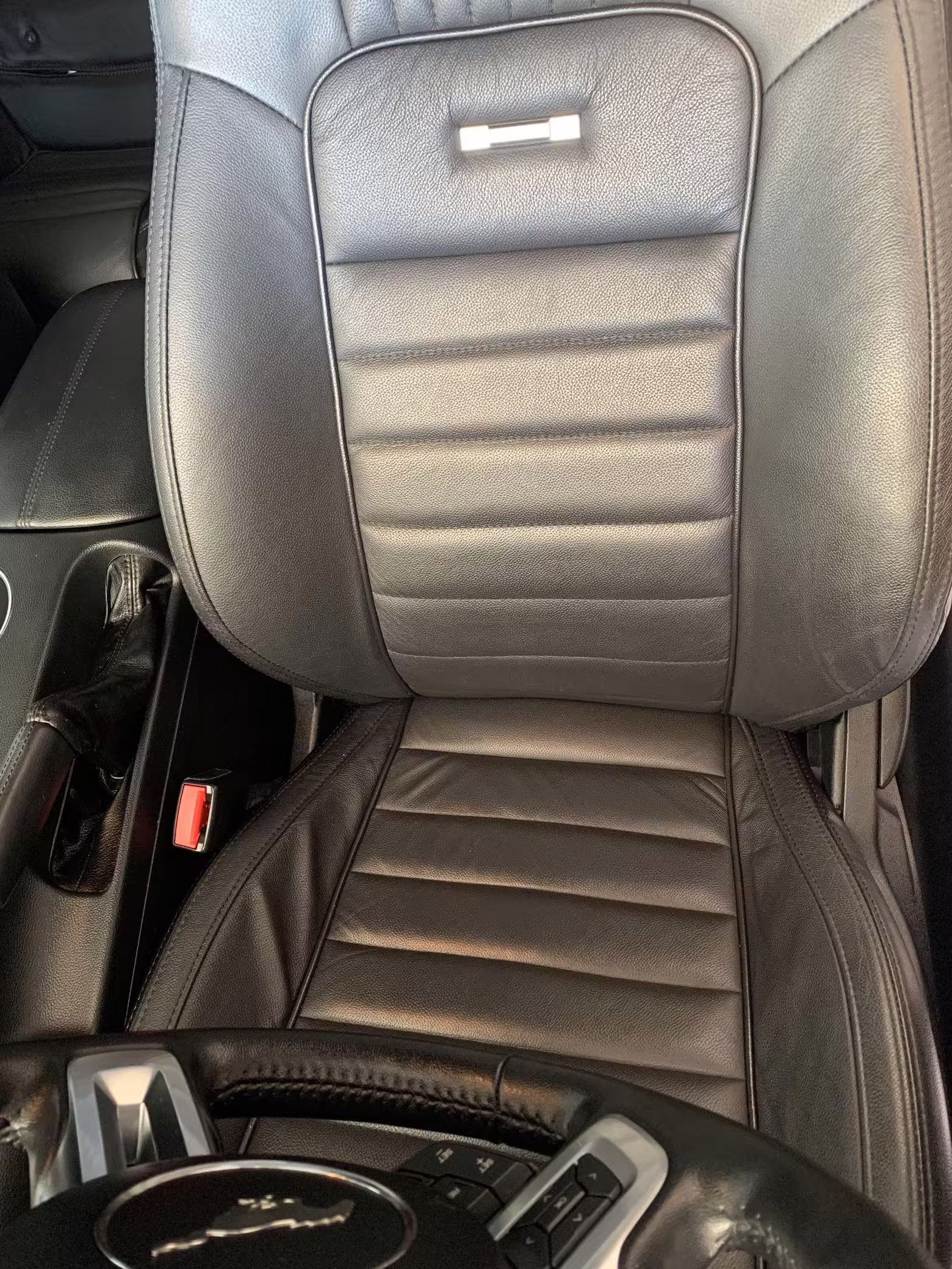 Modifications are limited to a Roush supercharger, Corsa Exhaust, Eibach suspension, and Roadwire leather seat covers.