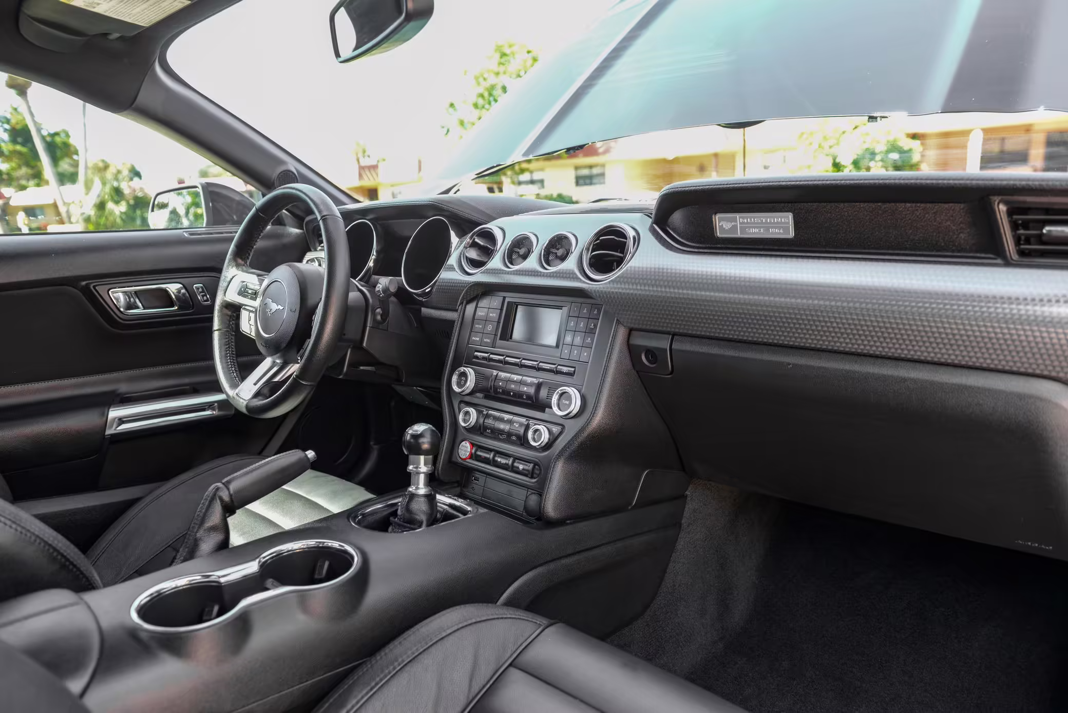 This is a seriously cool sixth generation Mustang! Not only is it equipped with the desirable 6-speed manual for an exciting driving experience, it also touts Coyote V8 power – but this particular V8 has been modified with a Roush supercharger that reportedly increases output to 670 horsepower at the wheels – a significant increase that makes this car considerably faster. This car also touts a sinister black over black color combination, along with the Performance Package, which adds a limited-slip differential, improved suspension and chassis tuning, and Brembo brakes.