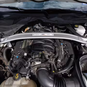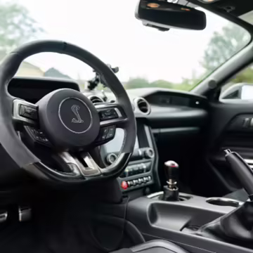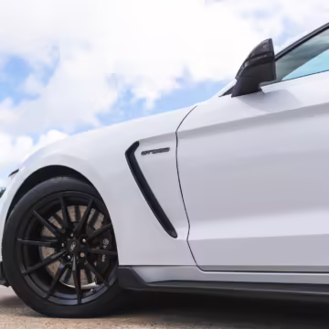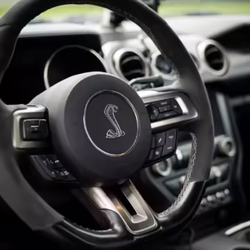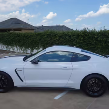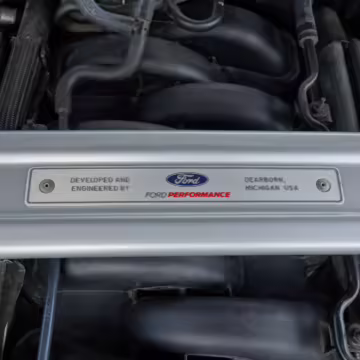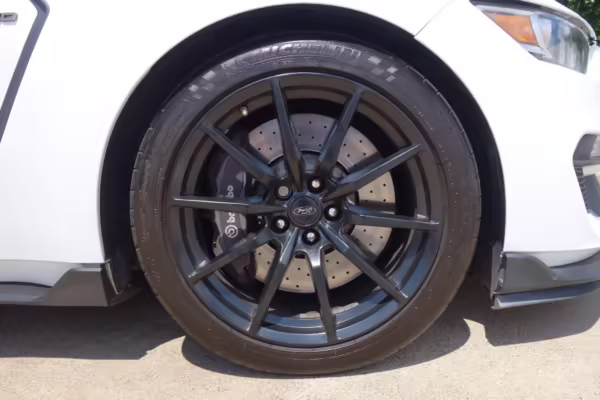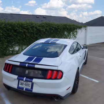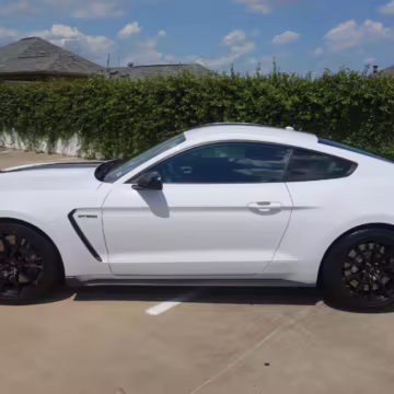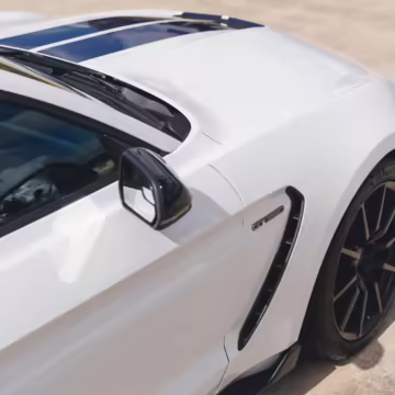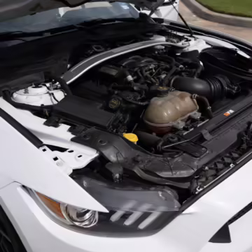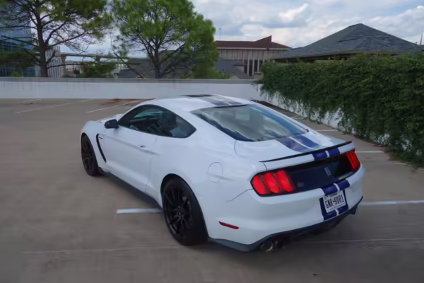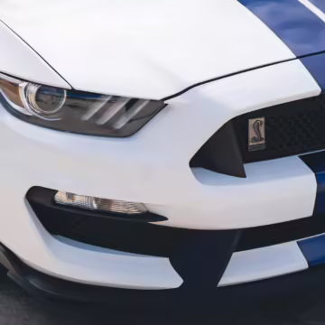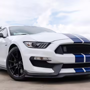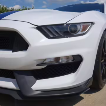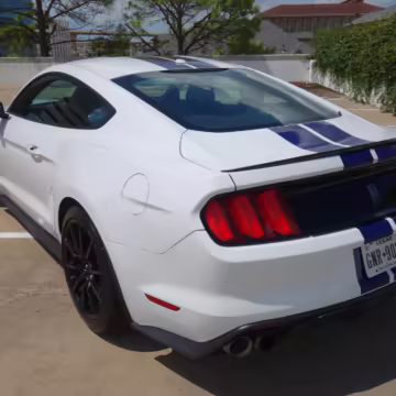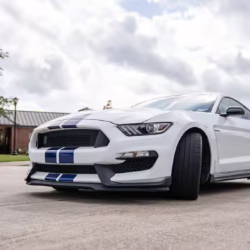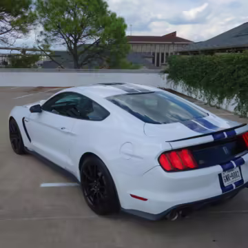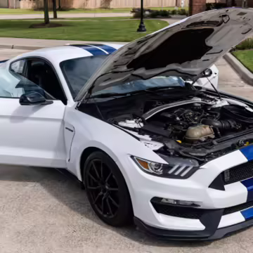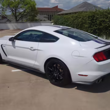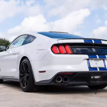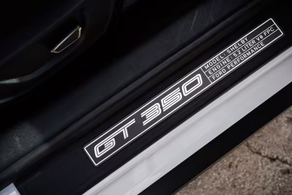 The track-focused Shelby GT350 variant of the “S550” Ford Mustang is notable for its special V8 engine which employs a flat-plane crank and a unique crankpin configuration and firing order. It also has upgraded aerodynamics, a revised suspension, and various lightweight components compared to the Mustang GT resulting in a highly competent muscle car for the track.