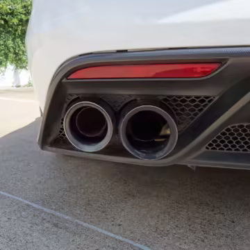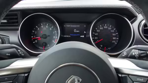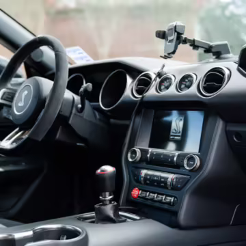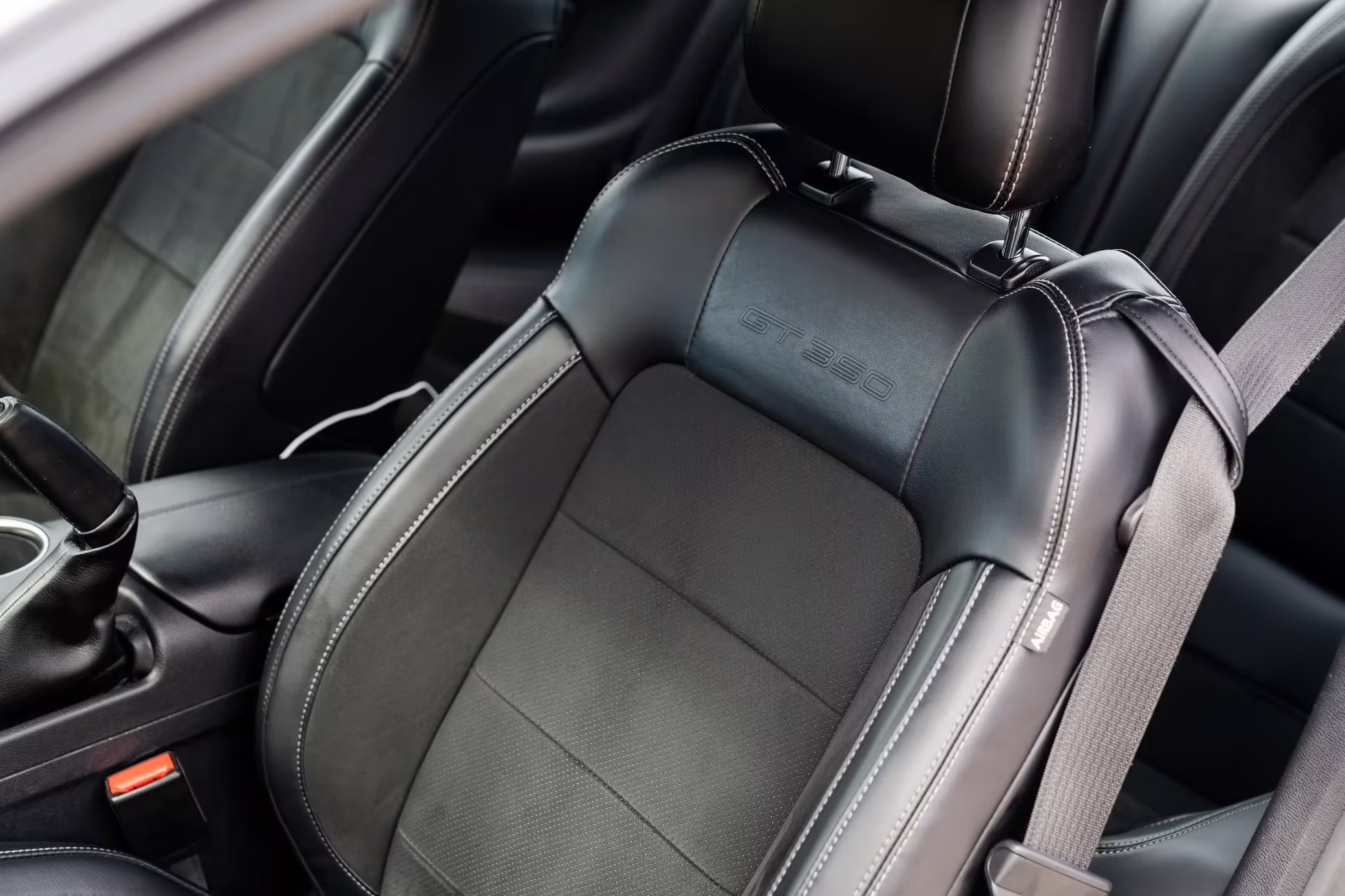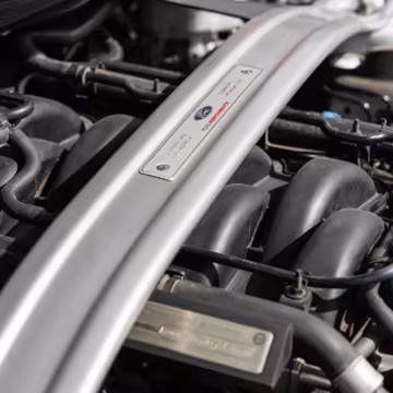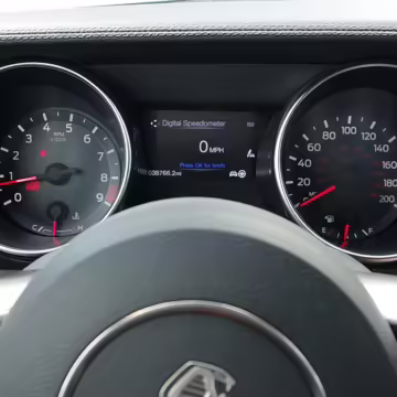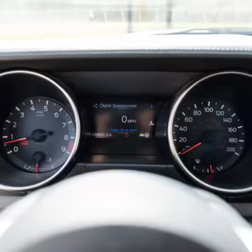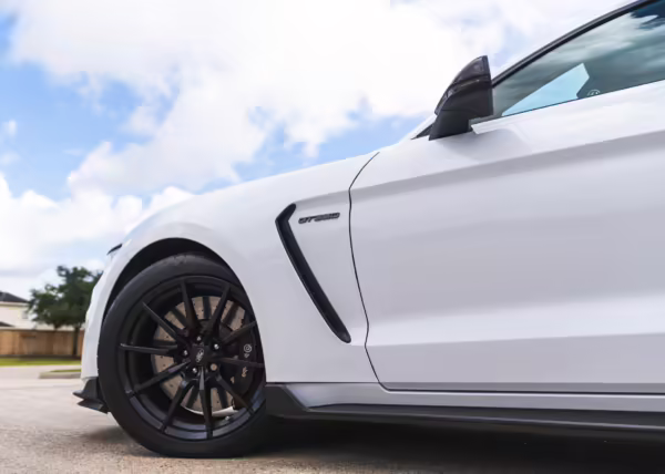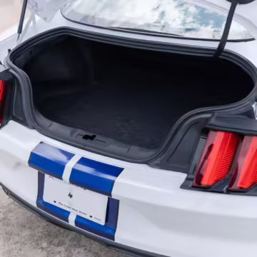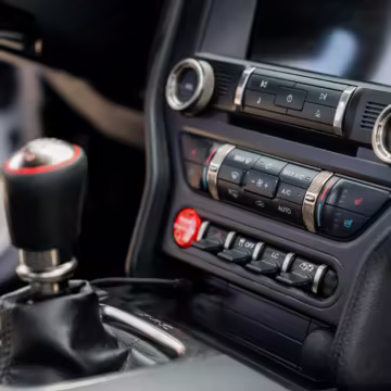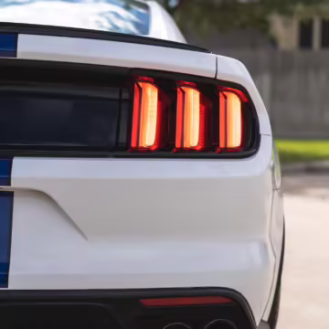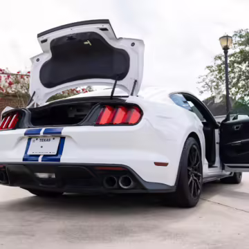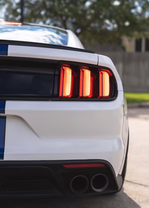 The track-focused Shelby GT350 variant of the “S550” Ford Mustang is notable for its special V8 engine which employs a flat-plane crank and a unique crankpin configuration and firing order. It also has upgraded aerodynamics, a revised suspension, and various lightweight components compared to the Mustang GT resulting in a highly competent muscle car for the track.