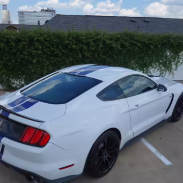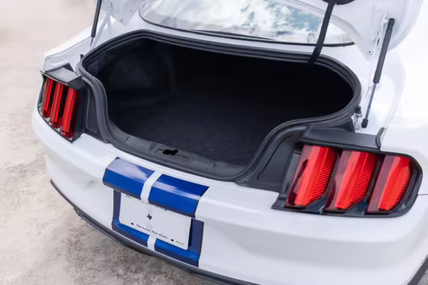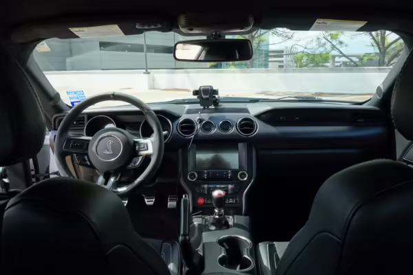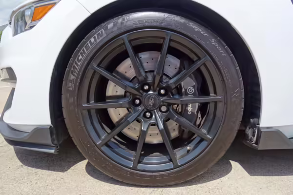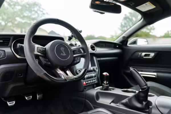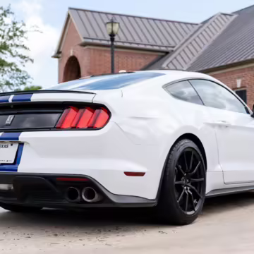 This Shelby GT350 is powered by a “Voodoo” 5.2-liter V8 engine, which produces 526 horsepower and 429 lb-ft of torque and sends power to the rear wheels via a 6-speed manual transmission, the only transmission available on the GT350.