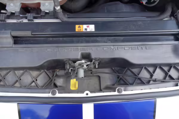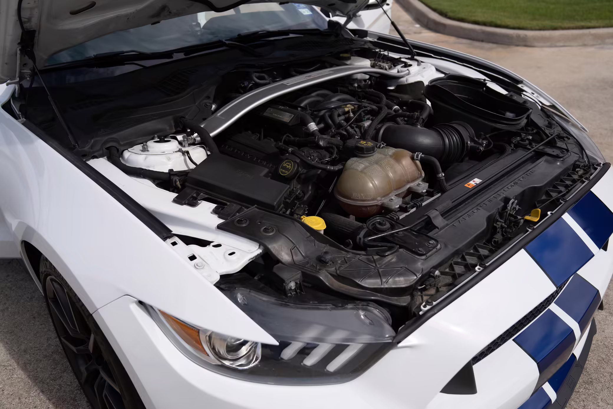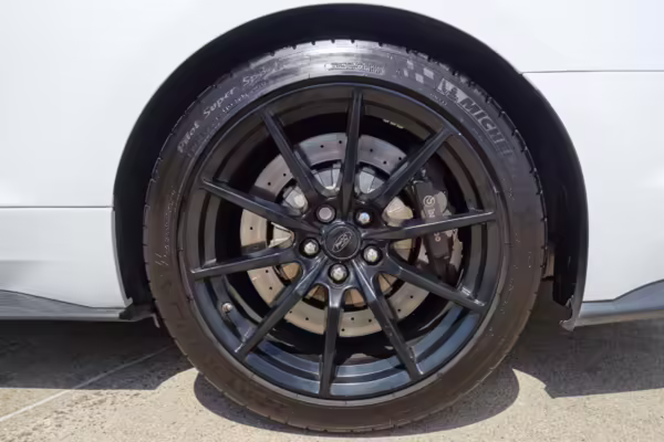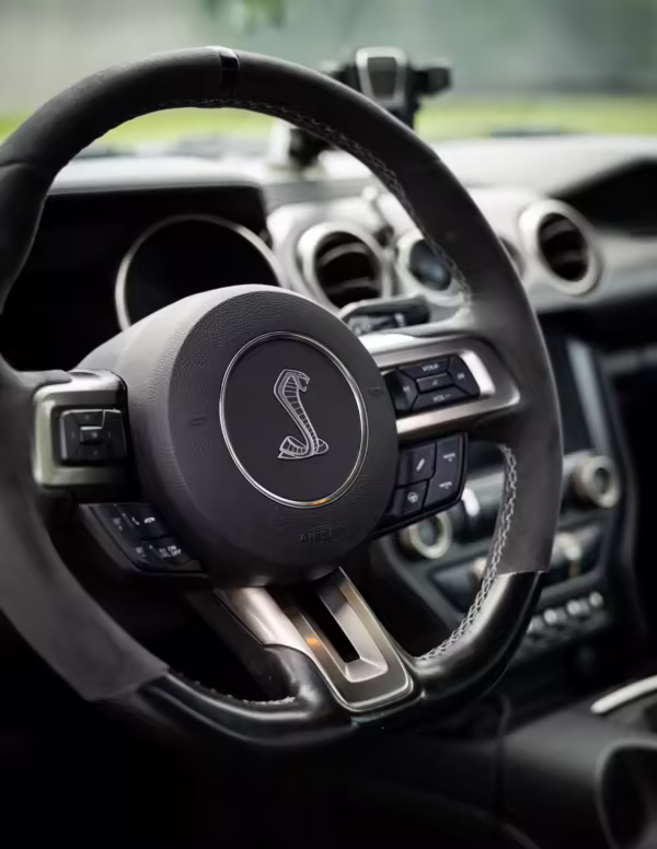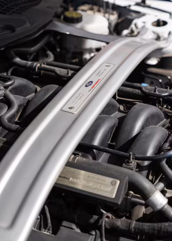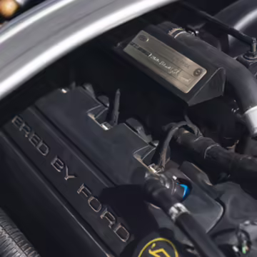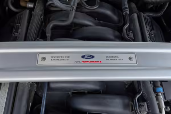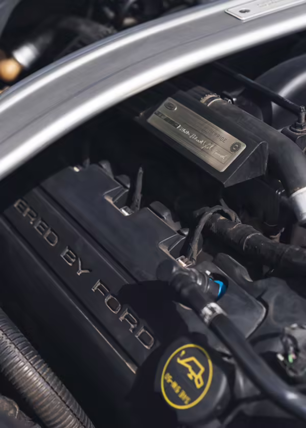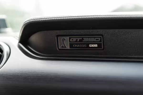 This car is powered by a swapped-in second-generation Ford Voodoo engine, which was hand-built by a single Ford factory builder and includes improvements such as the same valvetrain as the GT350R, recast block and cylinder head, improvements to the rotating assembly, and more.
