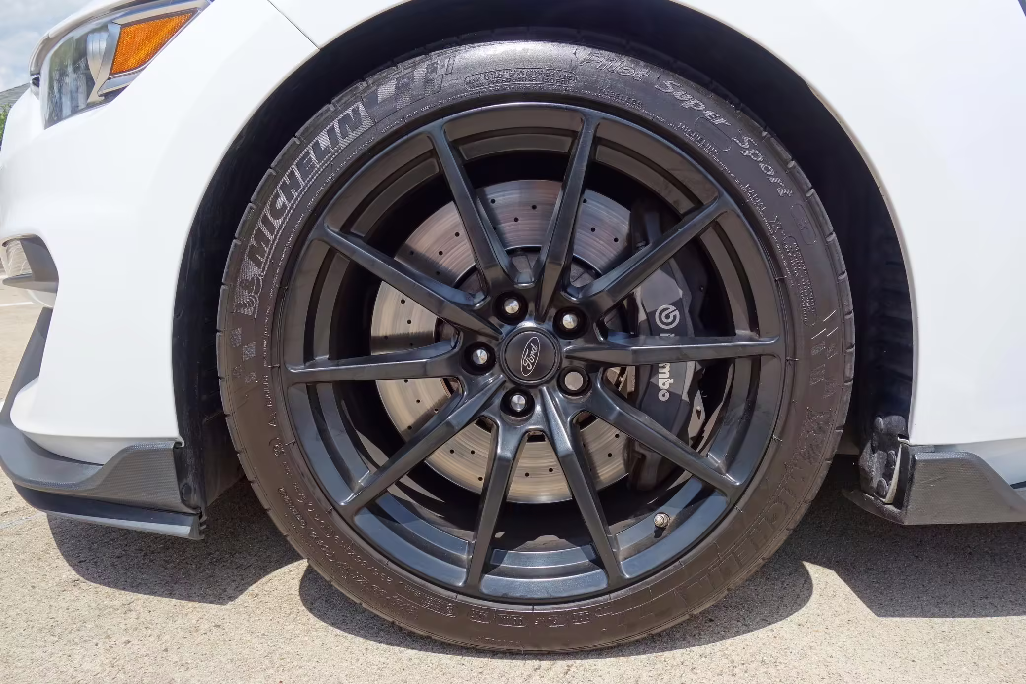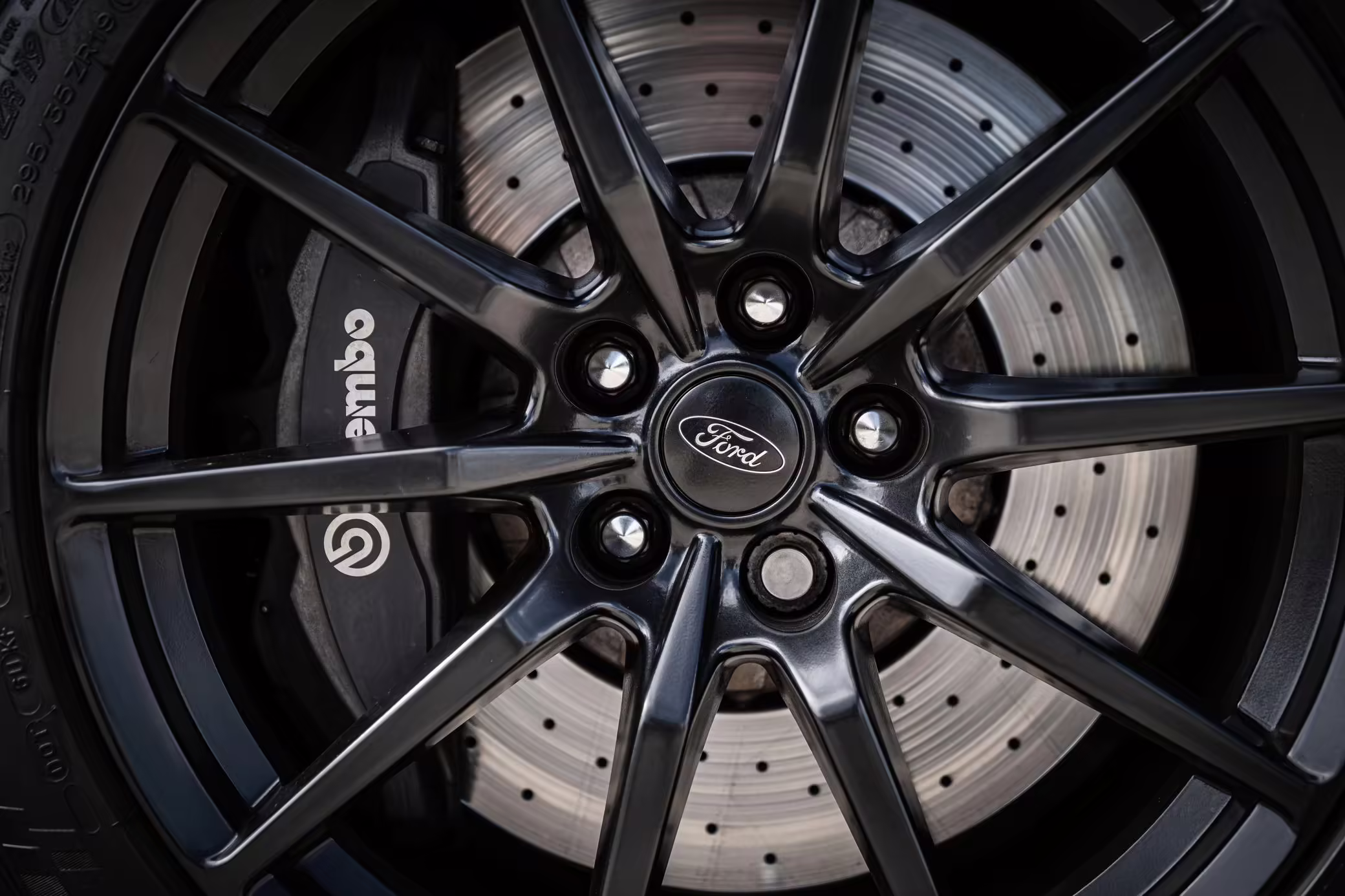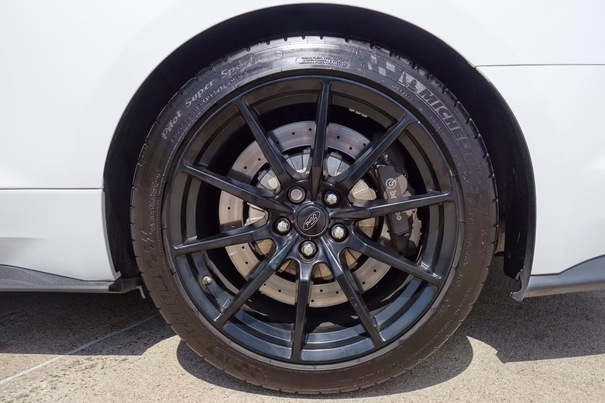 2-piece, cross-drilled brake rotors with Brembo calipers