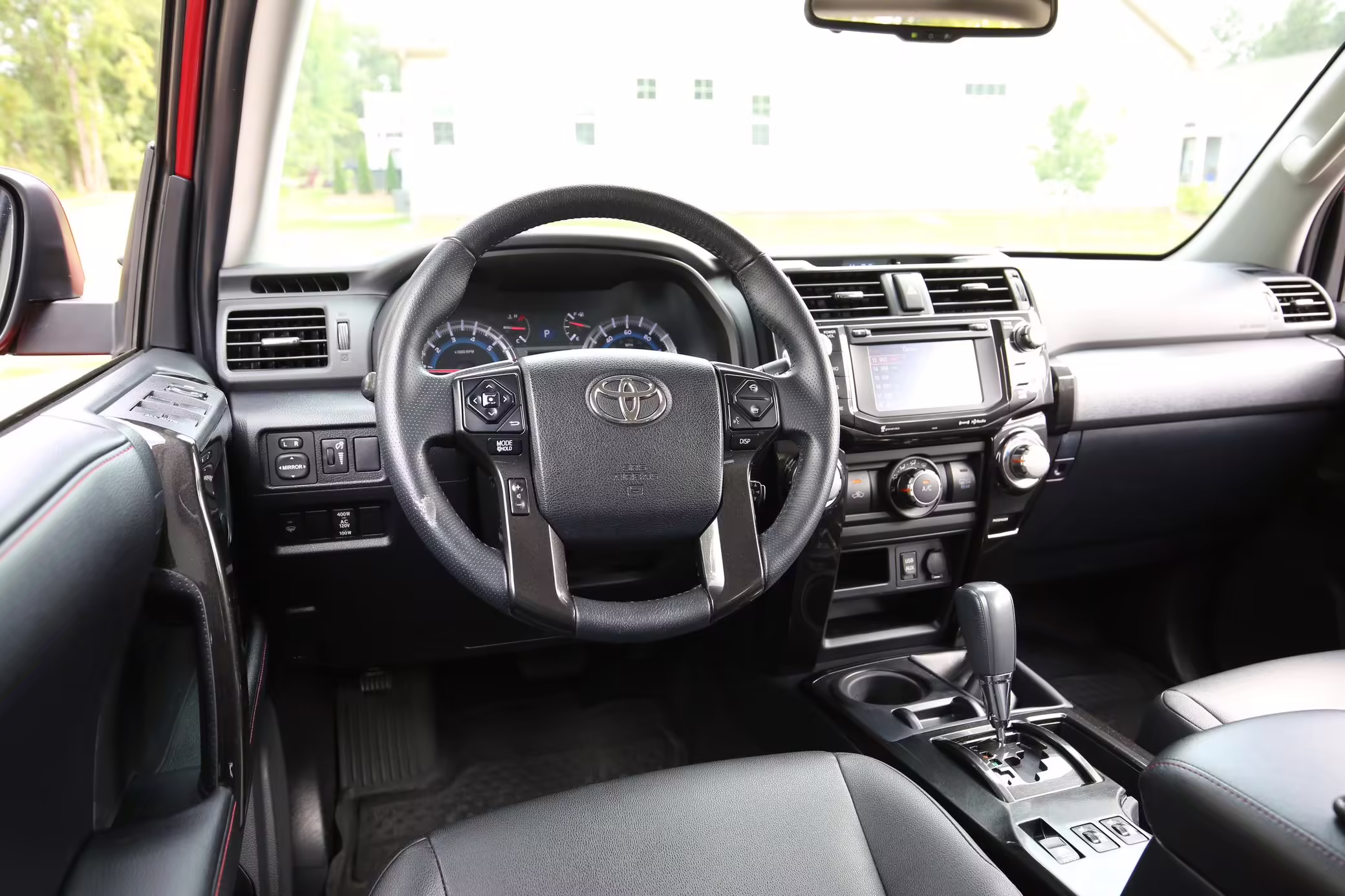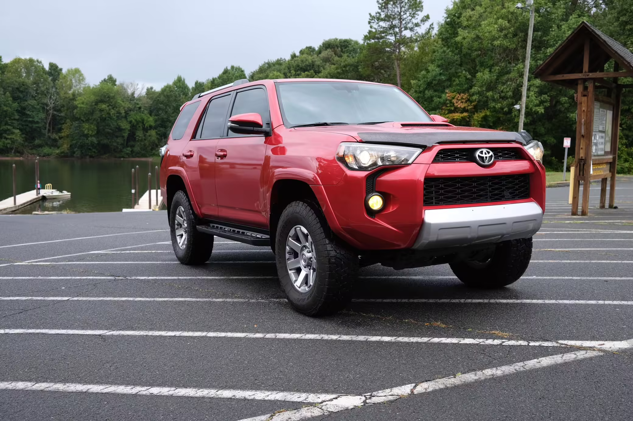 2016 Toyota 4Runner Trail Premium, finished in Barcelona Red Metallic with a black interior.