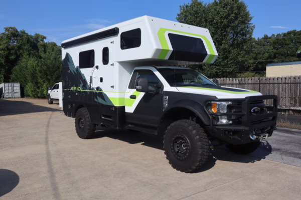 2017 Ford F-550 Super Duty XLT 4×4 Grid Camper, finished in Oxford White with a Medium Earth Gray interior.