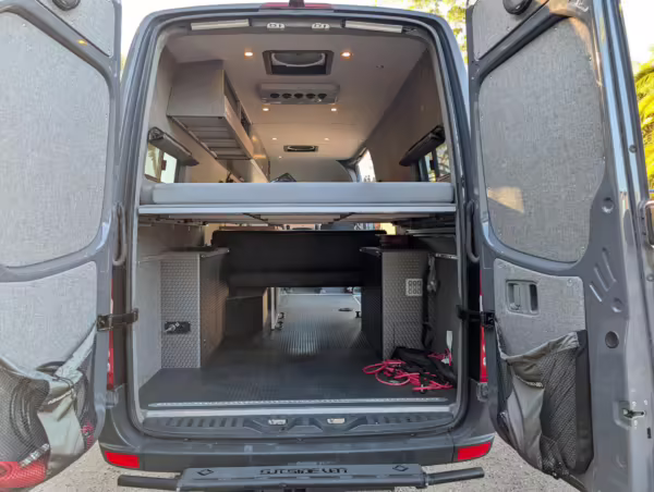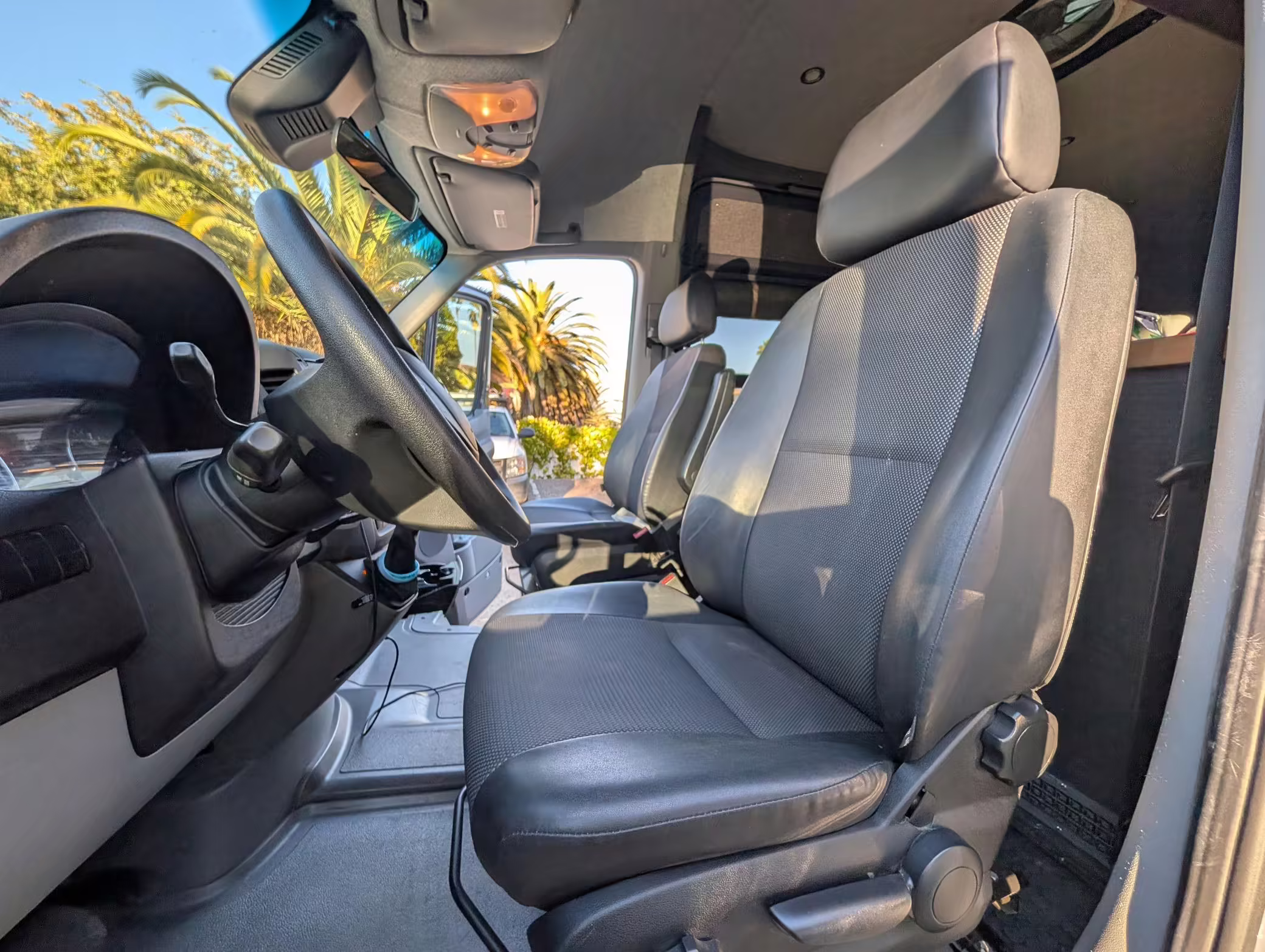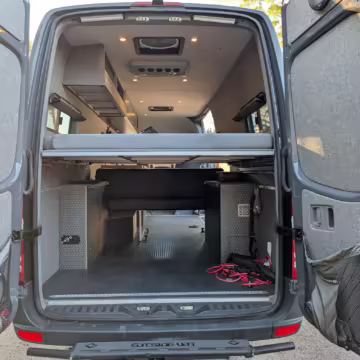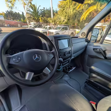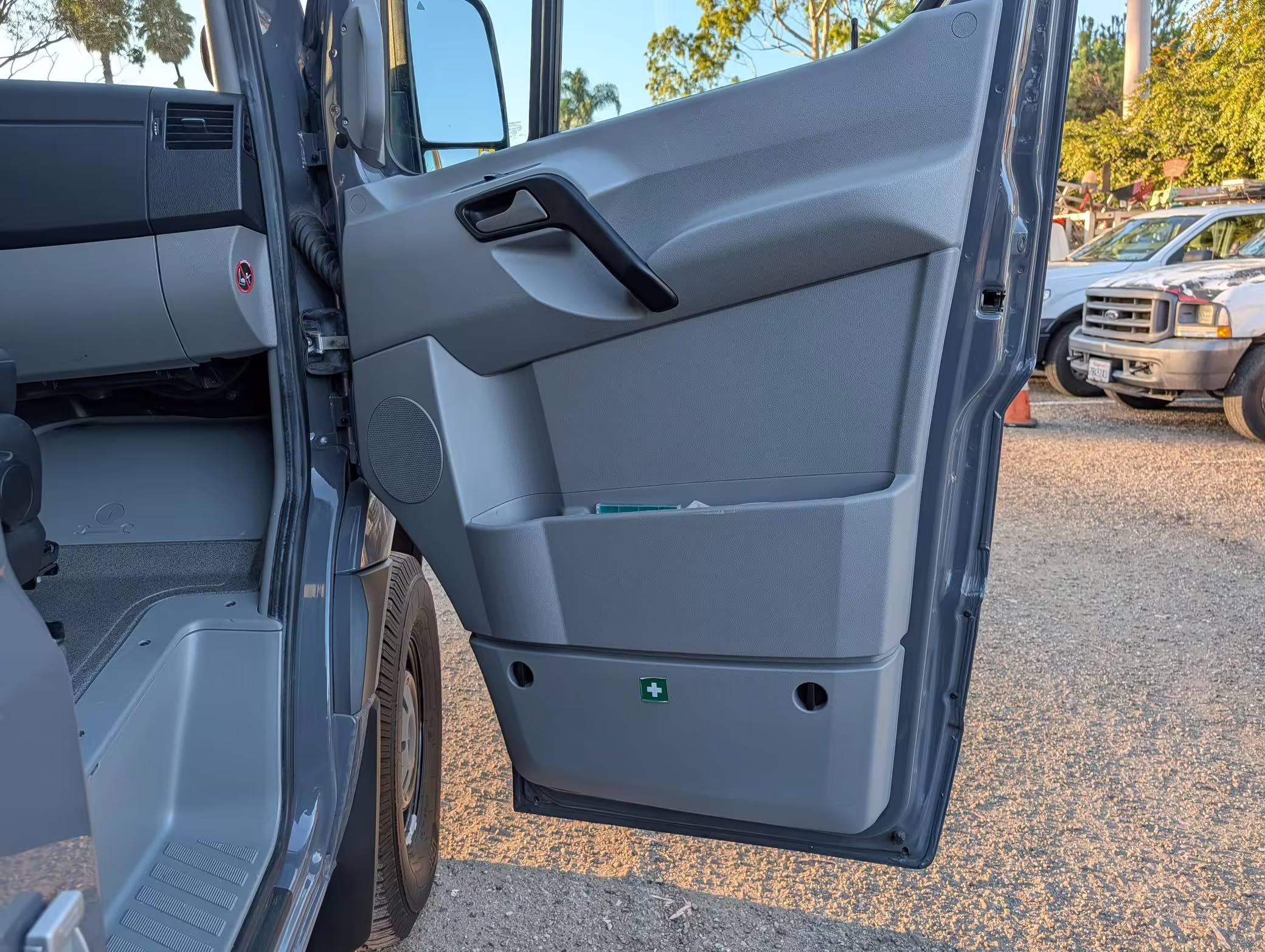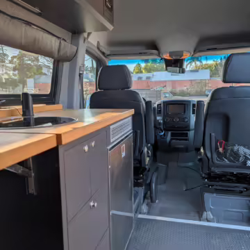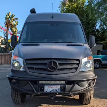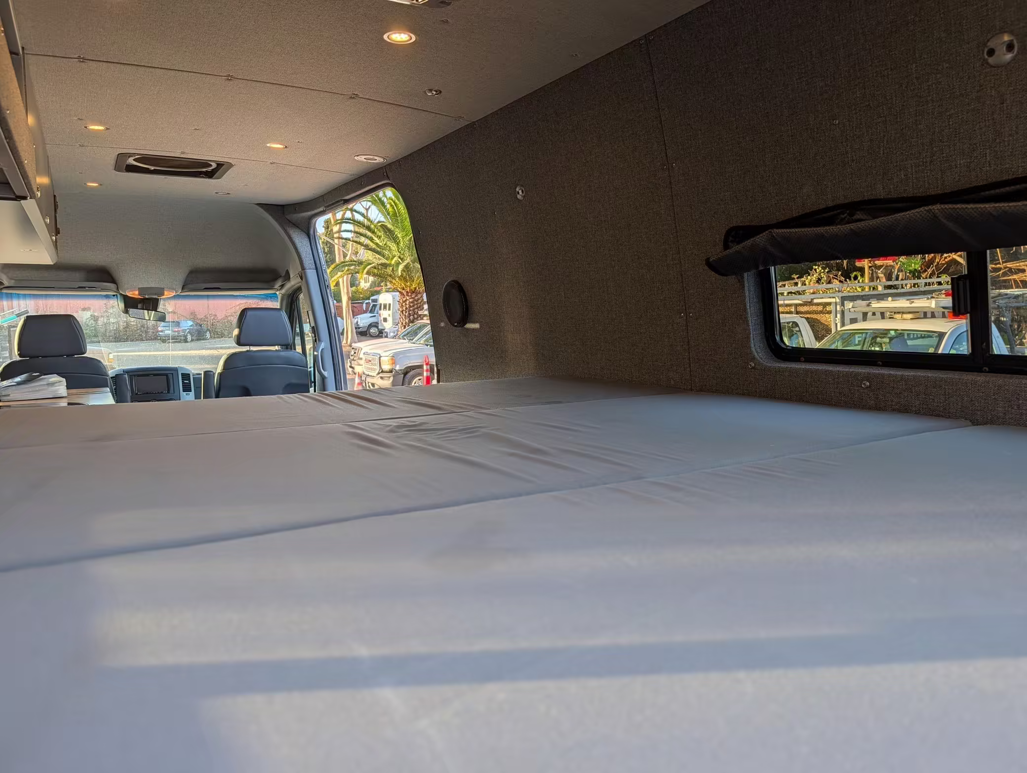 This particular Sprinter 2500 touts a turbodiesel V6 engine paired with 4-wheel drive, and it’s been converted into a camper by Outside Vans. The conversion included the installation of Outside Van bumpers, LED exterior lights, a Fiamma awning, a 3-panel removable bed, a sink, a refrigerator, roof-mounted solar panels, and a 20-gallon fresh water tank.
